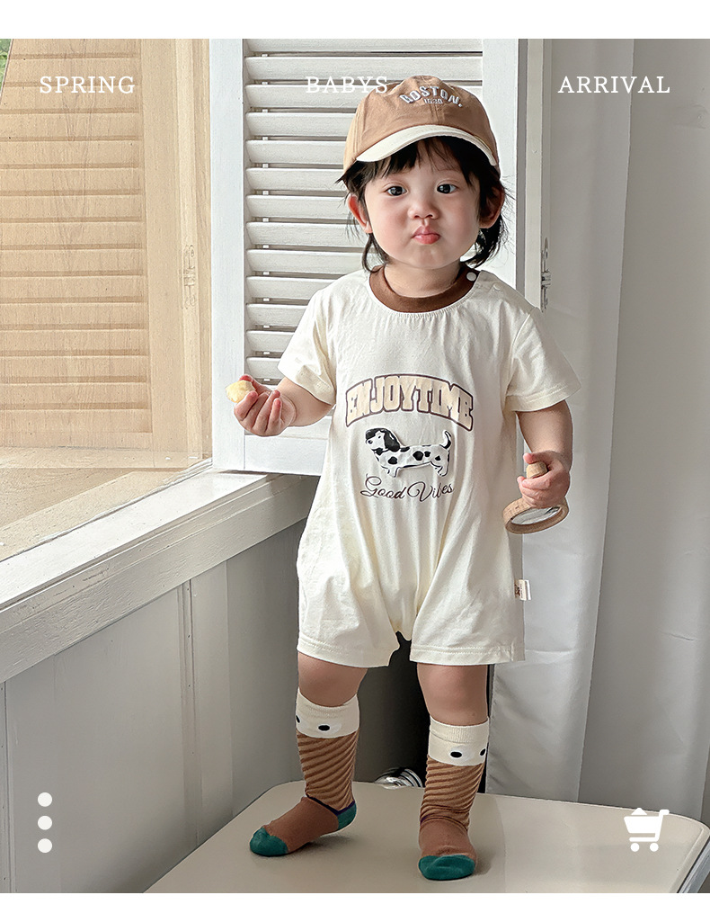 Ropa de bebé 2024 verano 0-2 años niño bebé de dibujos animados casual de manga corta mameluco de una pieza traje de escalada traje de salida 1