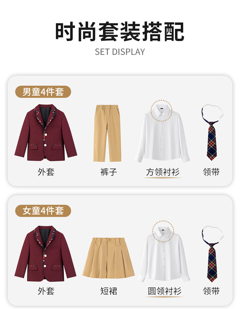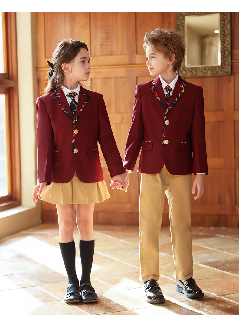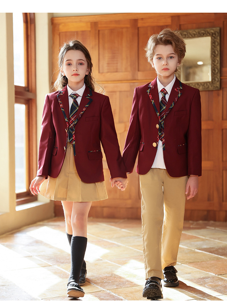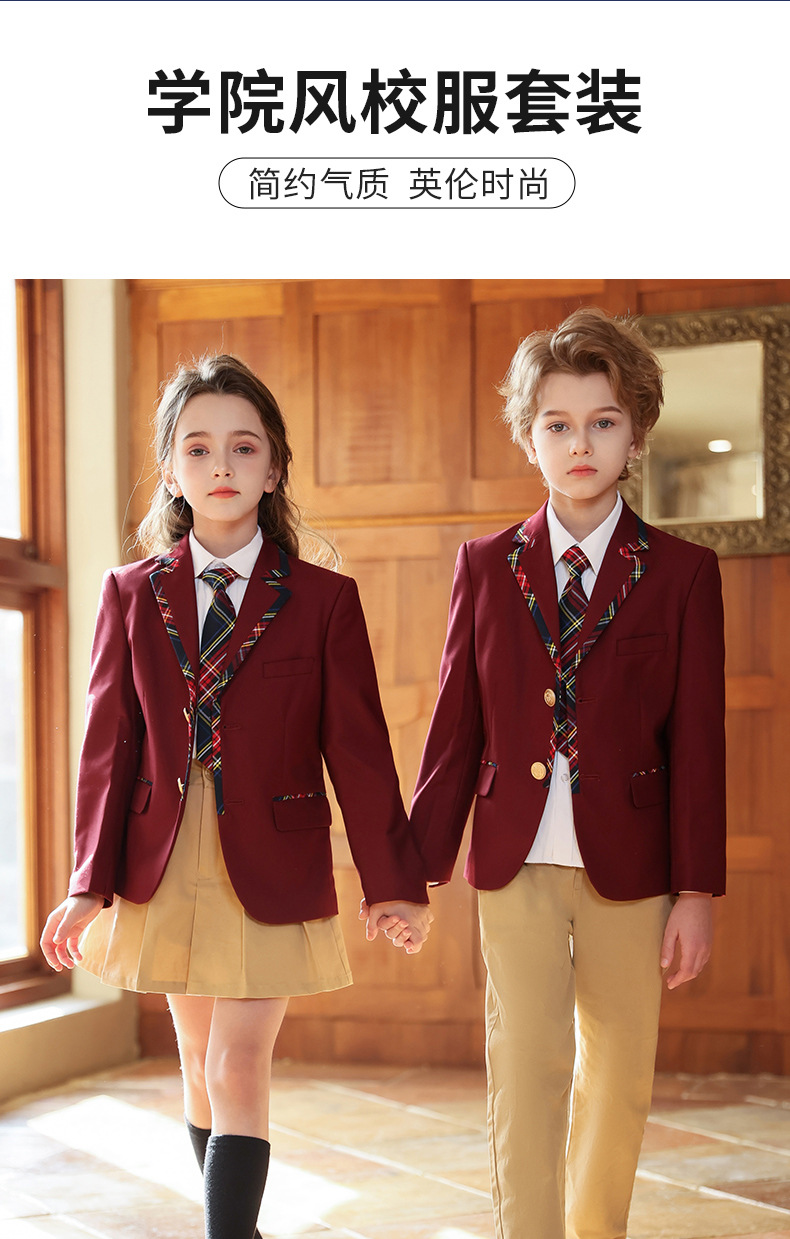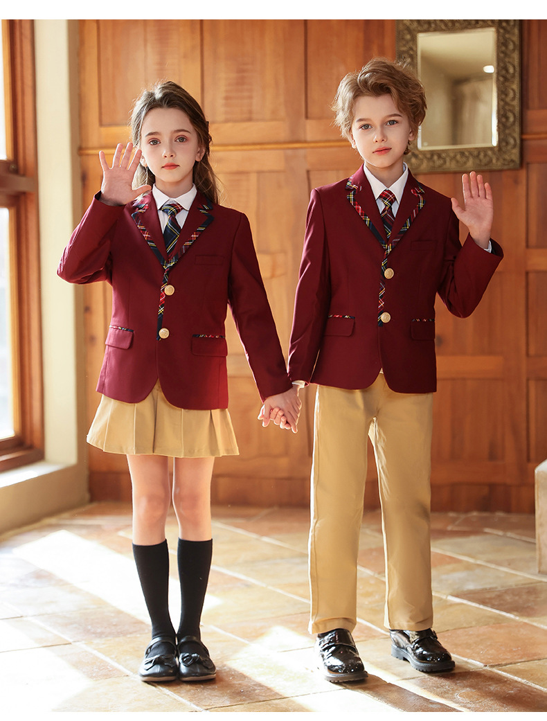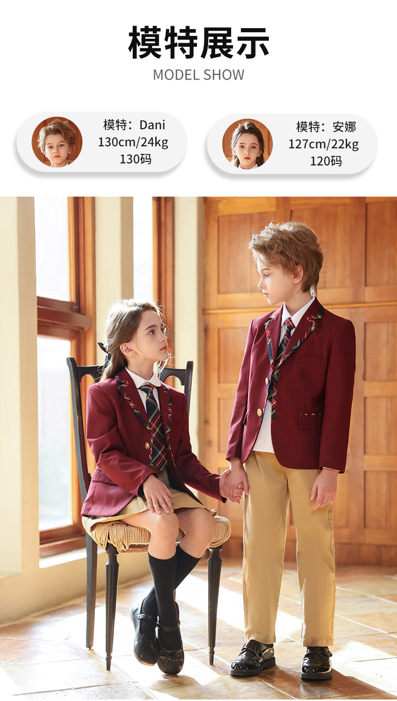 Uniforme de escuela primaria y secundaria Traje de traje de primavera y otoño para niños Traje de actuación de coro Traje de jardín de infantes Traje de clase de estilo universitario británico