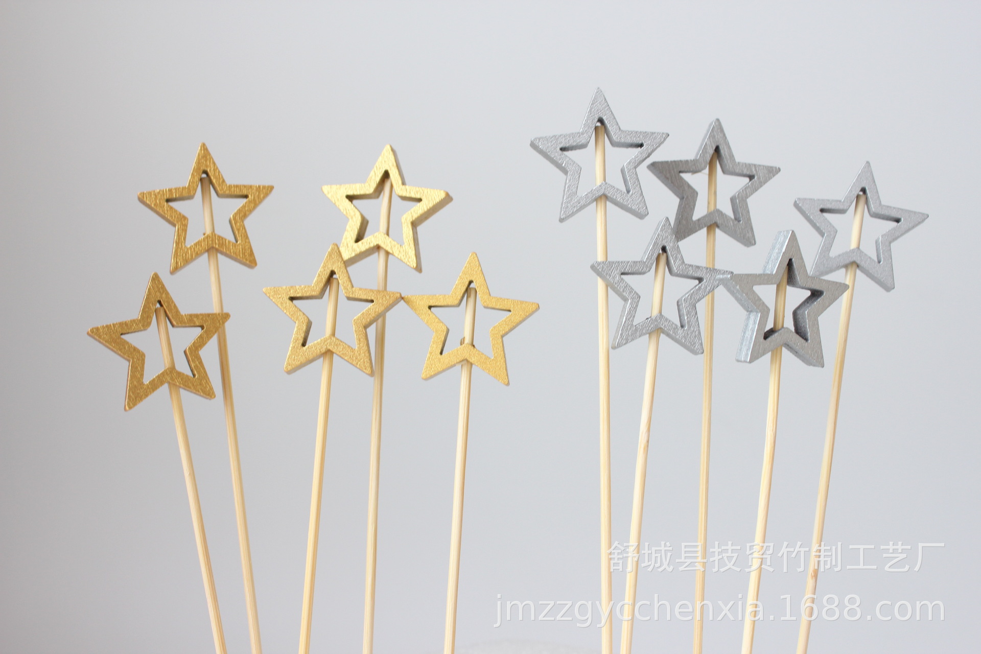 Oro plata hueco estrella de cinco puntas 50 unids/pack desechable fruta signo estrella decoración tarjeta signo pastel venta al por mayor