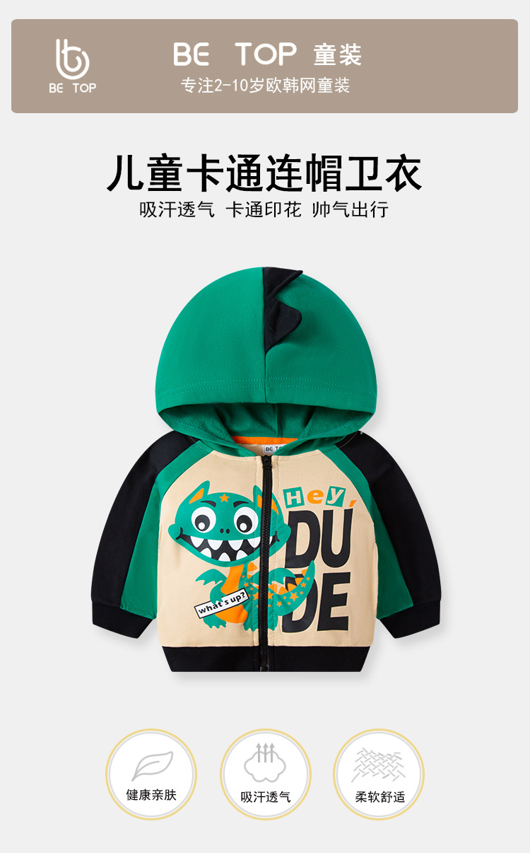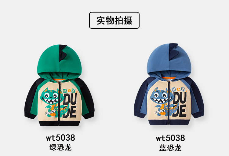 Ser Superior ropa para niños dinosaurio con capucha suéter para niños abrigo suéter de dibujos animados para niños primavera y otoño bebé Delgado algodón puro