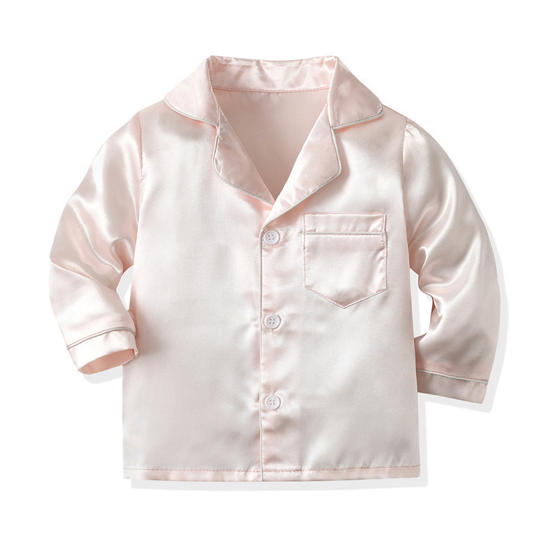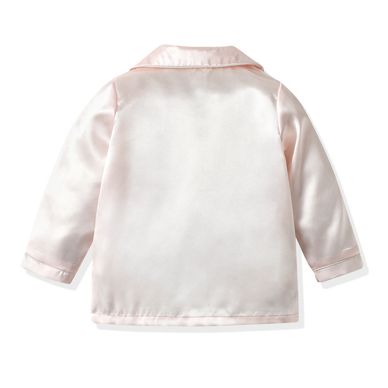 Chaofam manga larga un solo botón de fila para bebés varones y mujeres de otoño pigiama de color sólido coreano ropa de hogar para niños ropa infantil