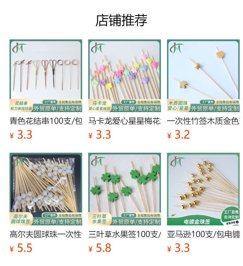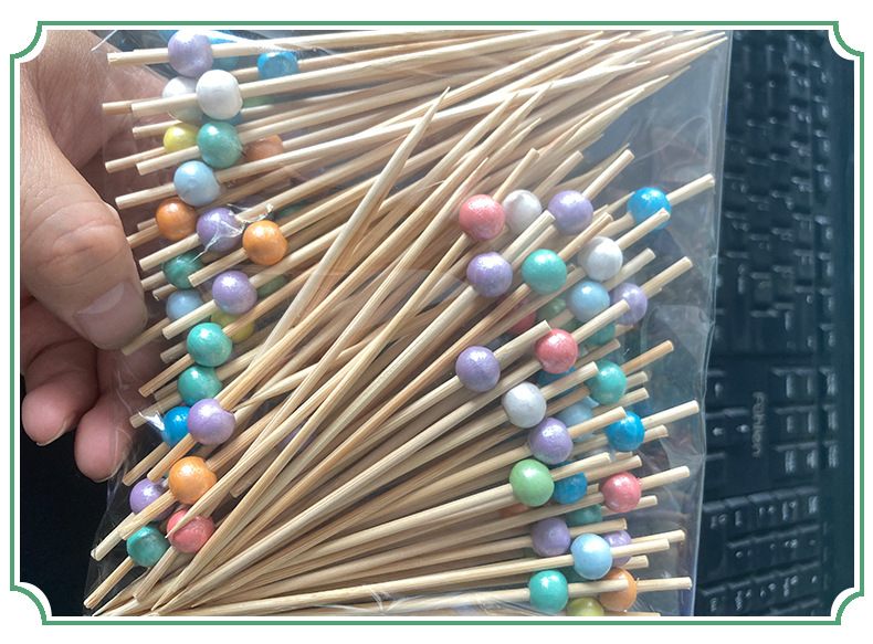 Nuevo producto decoración palo de bambú 100 piezas/paquete de fruta de dibujos animados lindo palo de bambú palo de hamburguesa palo de cóctel palo de bocadillo Amazon