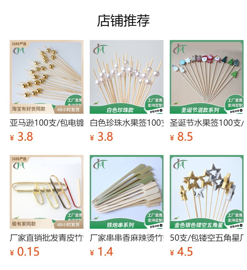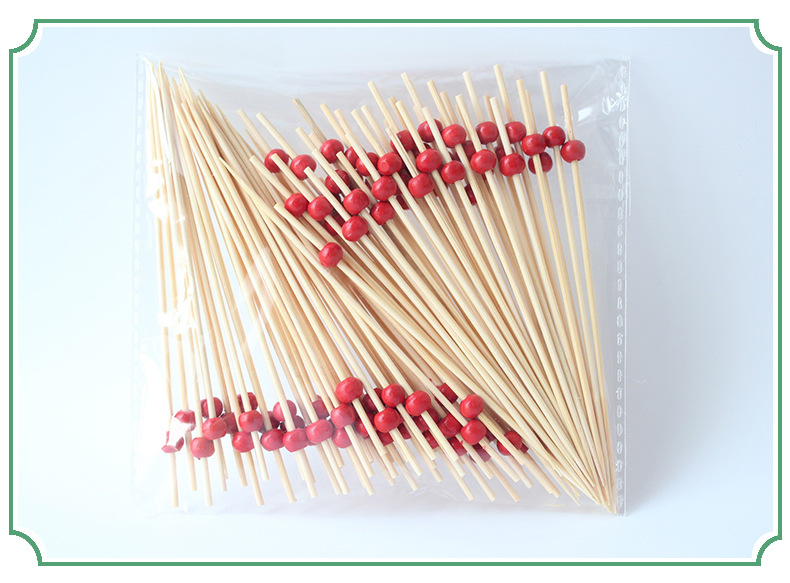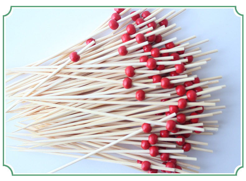 Pequeñas cuentas Rojas desechables palo de fruta 100 unids/pack 12cm mini varilla blanca cuentas de arroz bambú palo cadena venta directa de fábrica al por mayor