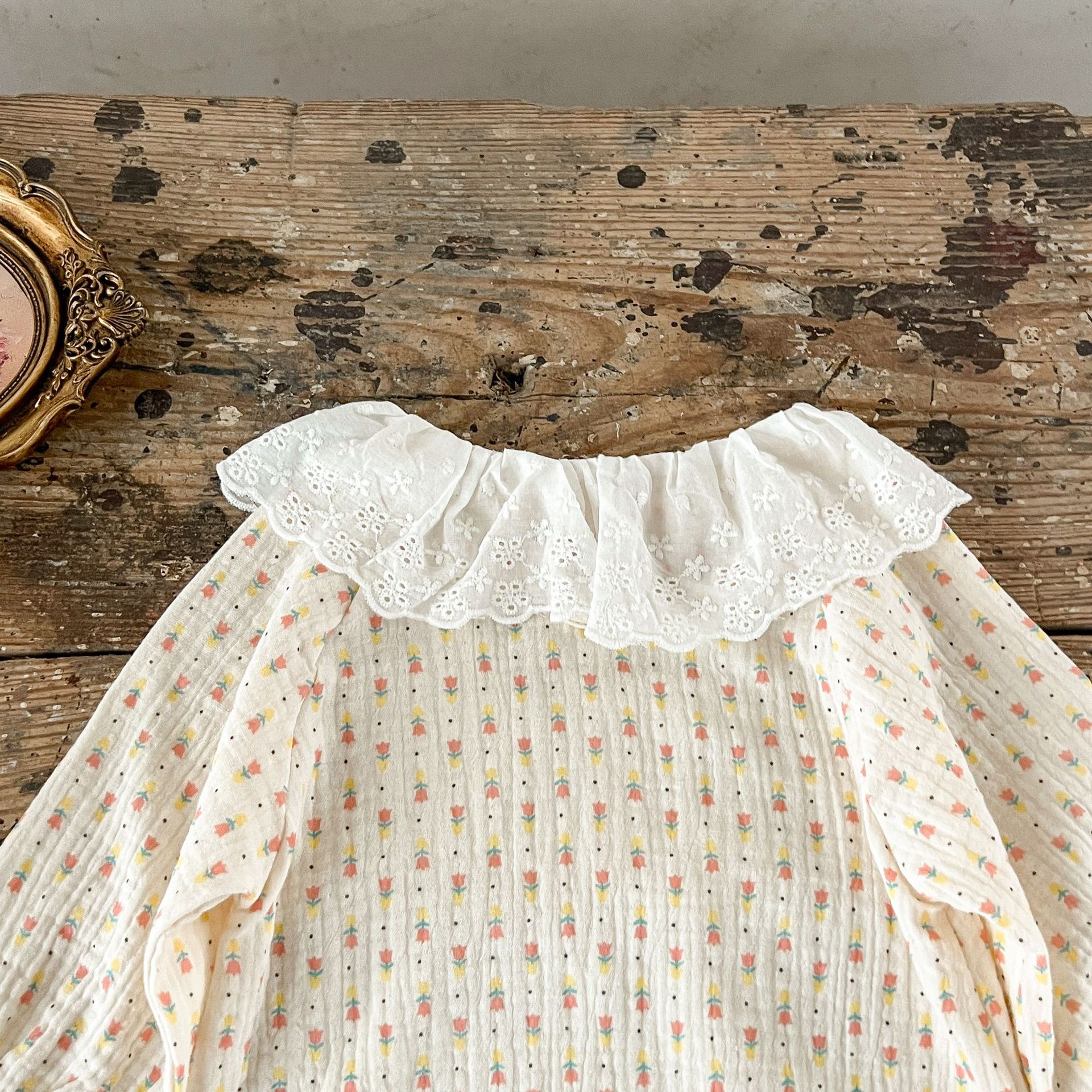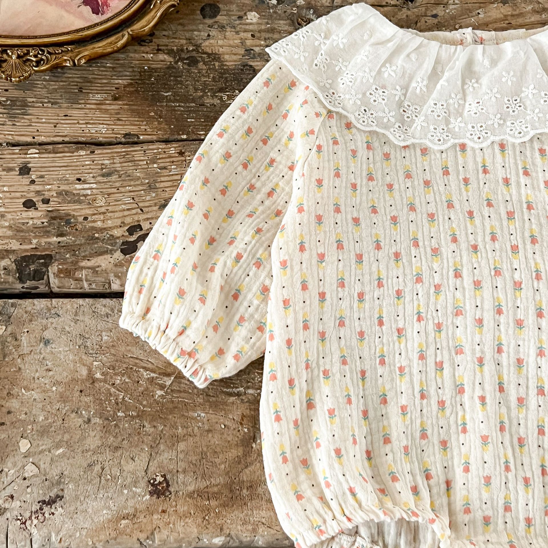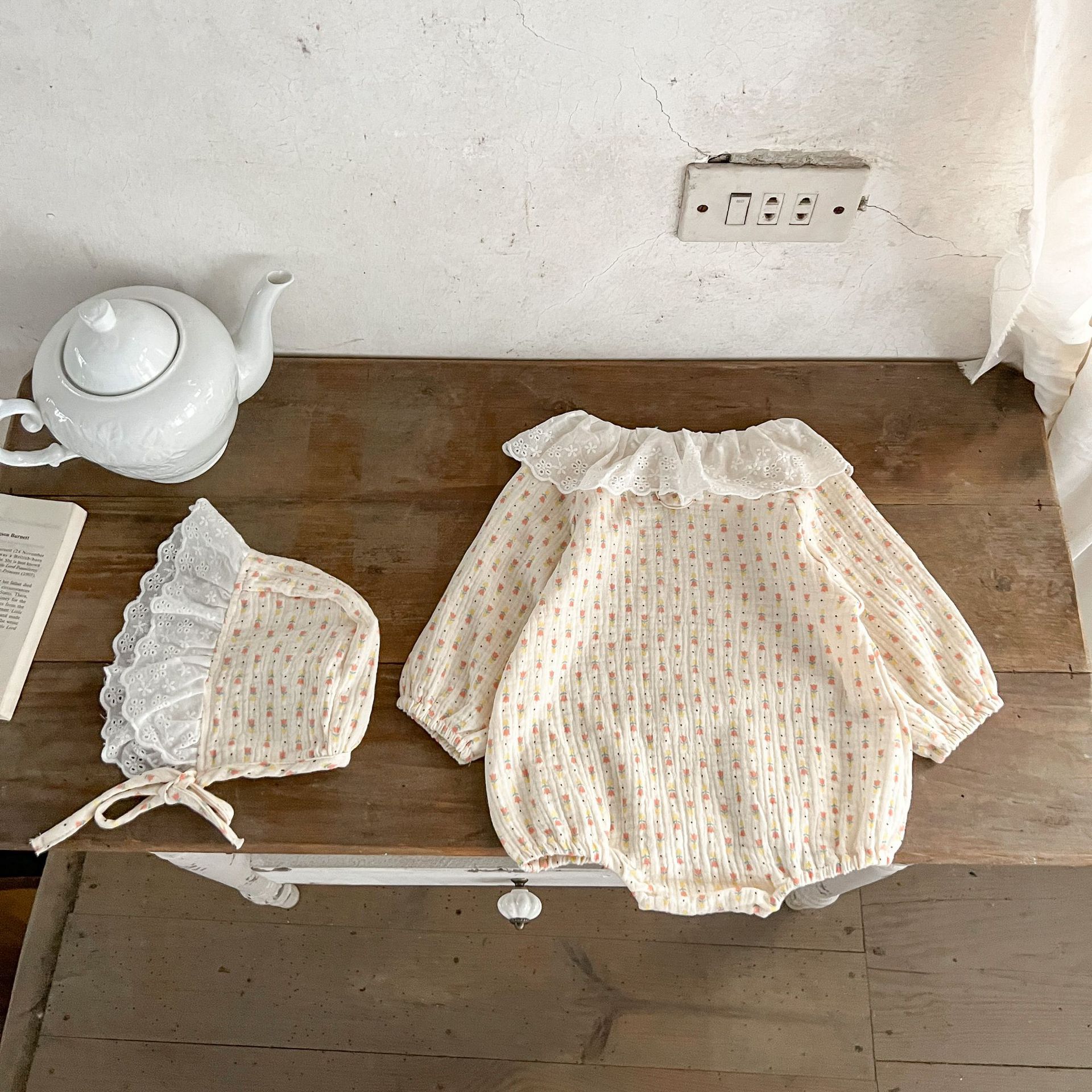 INS estilo coreano collar de encaje de bebé para niñas zanahoria impreso algodón suelto de doble capa mameluco de gasa para sombrero gratis moda