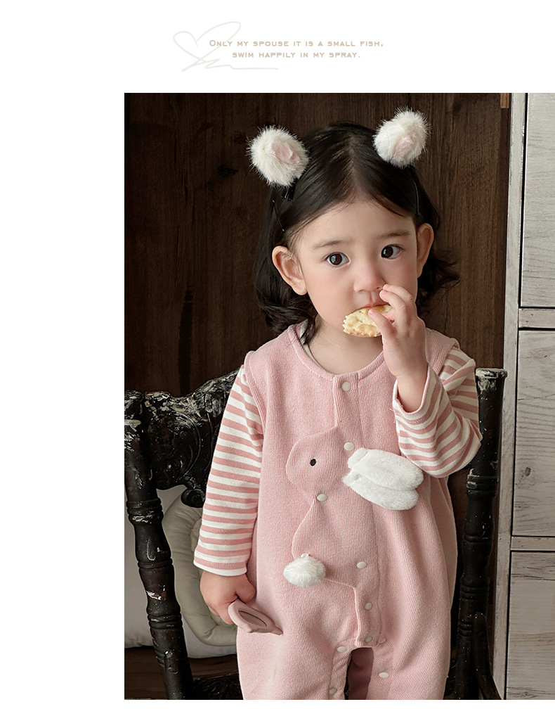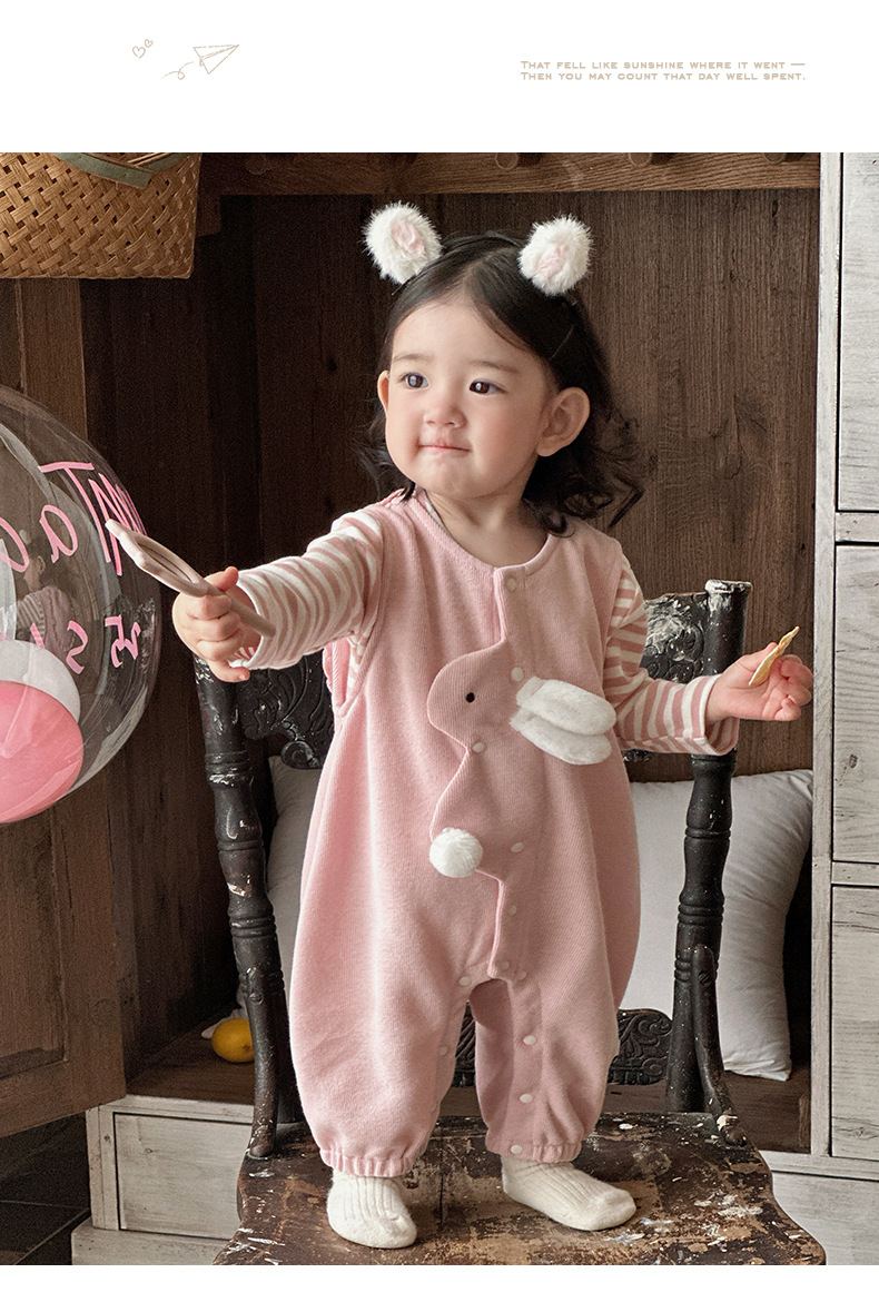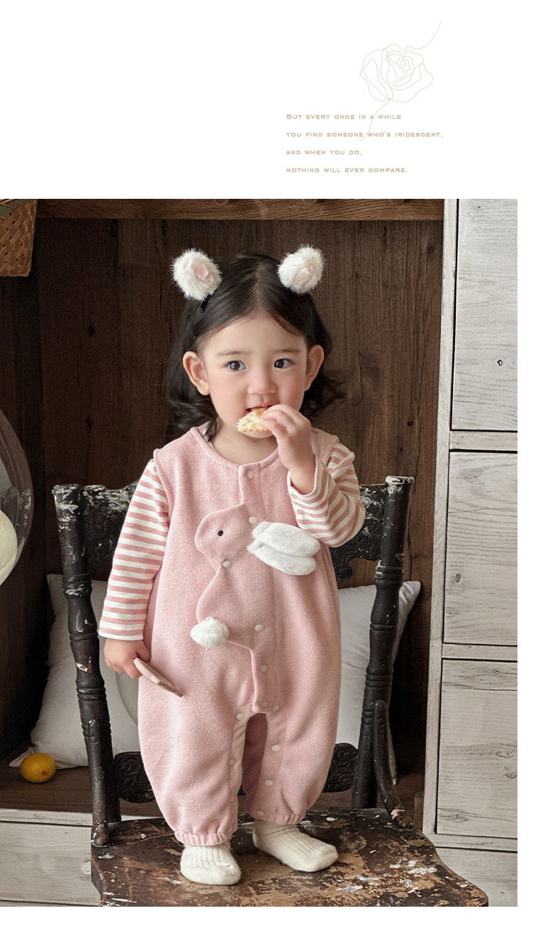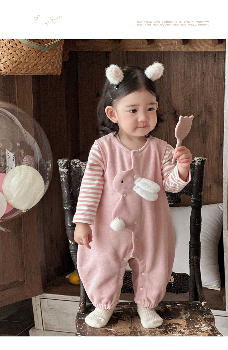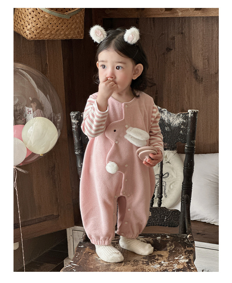 2025 primavera nuevo producto ropa de bebé lindo babero de conejito camiseta a rayas traje de dos piezas para bebés de 1-3 años