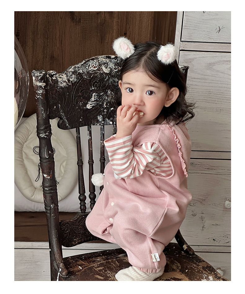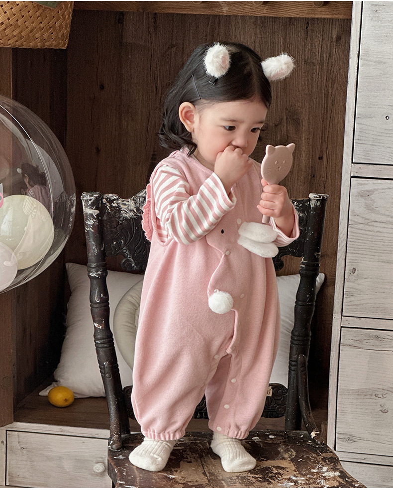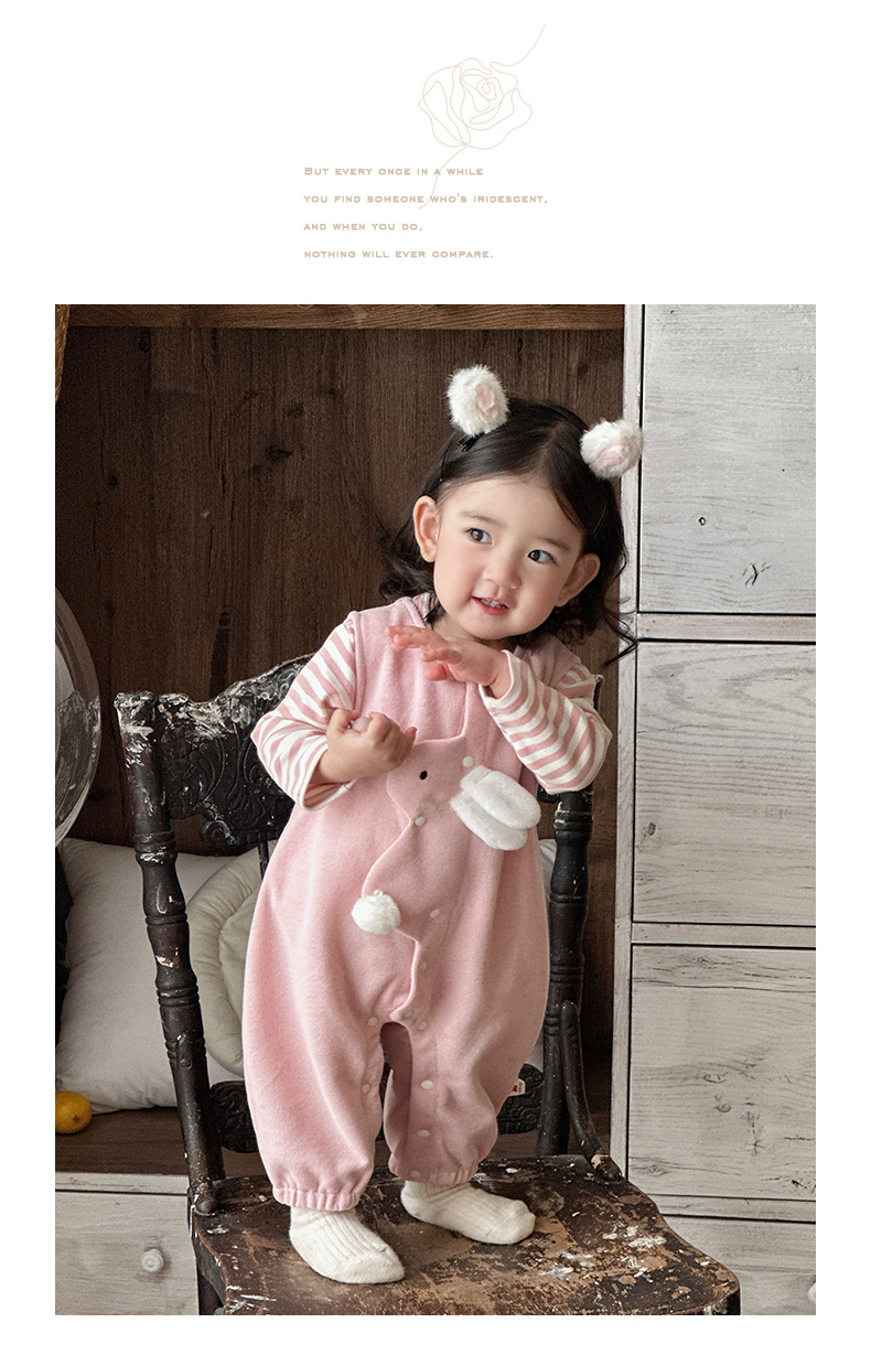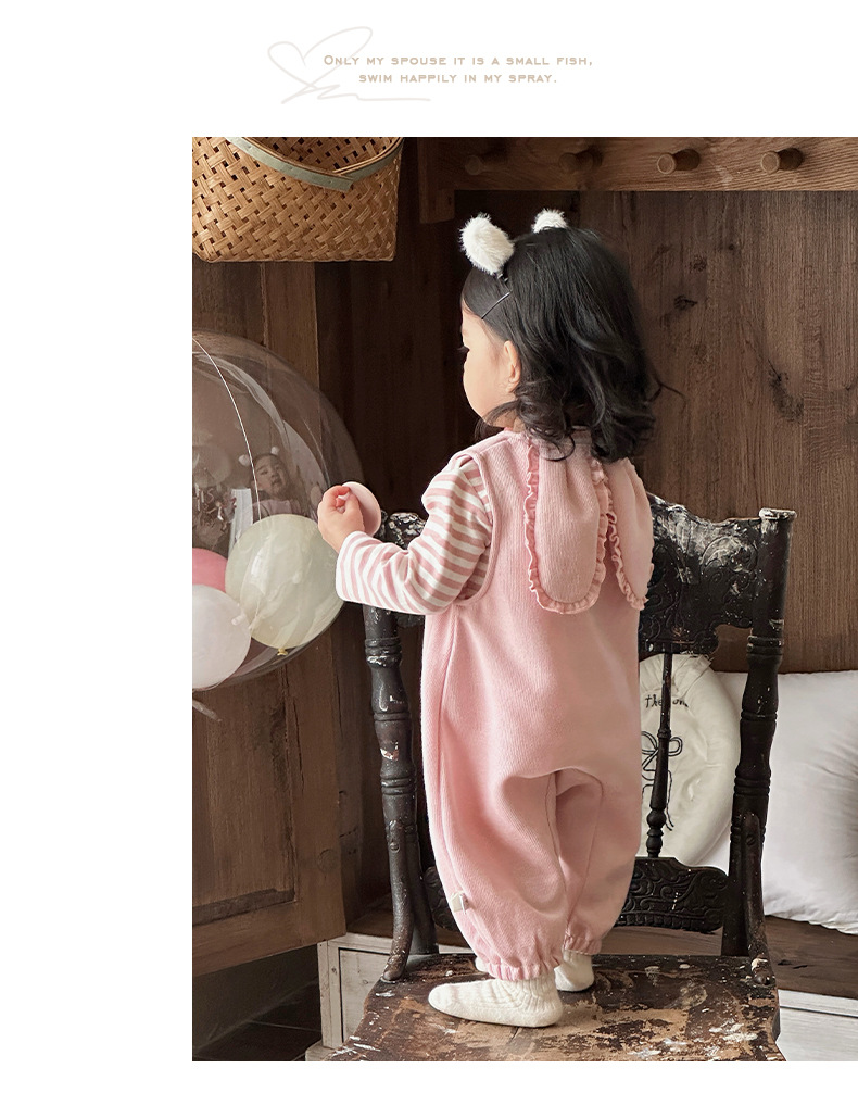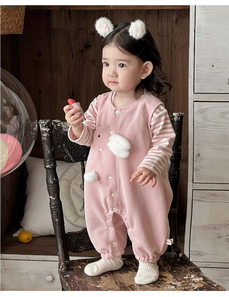 2025 primavera nuevo producto ropa de bebé lindo babero de conejito camiseta a rayas traje de dos piezas para bebés de 1-3 años