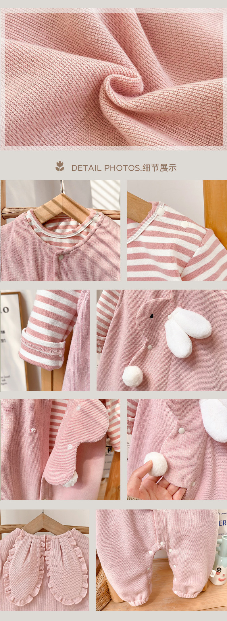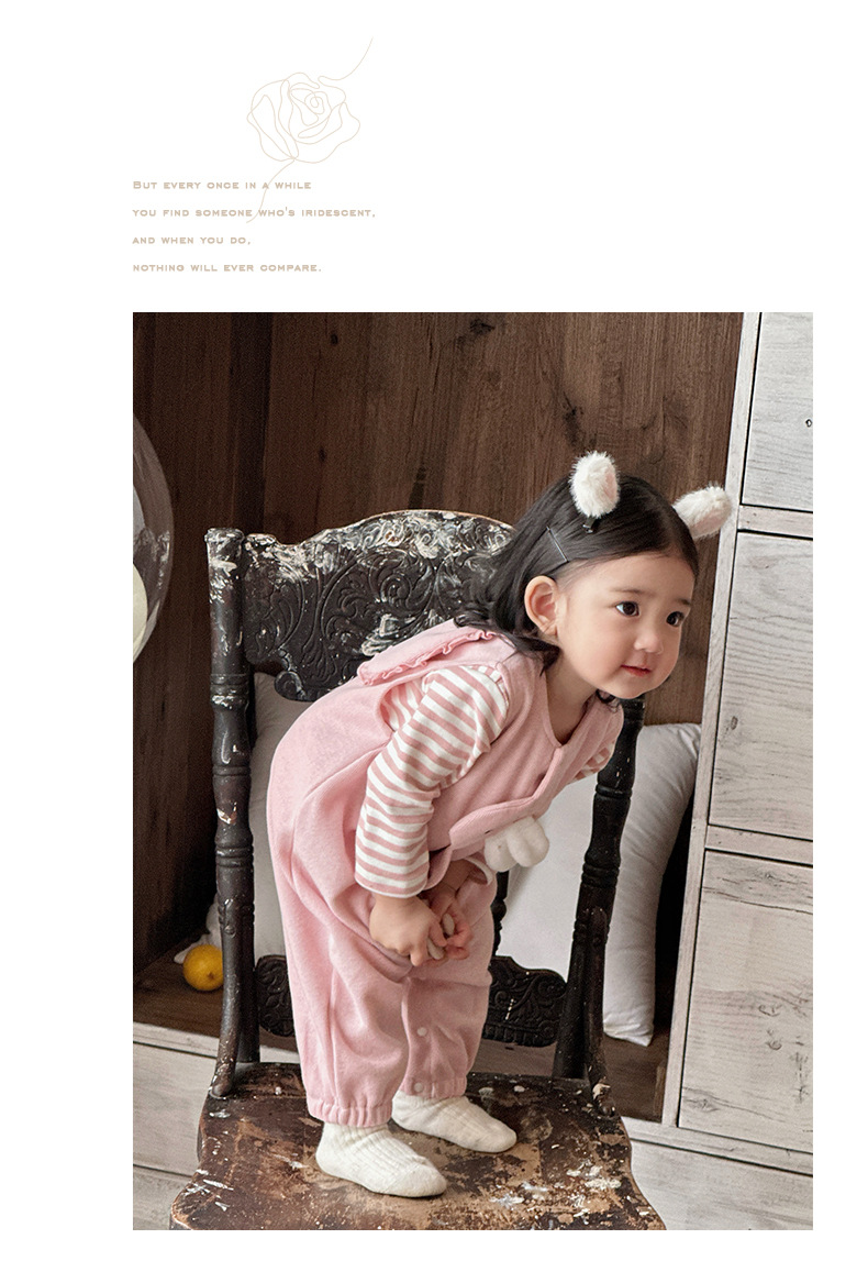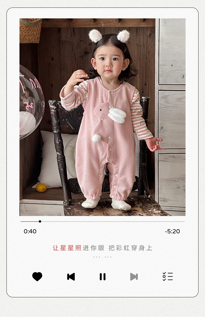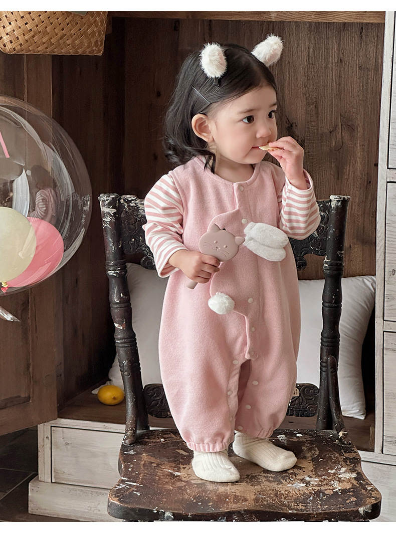 2025 primavera nuevo producto ropa de bebé lindo babero de conejito camiseta a rayas traje de dos piezas para bebés de 1-3 años