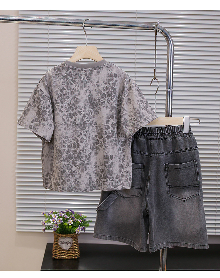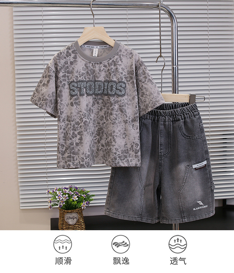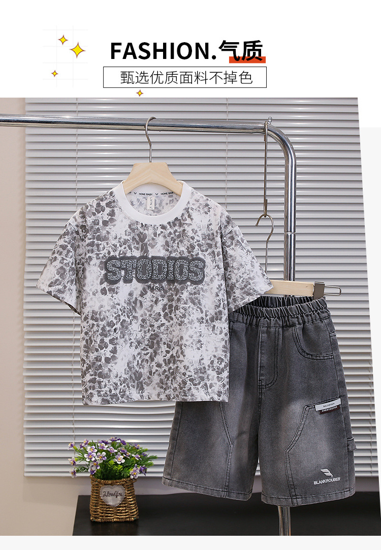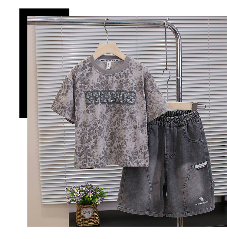 7255 Traje de manga corta para niños 2025 Nuevo estilo de verano para niños Ropa hermosa y de moda Verano delgado de dos piezas Verano