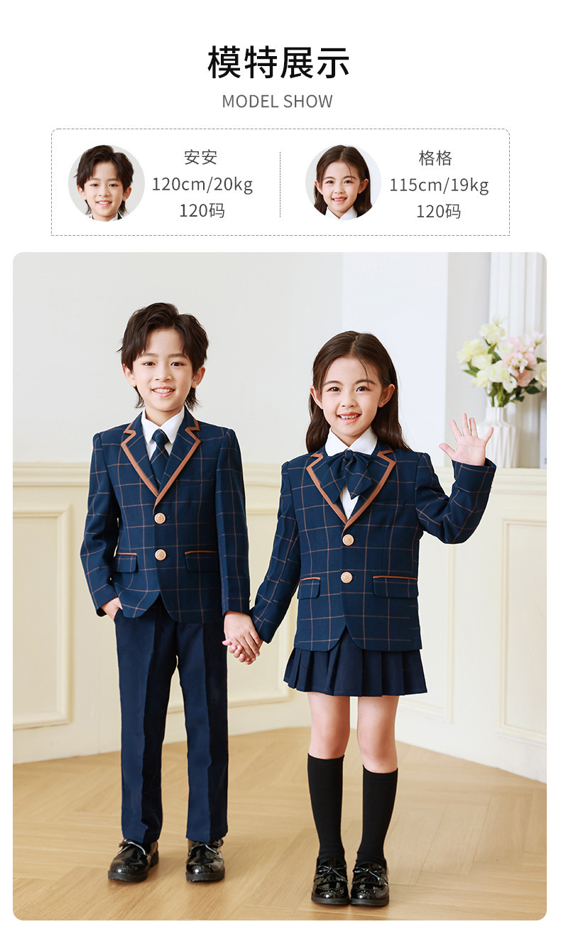 Ropa de clase de estudiante de escuela primaria niños y niñas traje vestido ropa de jardín de infantes niños estilo universitario uniforme escolar anfitrión coro ropa de rendimiento