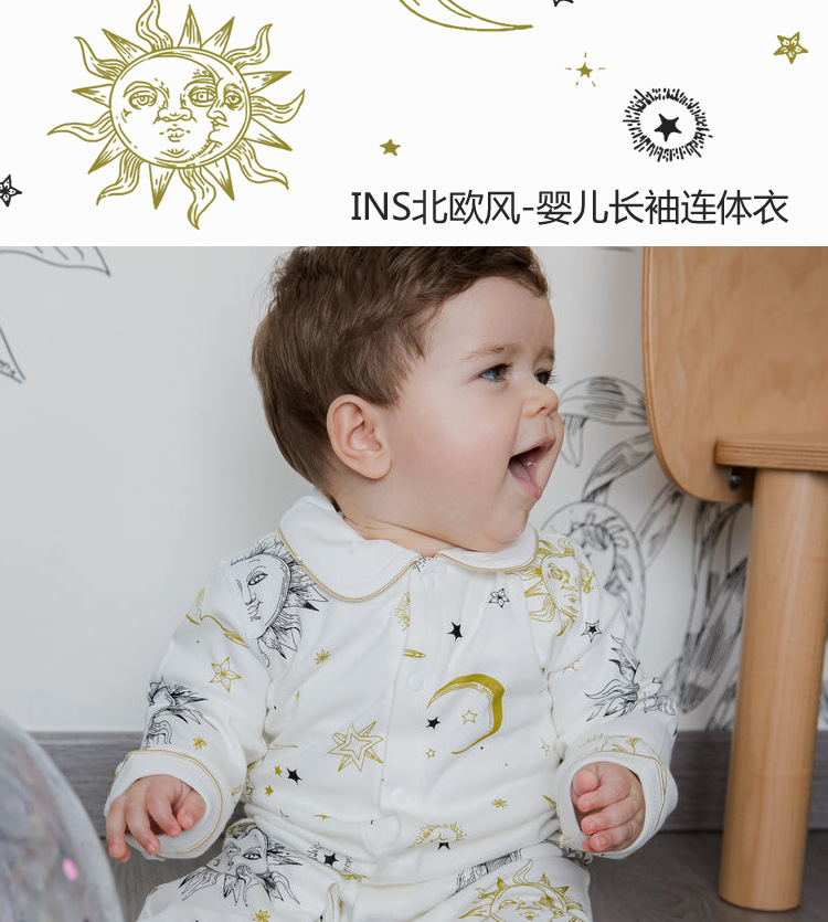 Al por mayor personalizado estilo nórdico primavera y otoño mono bebé mampara de manga larga algodón hombres y mujeres mono bebé ropa de hogar