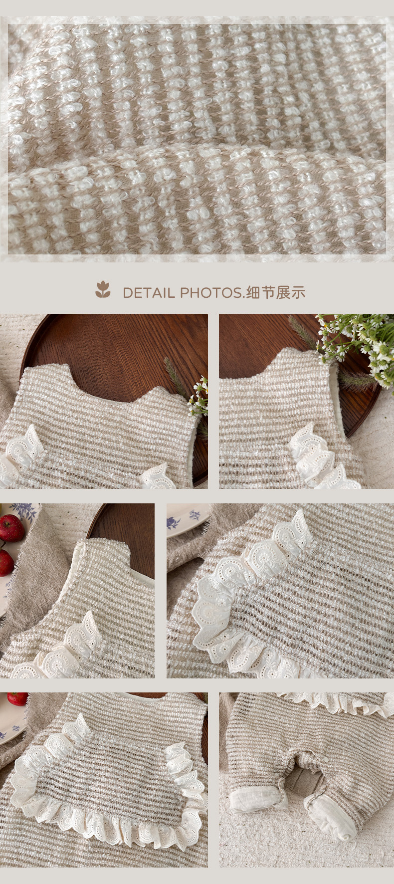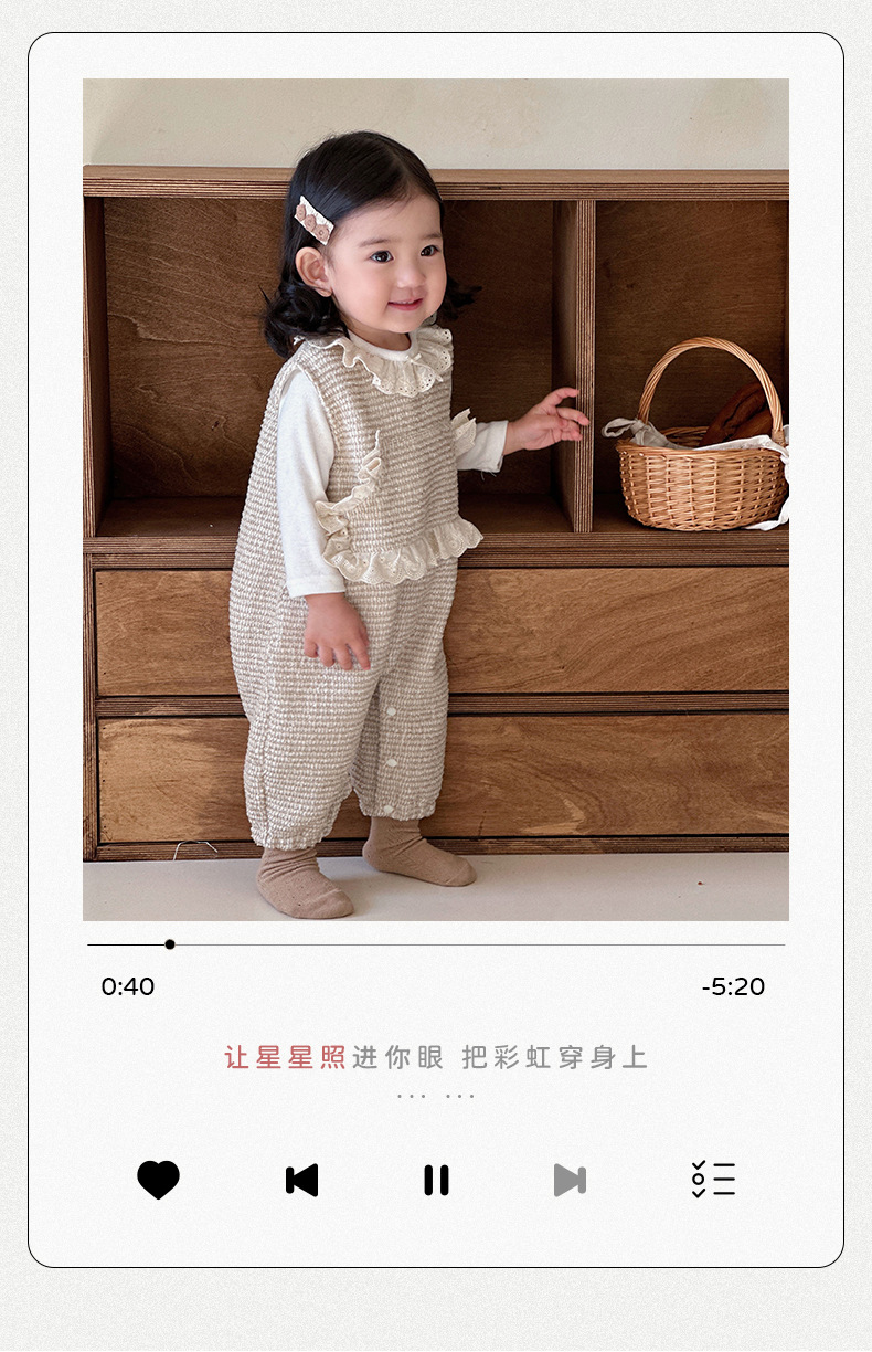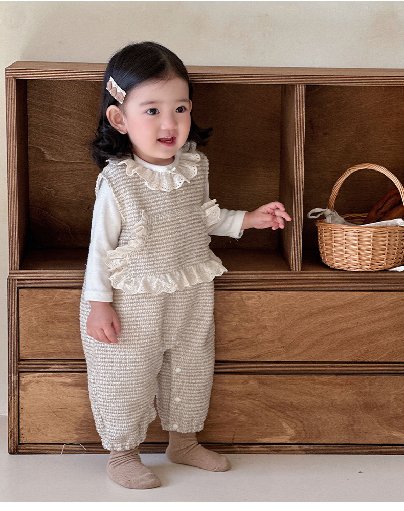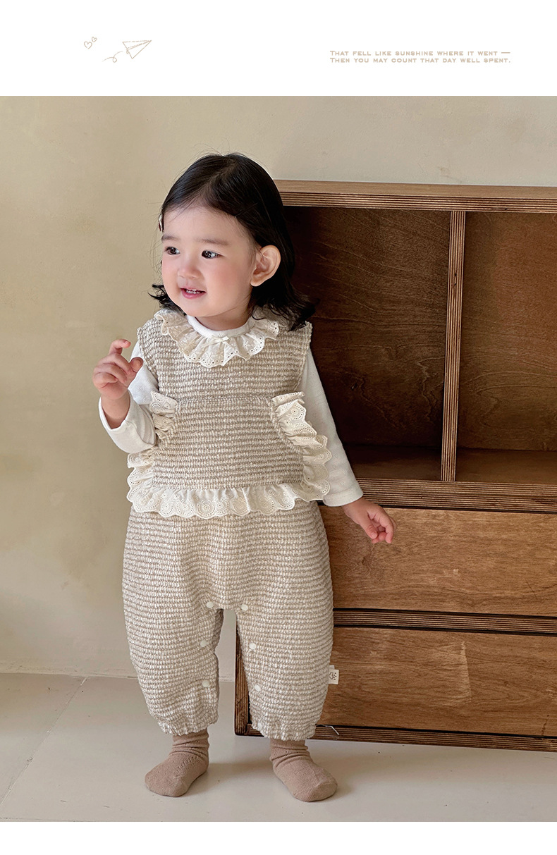 2025 primavera y otoño nuevo producto coreano traje ropa para bebés dulce camisa de fondo de encaje hueco mono de dos piezas