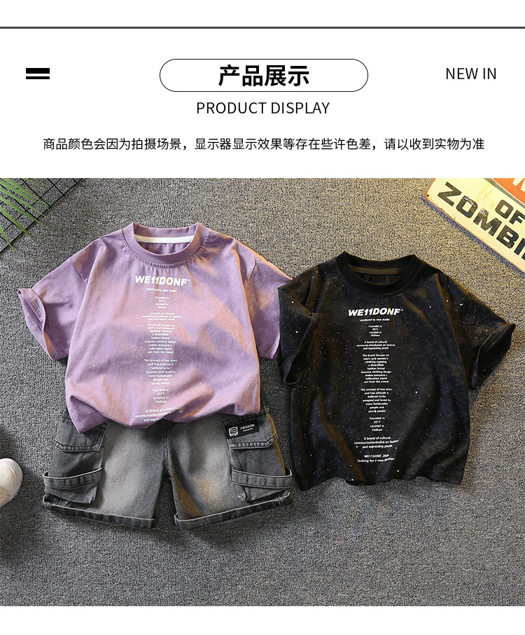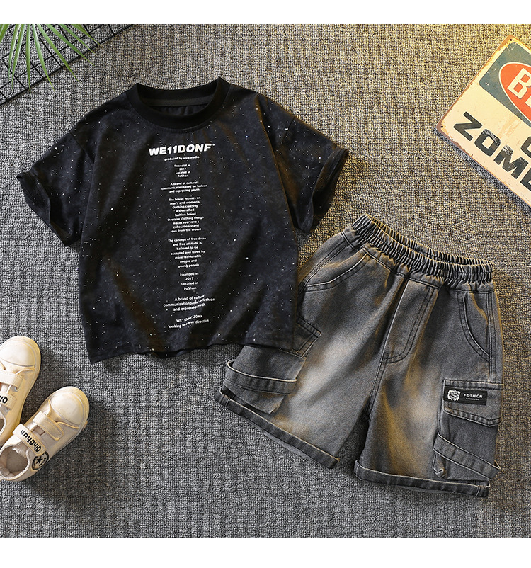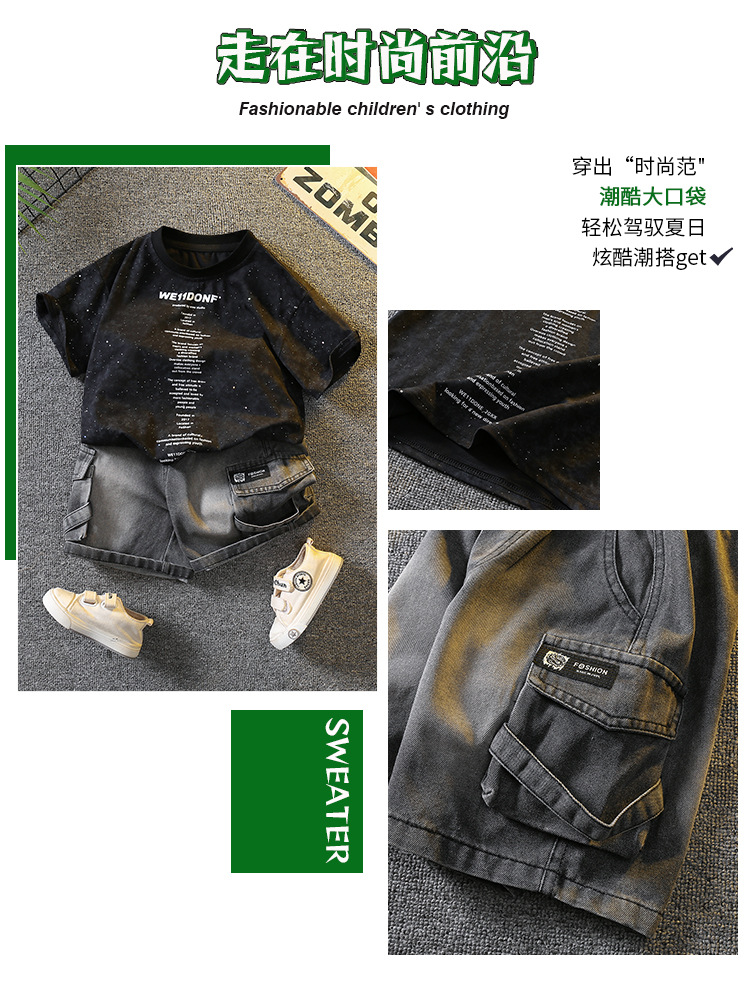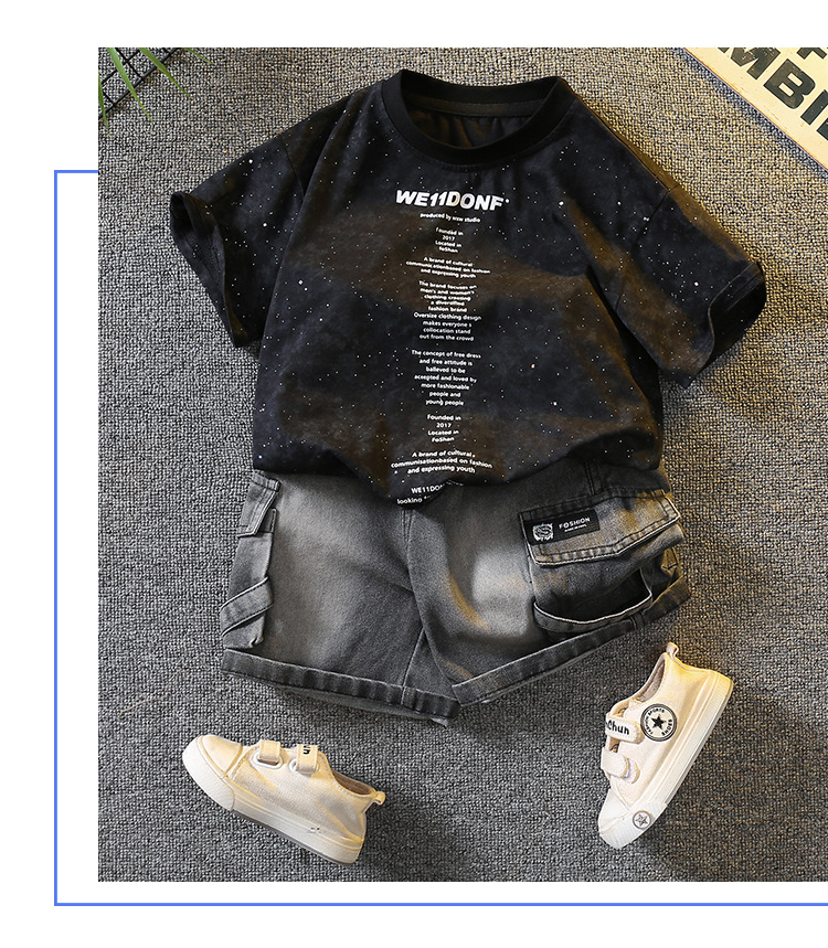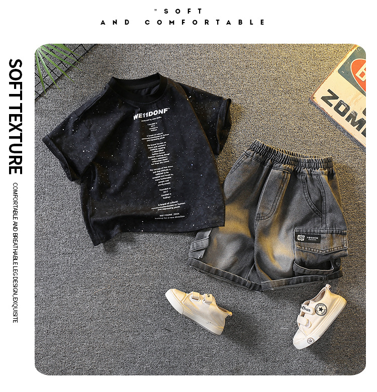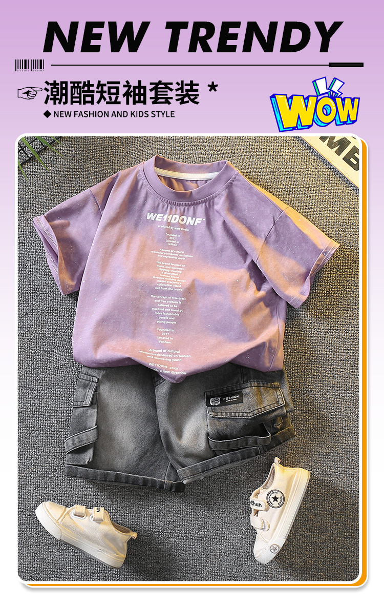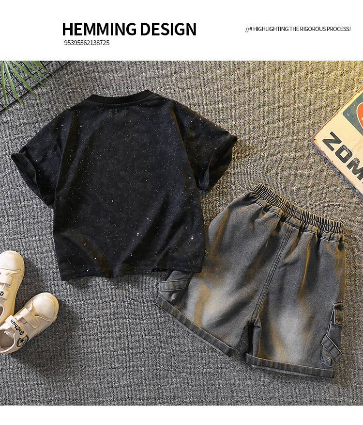 5383 Traje de manga corta de la camiseta de los niños 2025 nuevo vestido de verano para bebés guapo y de moda Traje de dos piezas para niños