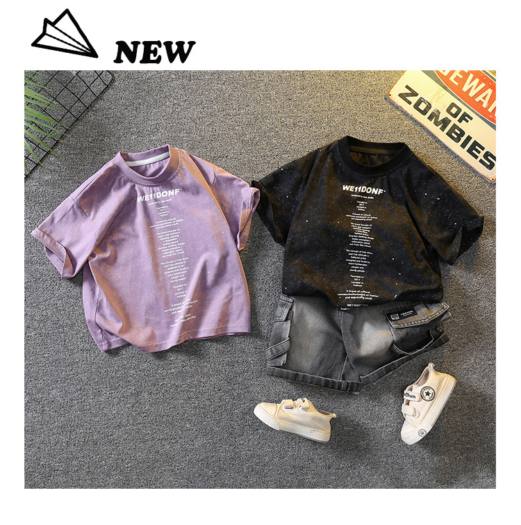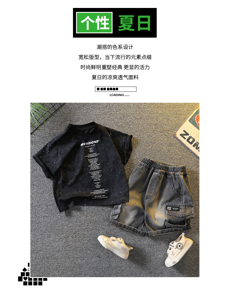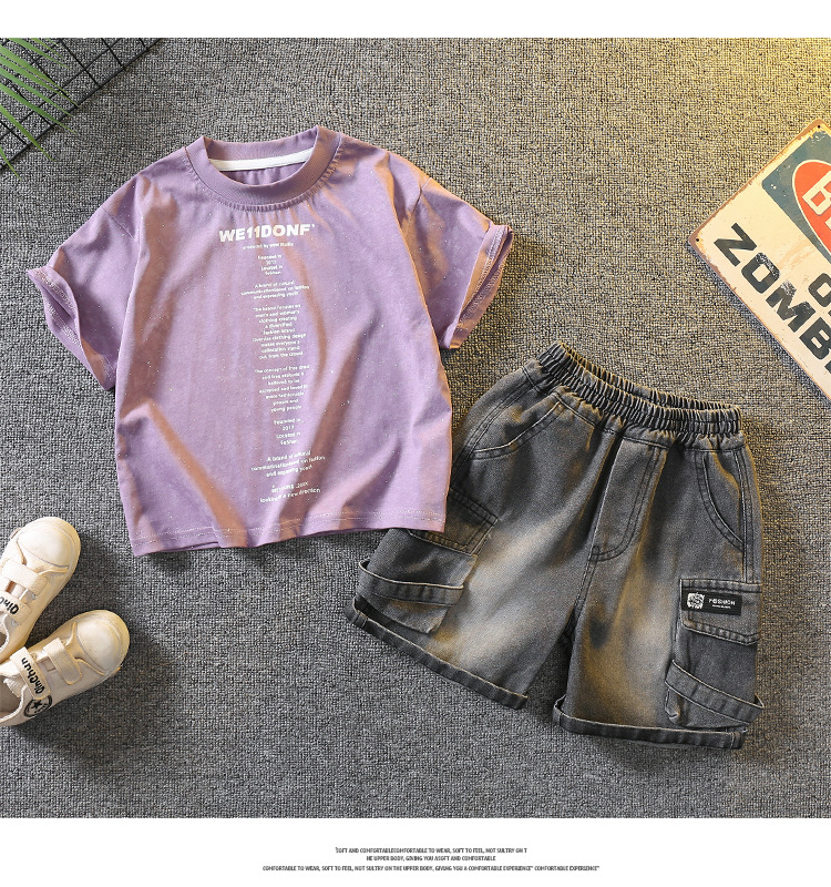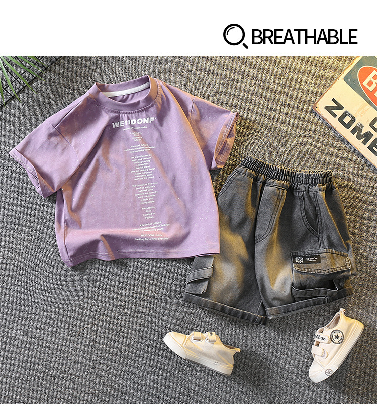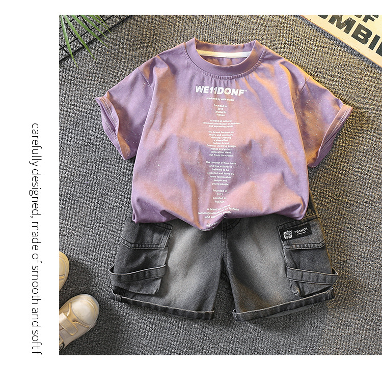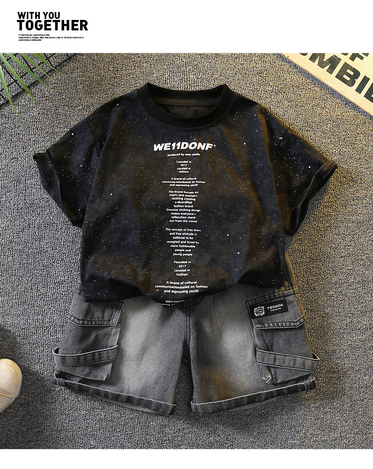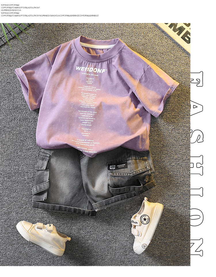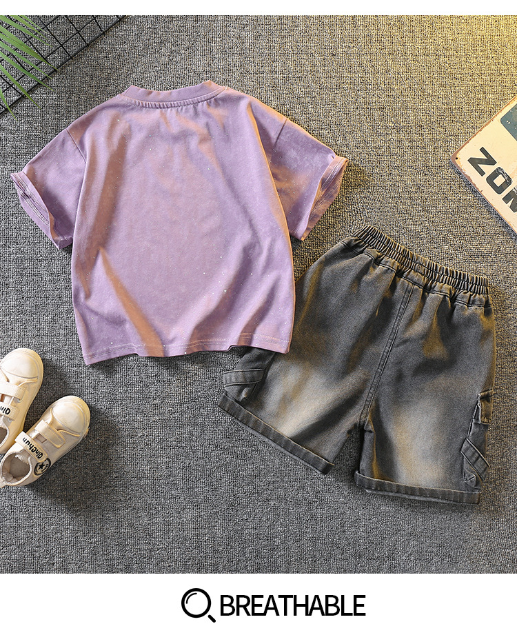5383 Traje de manga corta de la camiseta de los niños 2025 nuevo vestido de verano para bebés guapo y de moda Traje de dos piezas para niños