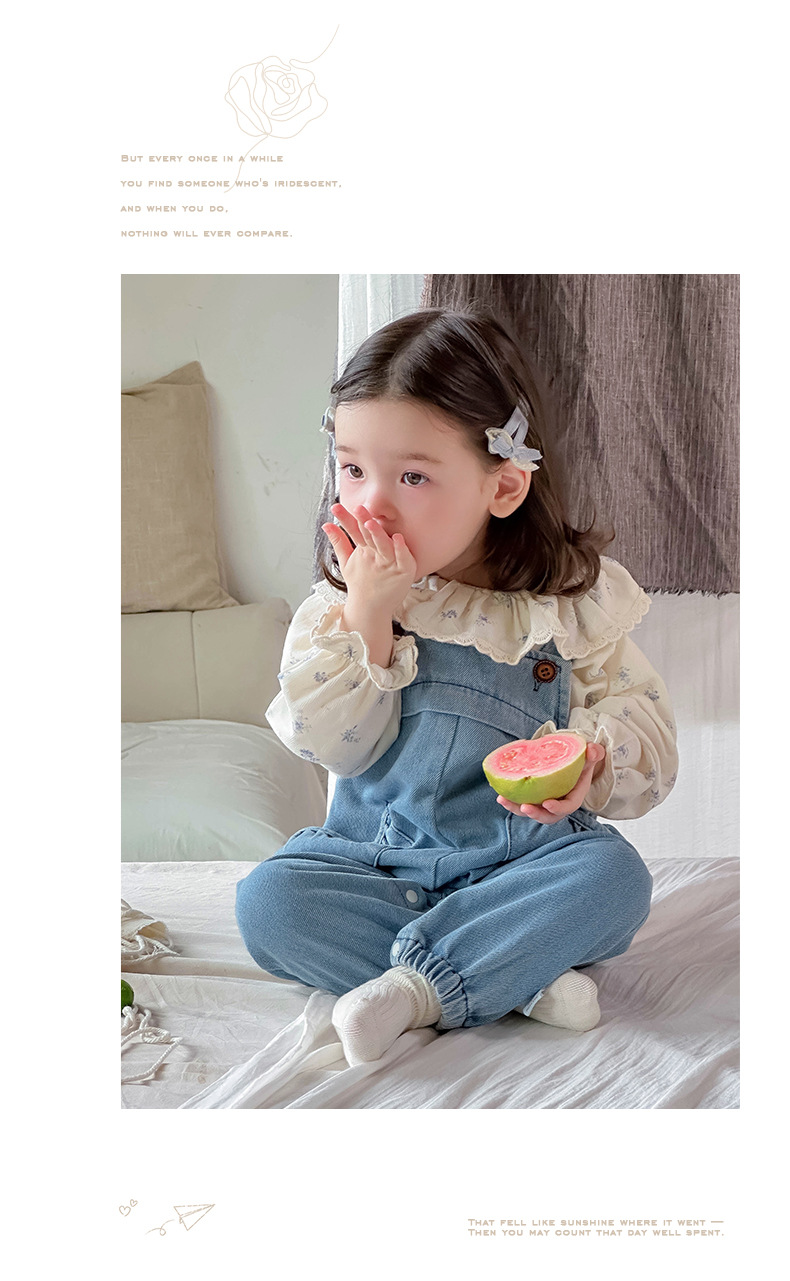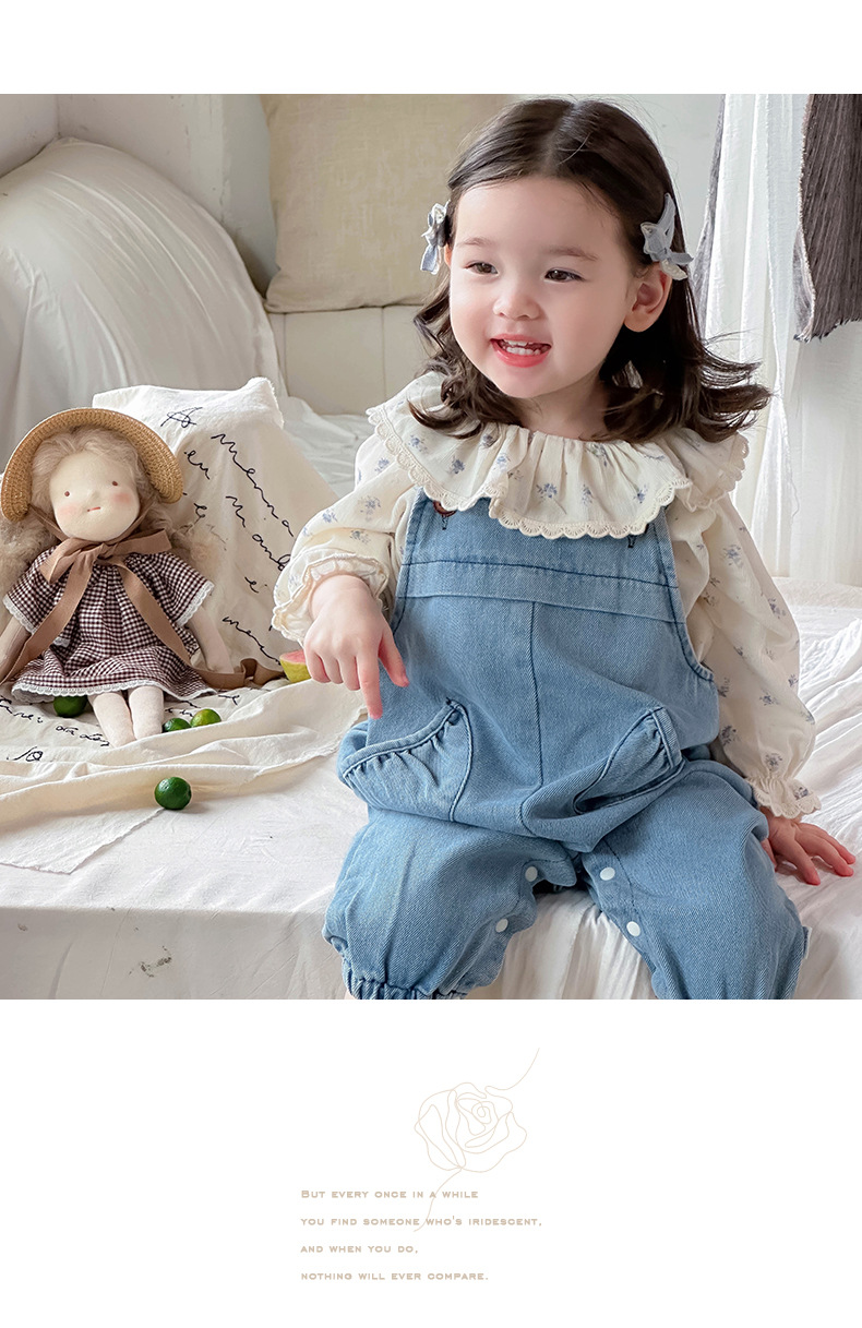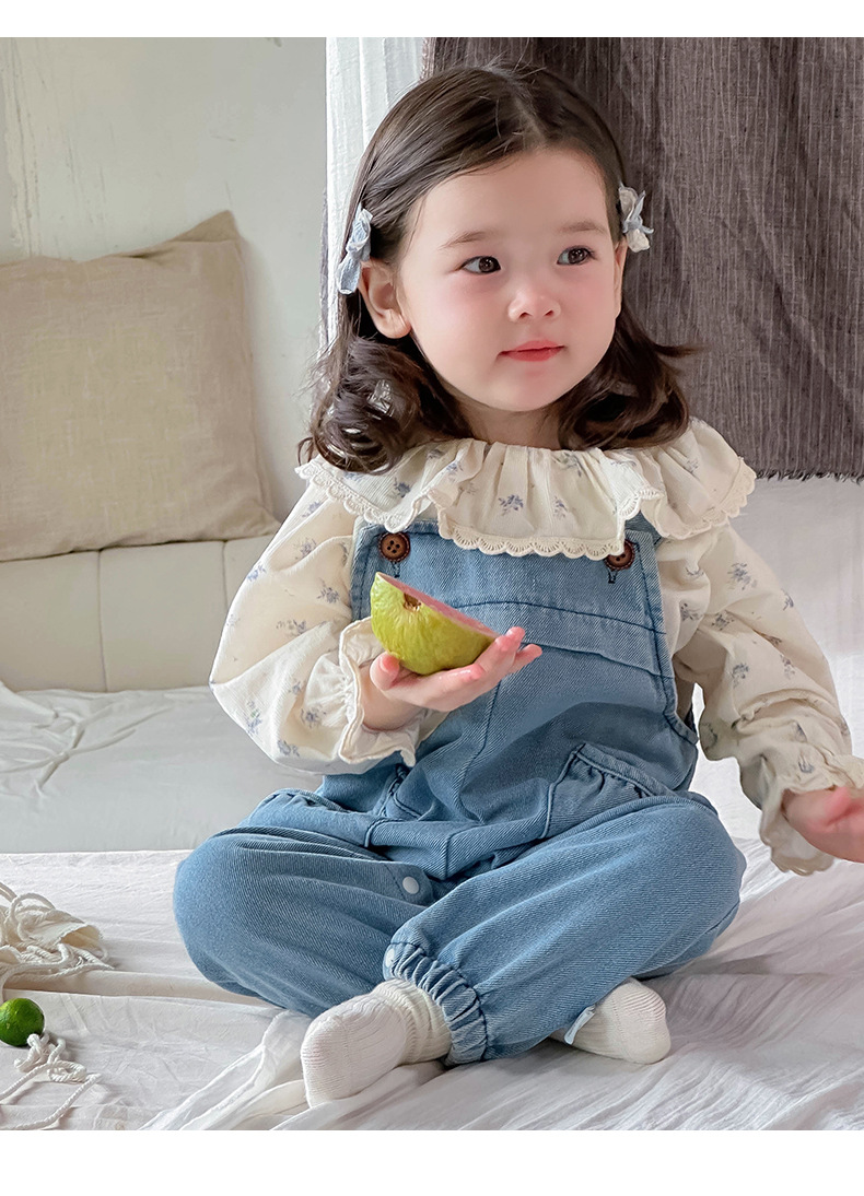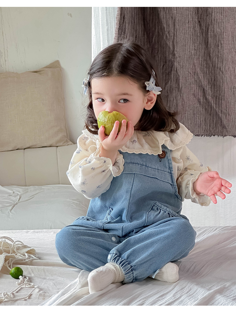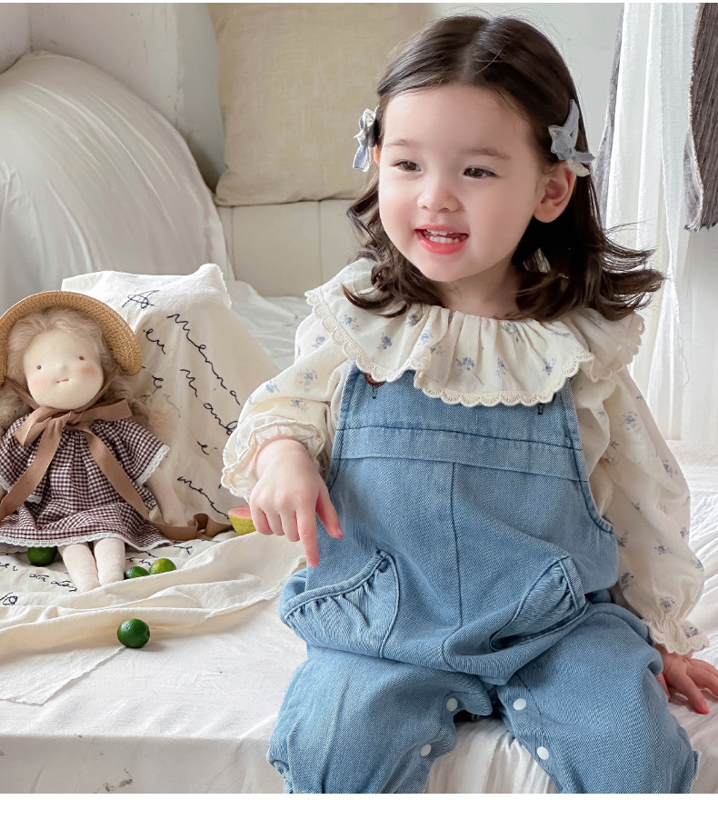 Ropa de bebé 2024 otoño camisa de solapa fresca mono de mezclilla traje de dos piezas de manga larga para bebé