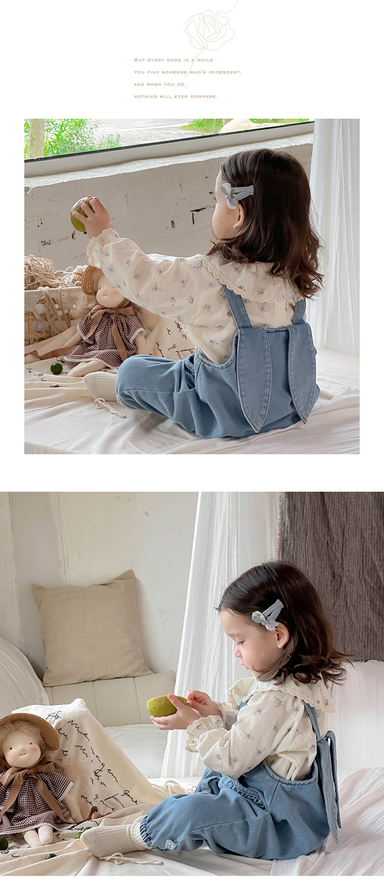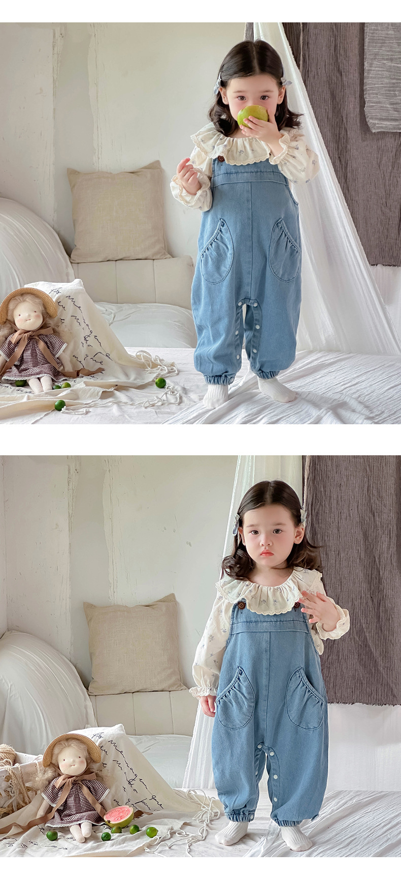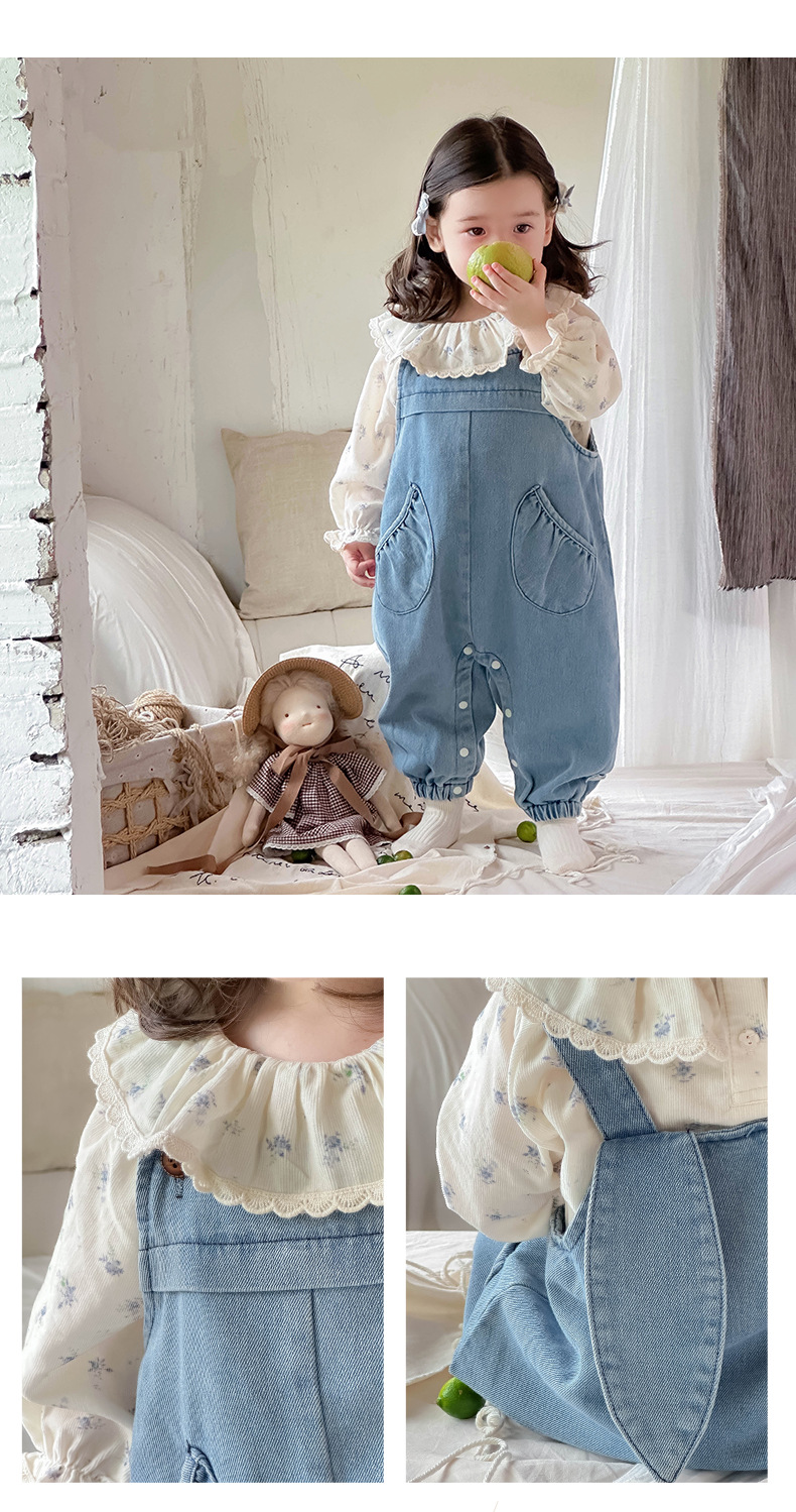 Ropa de bebé 2024 otoño camisa de solapa fresca mono de mezclilla traje de dos piezas de manga larga para bebé