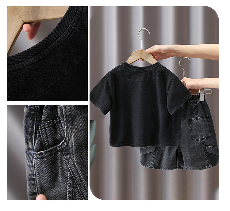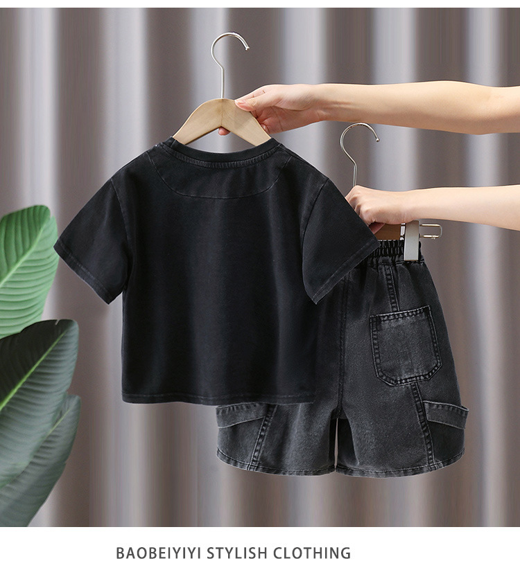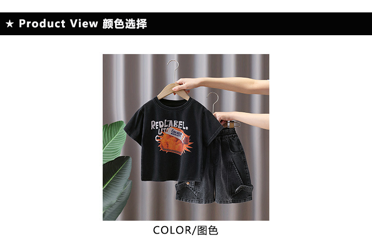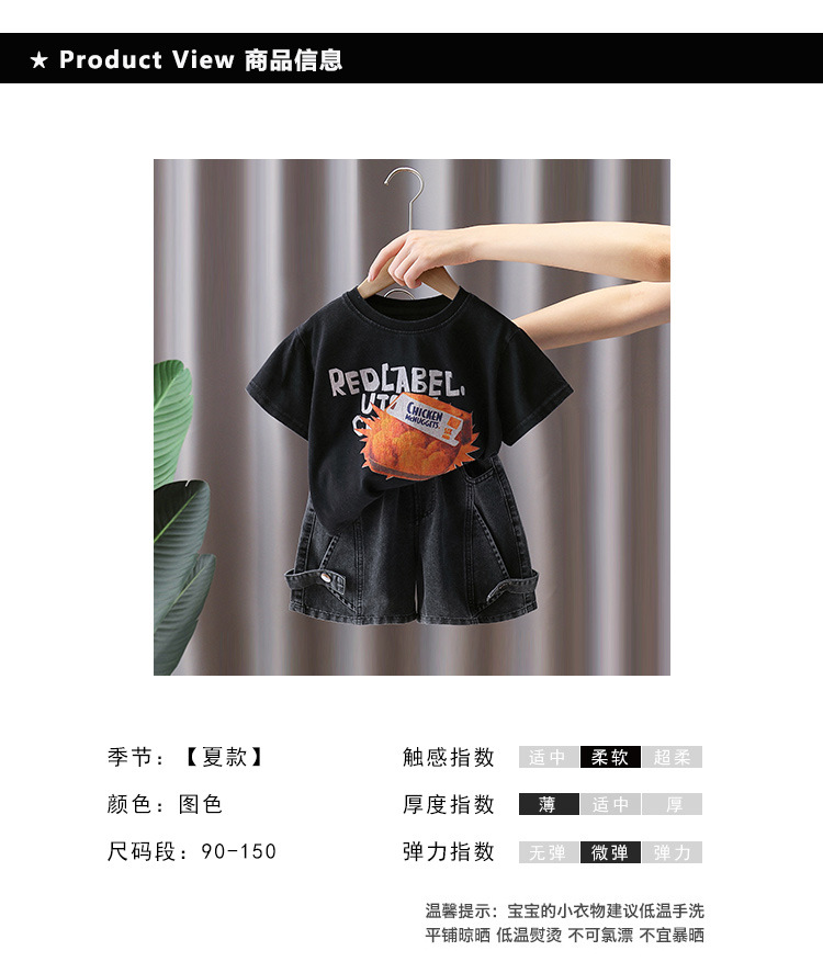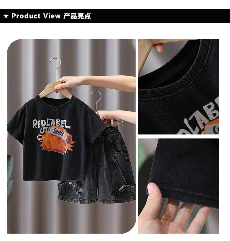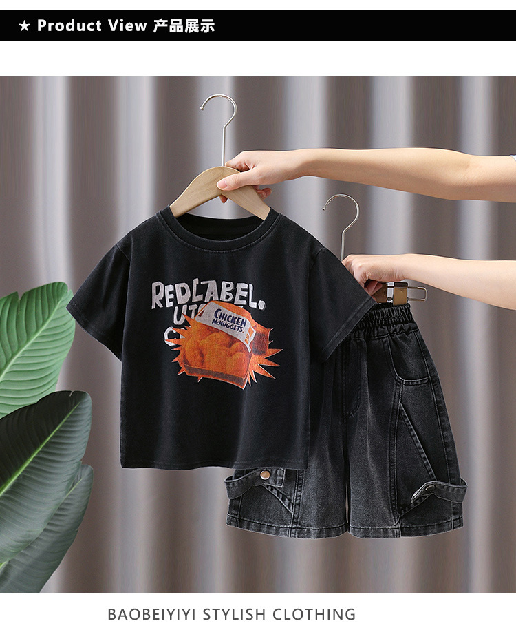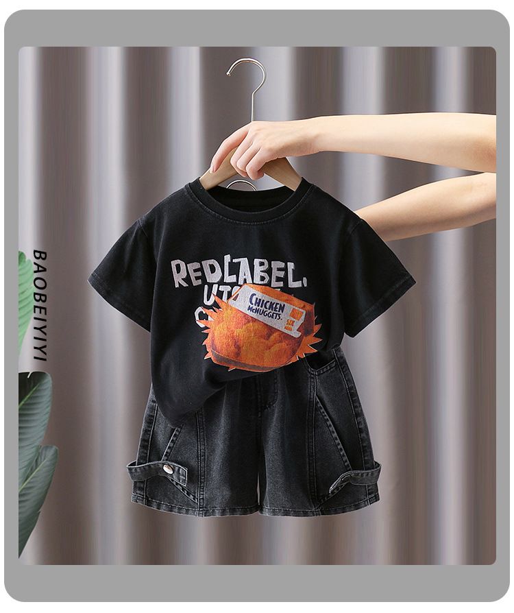 7402 Traje de camiseta de manga corta para niños Estilo fino de verano Estilo occidental Trendy Ropa para niños Chico Red Red Fried Street Summer Conjunto de dos piezas 5