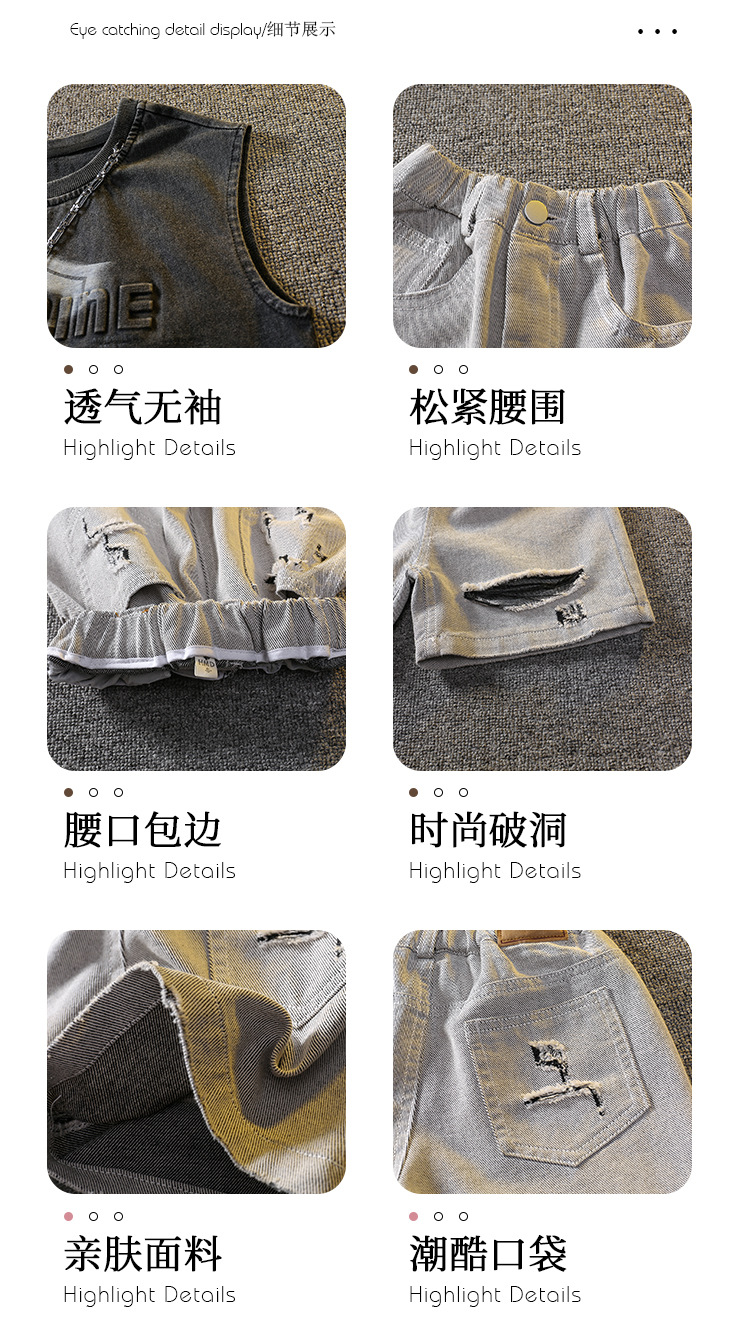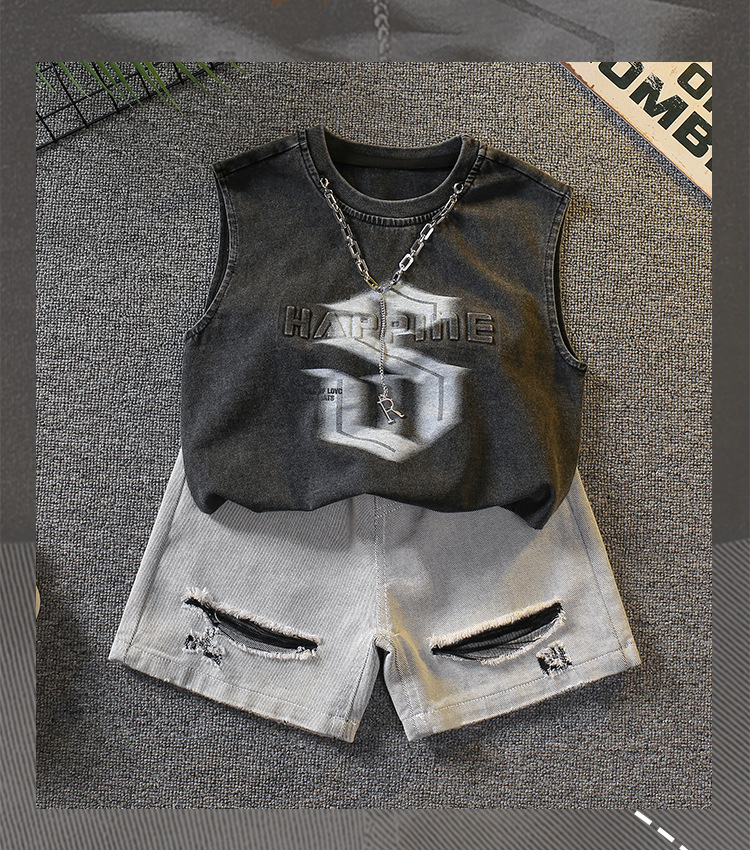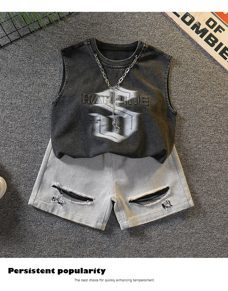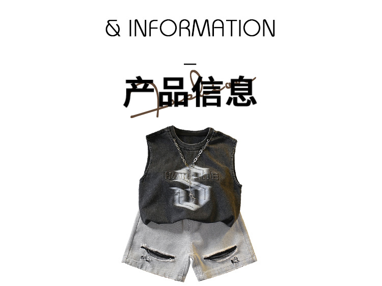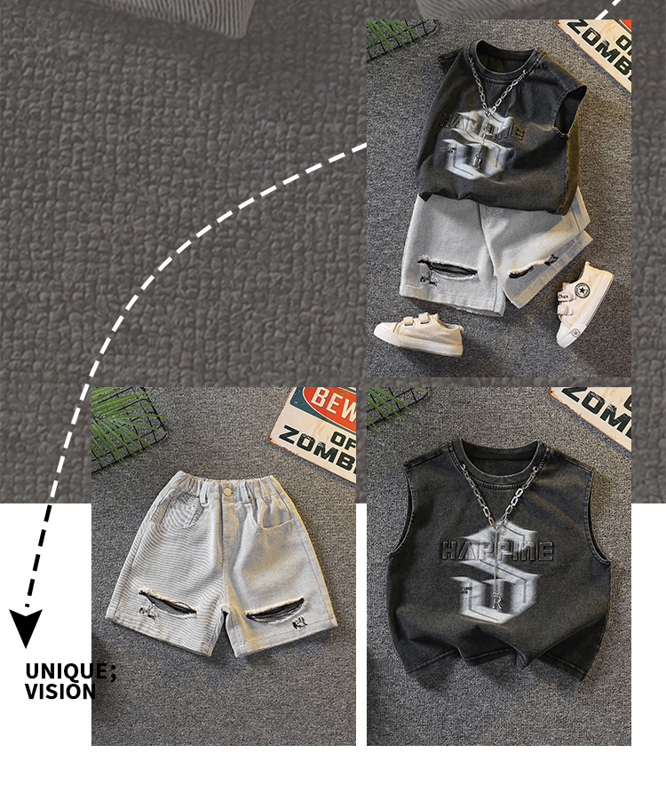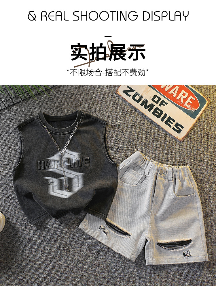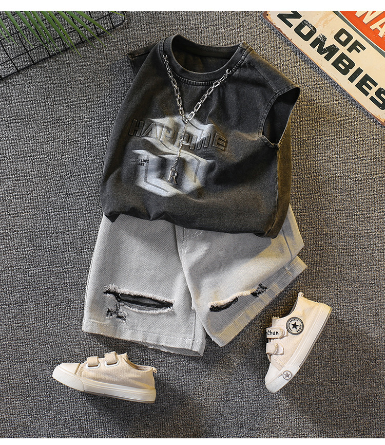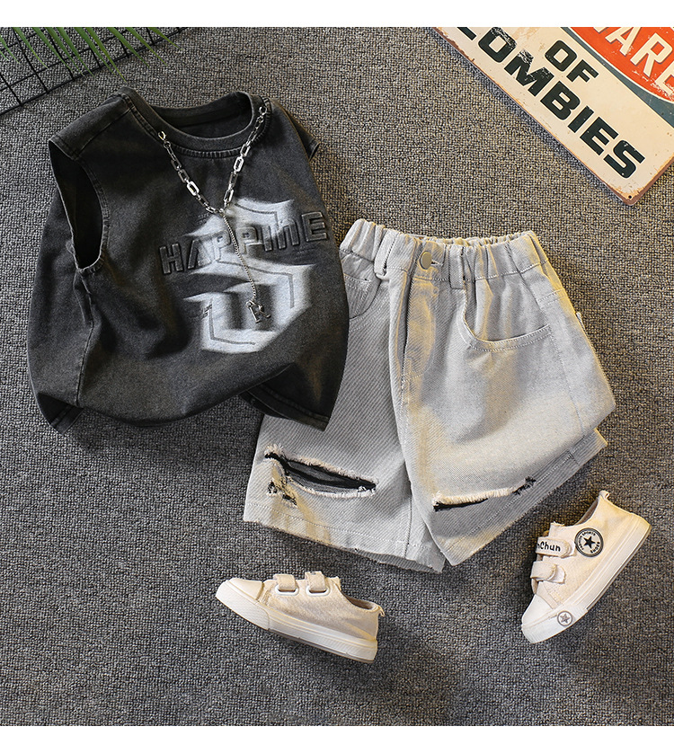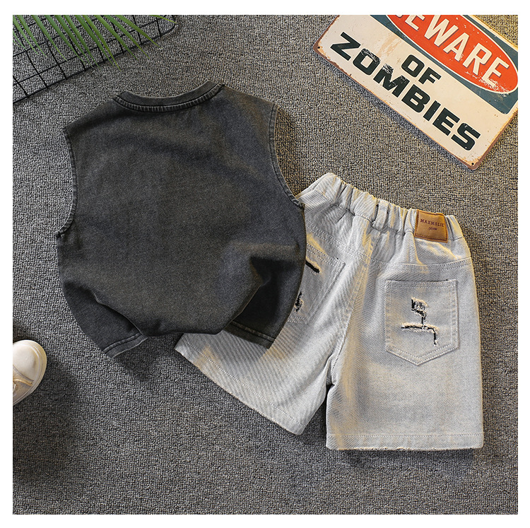 7338 Traje de verano para niños 2025 Nuevo chaleco sin mangas de estilo occidental para niños Verano delgado Versión coreana de dos piezas Verano