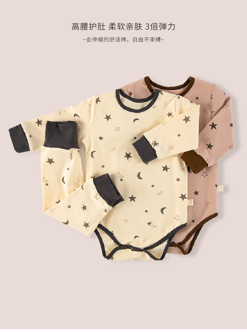 Bebé primavera y otoño ropa de manga larga traje de algodón ropa de bebé niños cintura alta protección del vientre pijamas mameluco del hogar