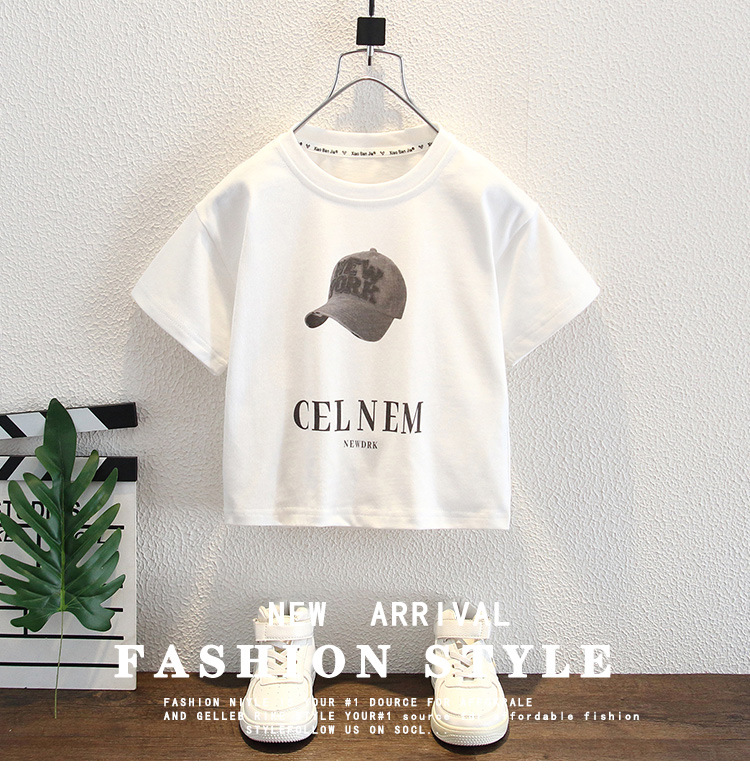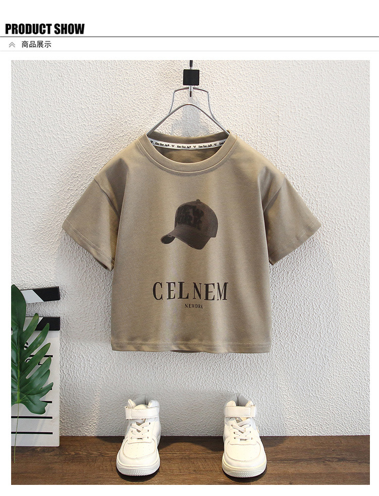 7986 camiseta de manga corta para niños 2025 nueva ropa de verano para niños, estilo guapo, verano para bebés, camiseta de media manga para niños, marea