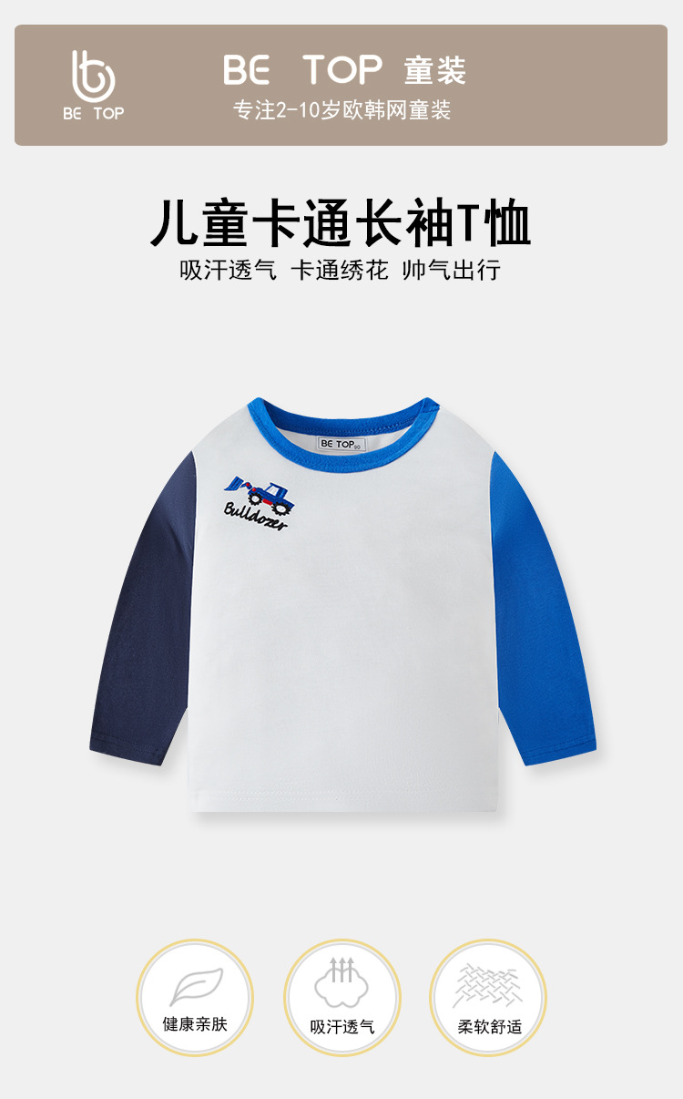 Ser Superior Camiseta de manga larga para niños primavera y otoño estilo occidental color a juego coche bordado camisa de fondo de los niños de algodón puro entrega de una sola pieza
