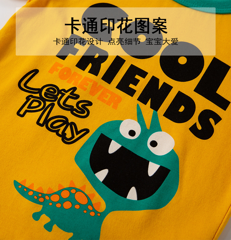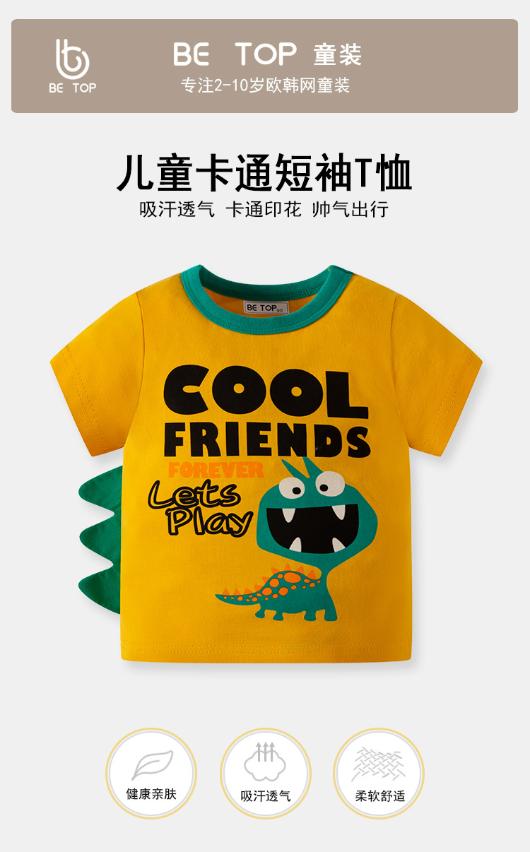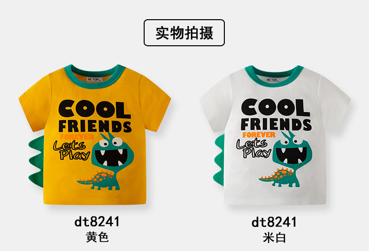 Camiseta de Manga Corta para Niños, Verano 2025, Diseño de Dinosaurio de Dibujos Animados, Cuello Redondo, Algodón Puro, Estilo Coreano, Ropa Infantil al por Mayor