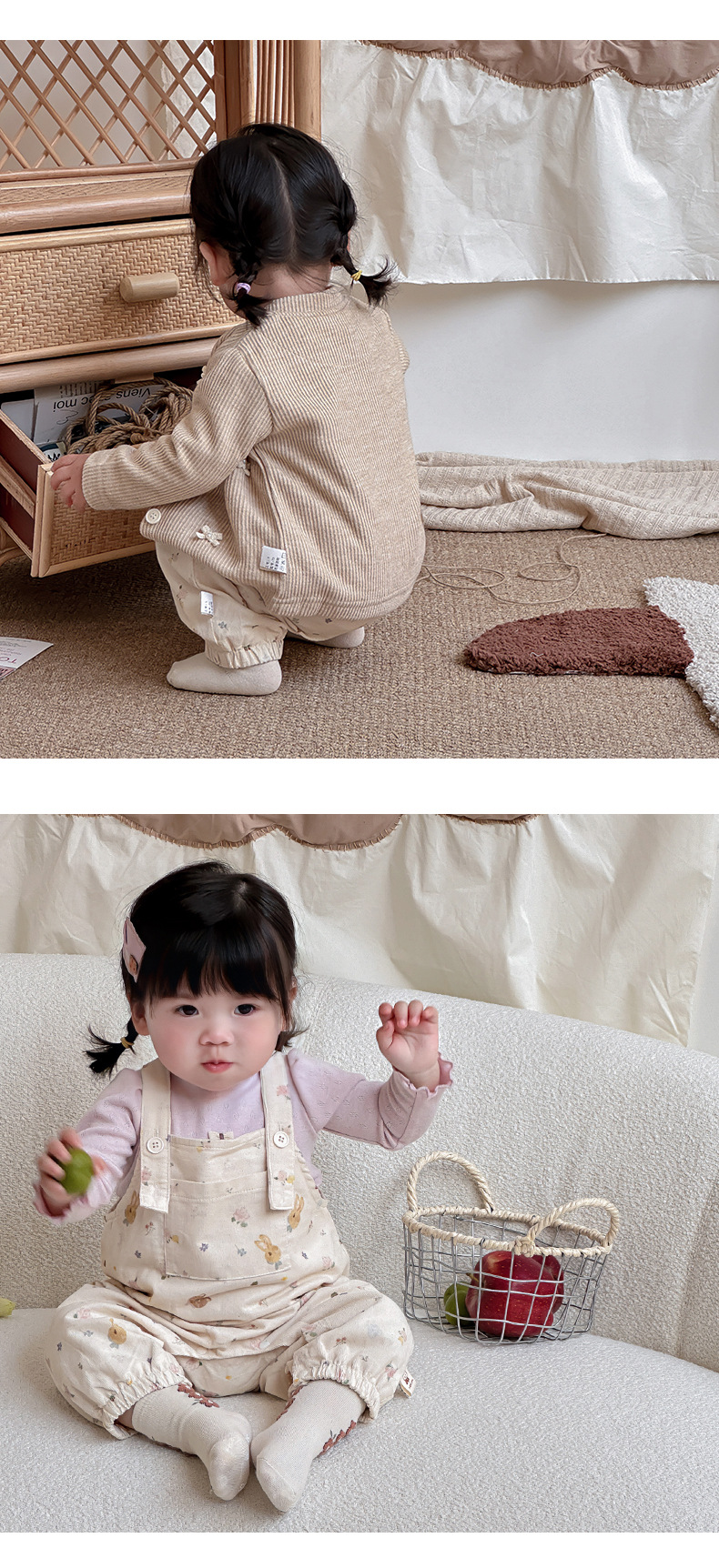 2024 traje de bebé de otoño traje de salida floral nórdico camisa de fondo de bebé femenino mono traje de dos piezas para niños pequeños Mori