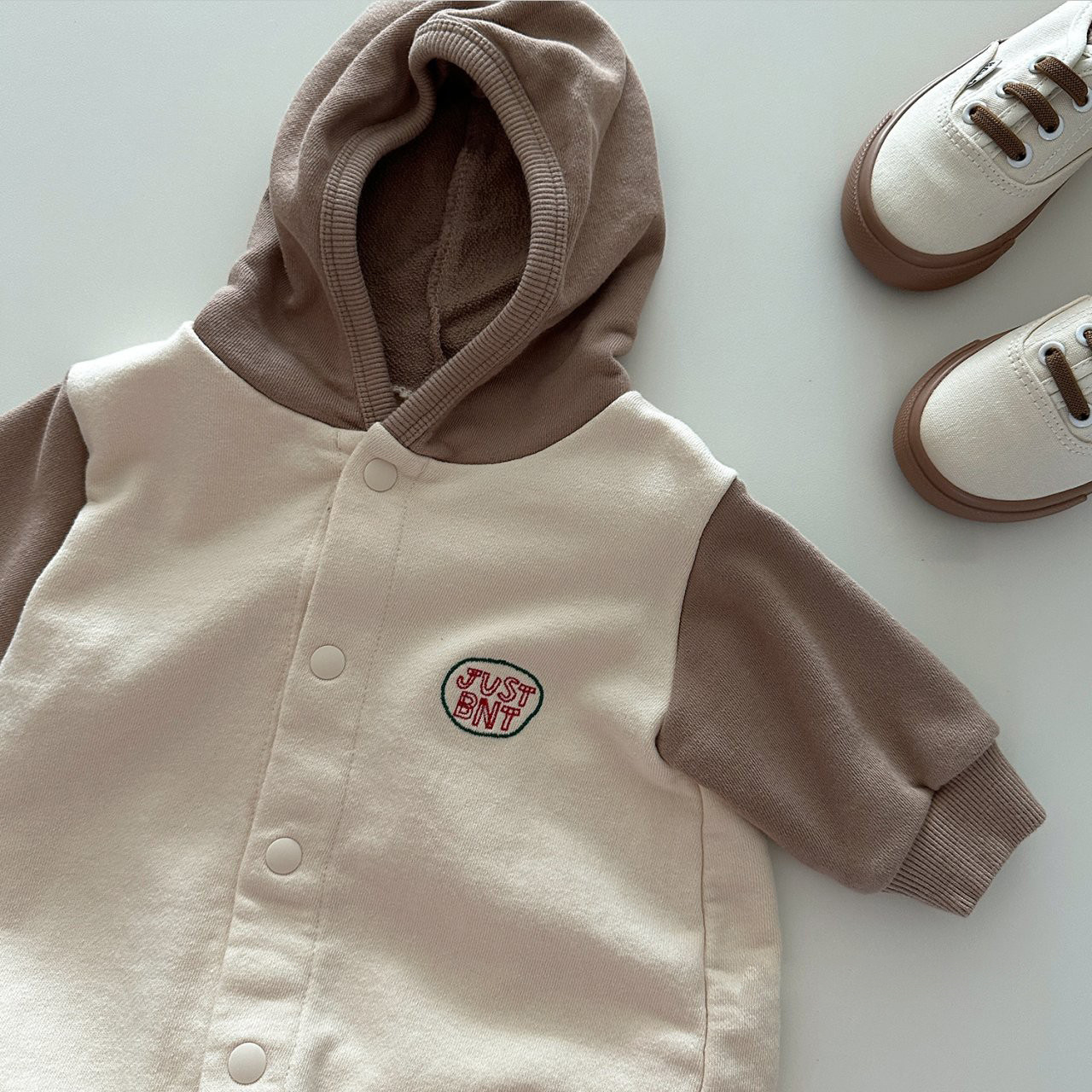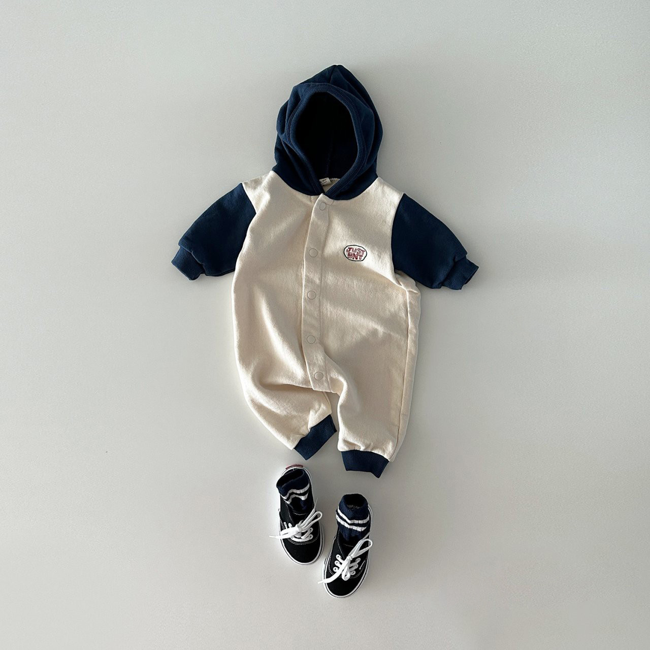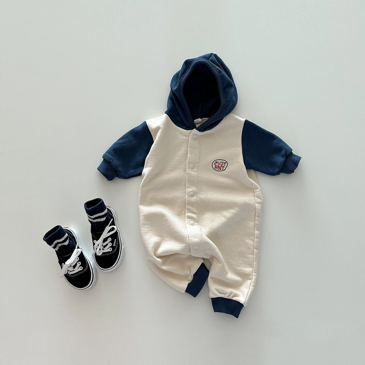 INS estilo coreano otoño hombres y mujeres bebé de algodón con capucha color a juego suéter de una pieza abrigo mameluco casual escalada larga