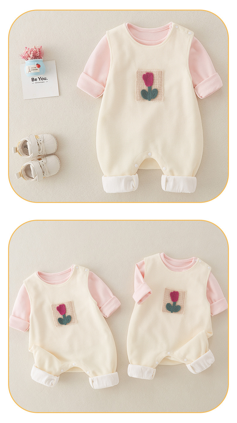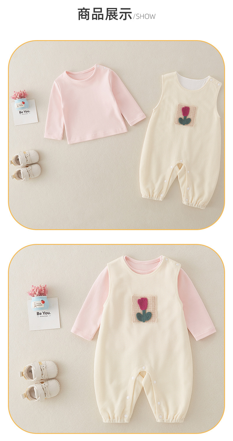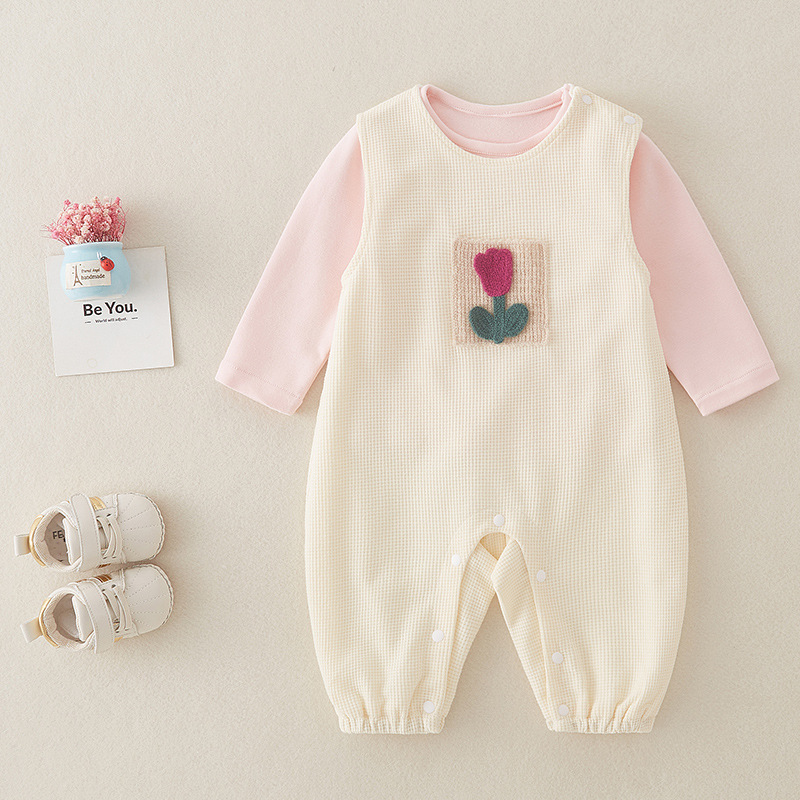 Traje de una pieza para bebé, top rosa para bebés y niños pequeños con tirantes de flores, pantalones de pedo, mameluco