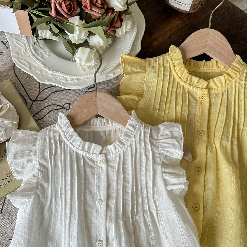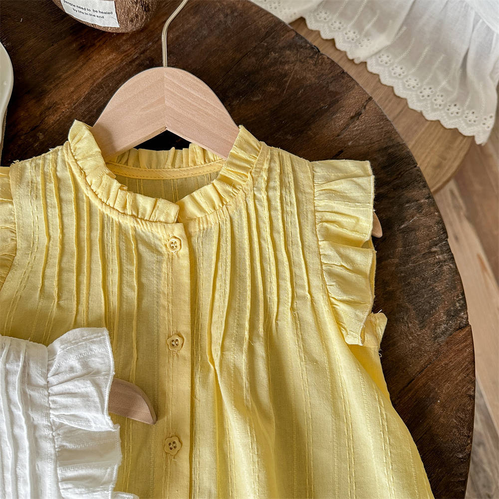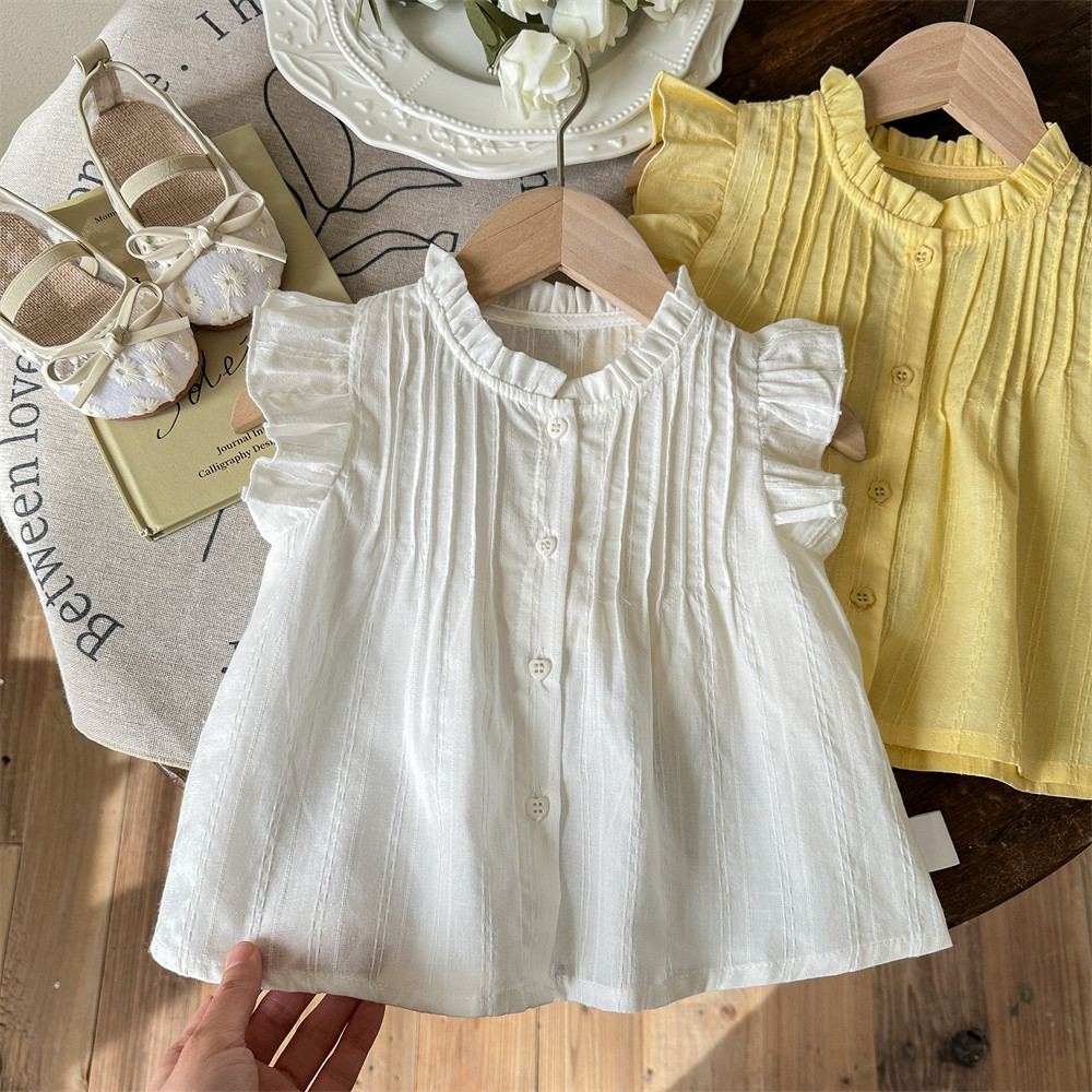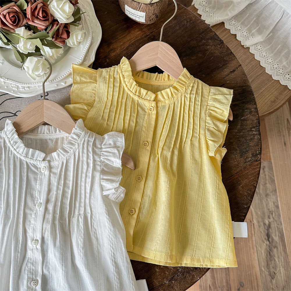 Camisa de bebé de siete niñas de limón salado Camisa sin mangas de verano Camisa de manga voladora del tesoro de las nuevas mujeres Chaleco casual de verano para niños