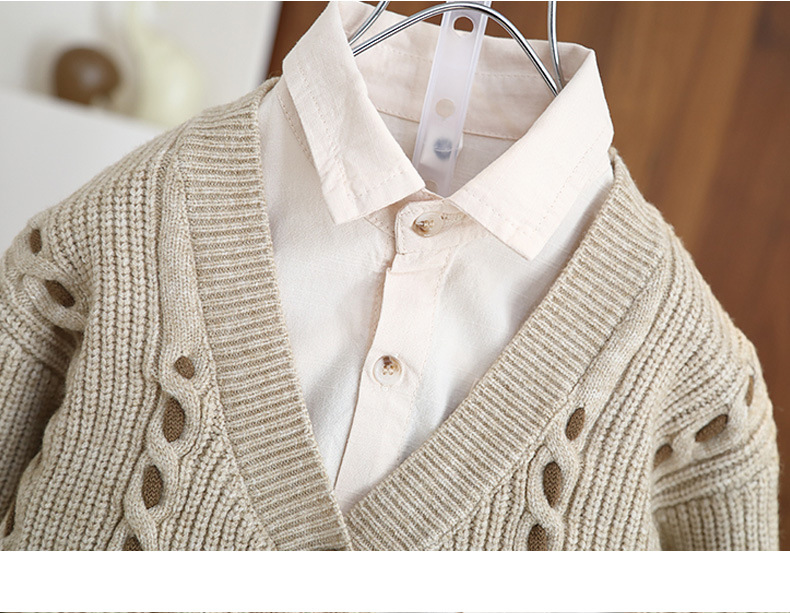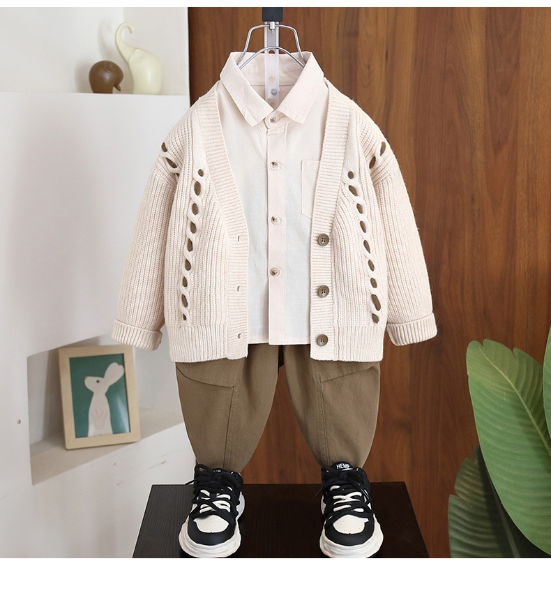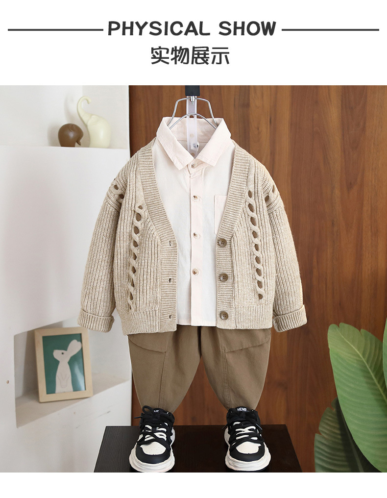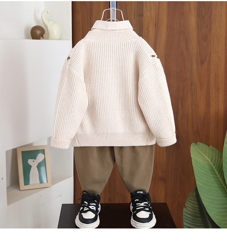 7071 traje de primavera para niños traje de tres piezas 2025 primavera y otoño nuevo estilo chaqueta de punto atractivo para niños bebé
