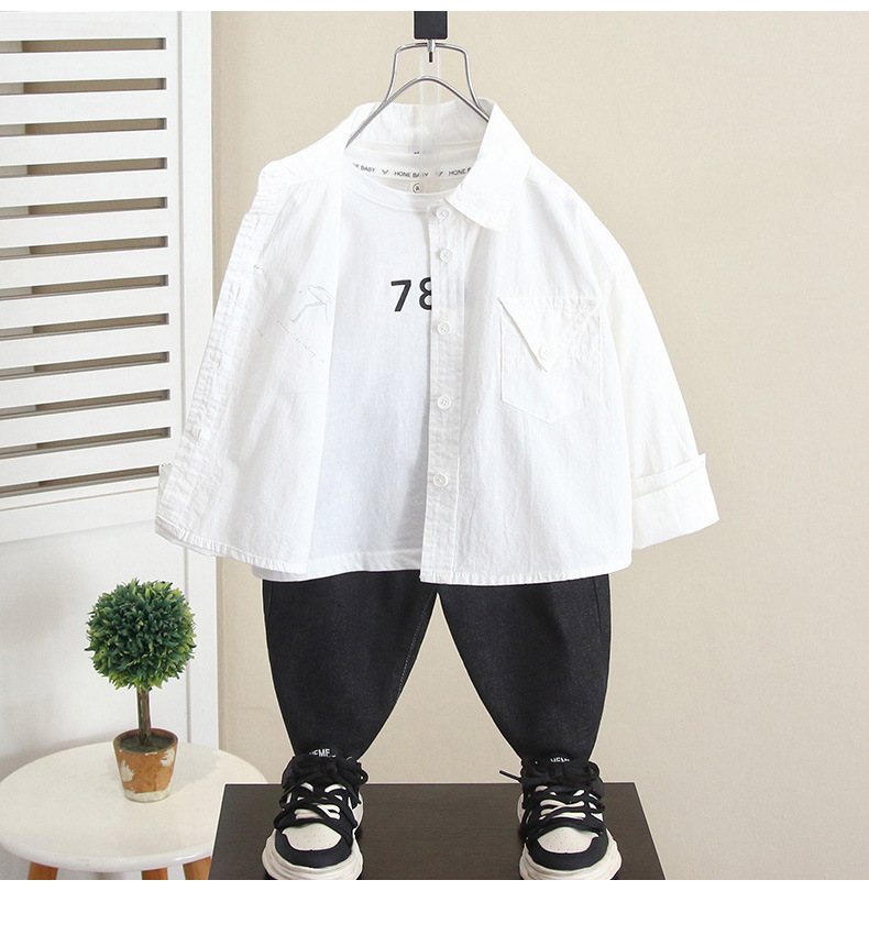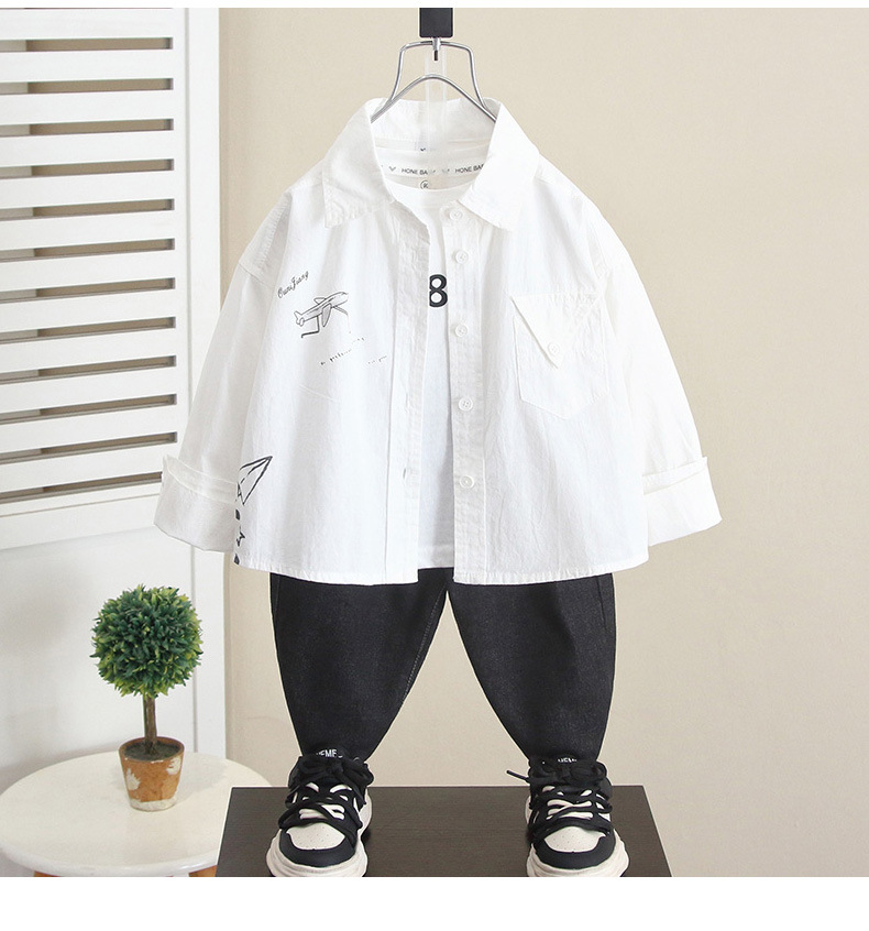 6267 Camisa de manga larga de otoño para niños 2025 Nuevo estilo de primavera y otoño para niños Camisa de estilo occidental Chaqueta de otoño para niños