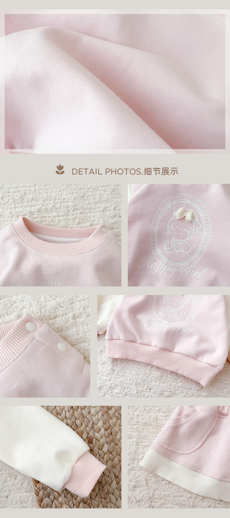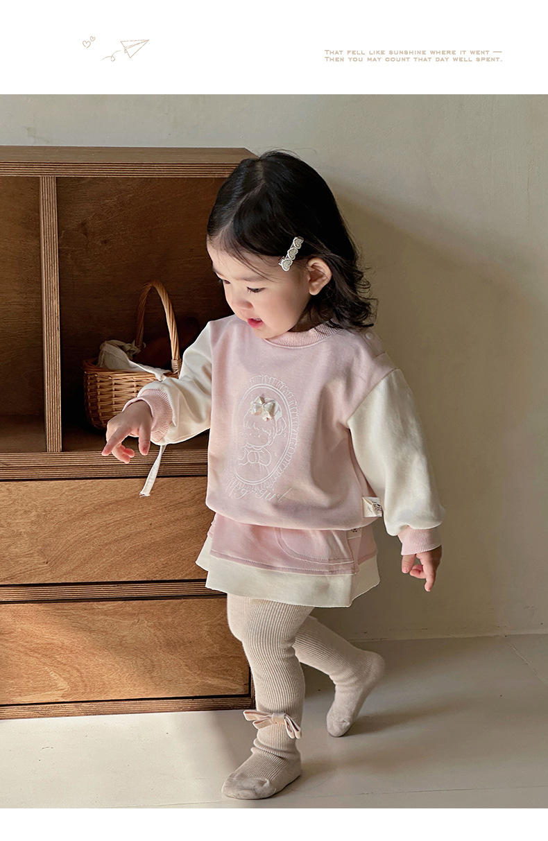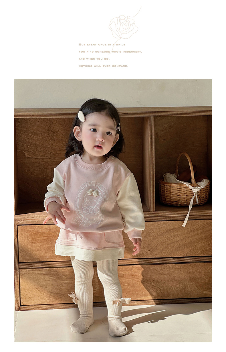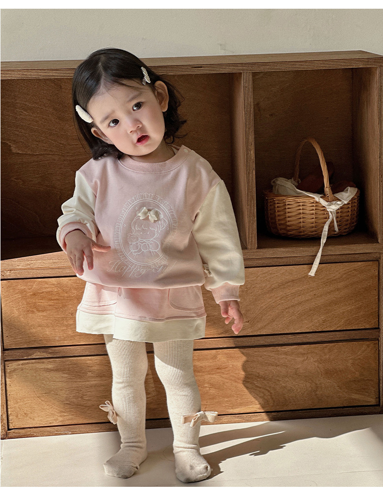 Versión coreana del nuevo producto de la primavera de 2025, traje de bebé, suéter de lazo de Barbie de dibujos animados, traje de dos piezas