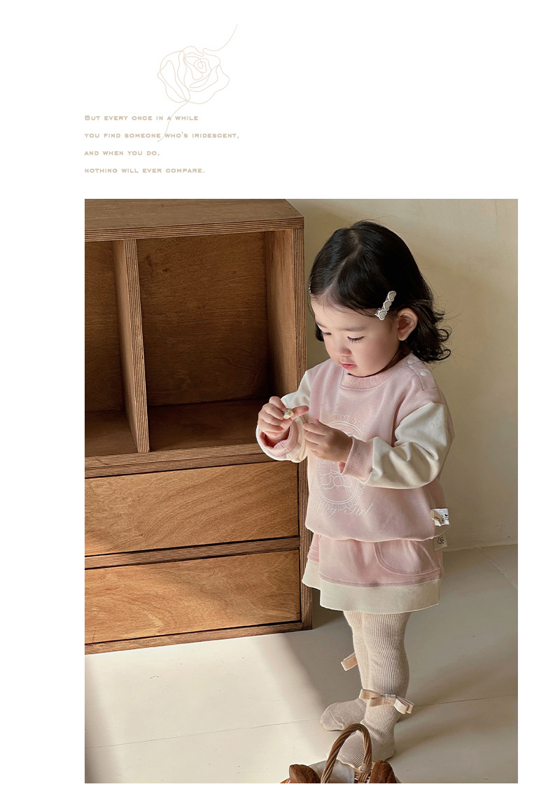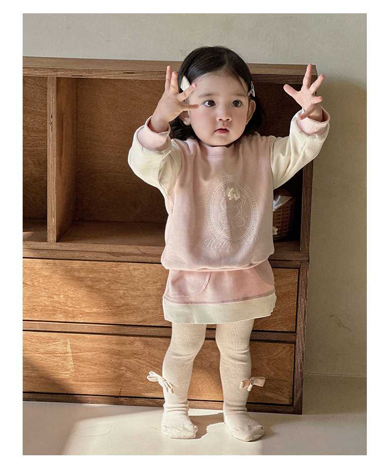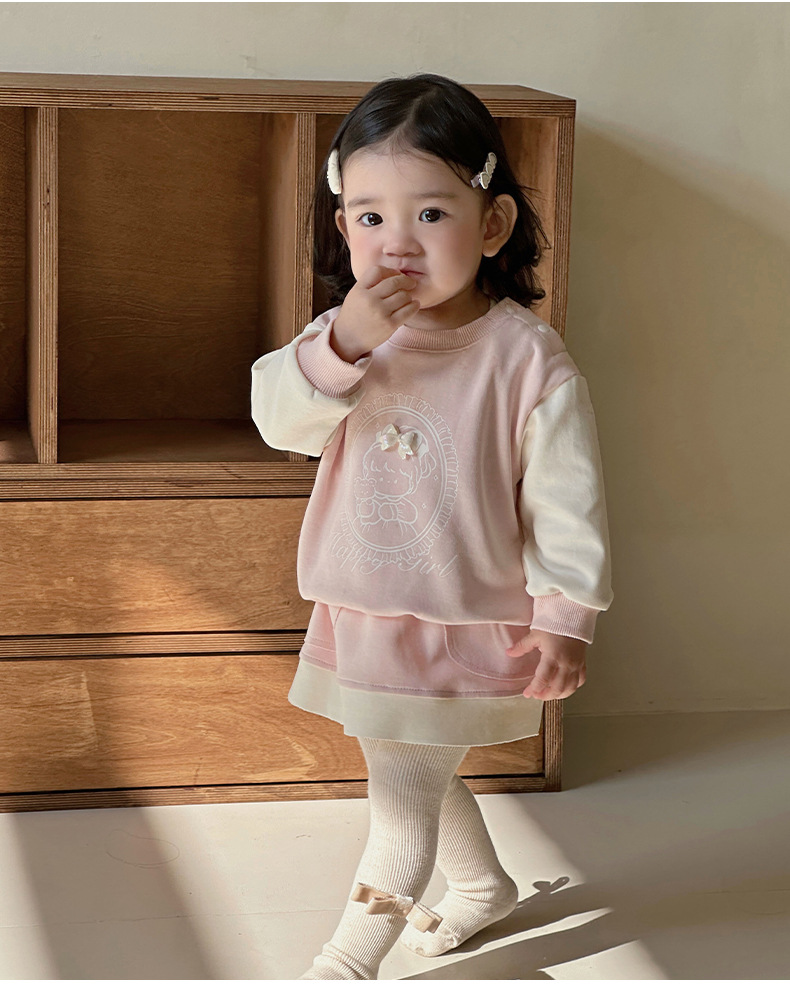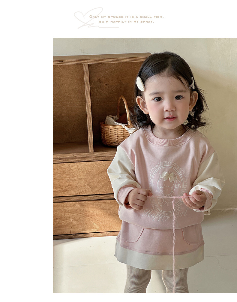 Versión coreana del nuevo producto de la primavera de 2025, traje de bebé, suéter de lazo de Barbie de dibujos animados, traje de dos piezas