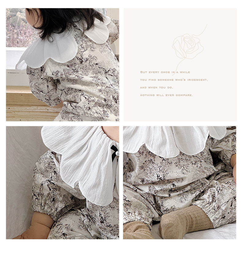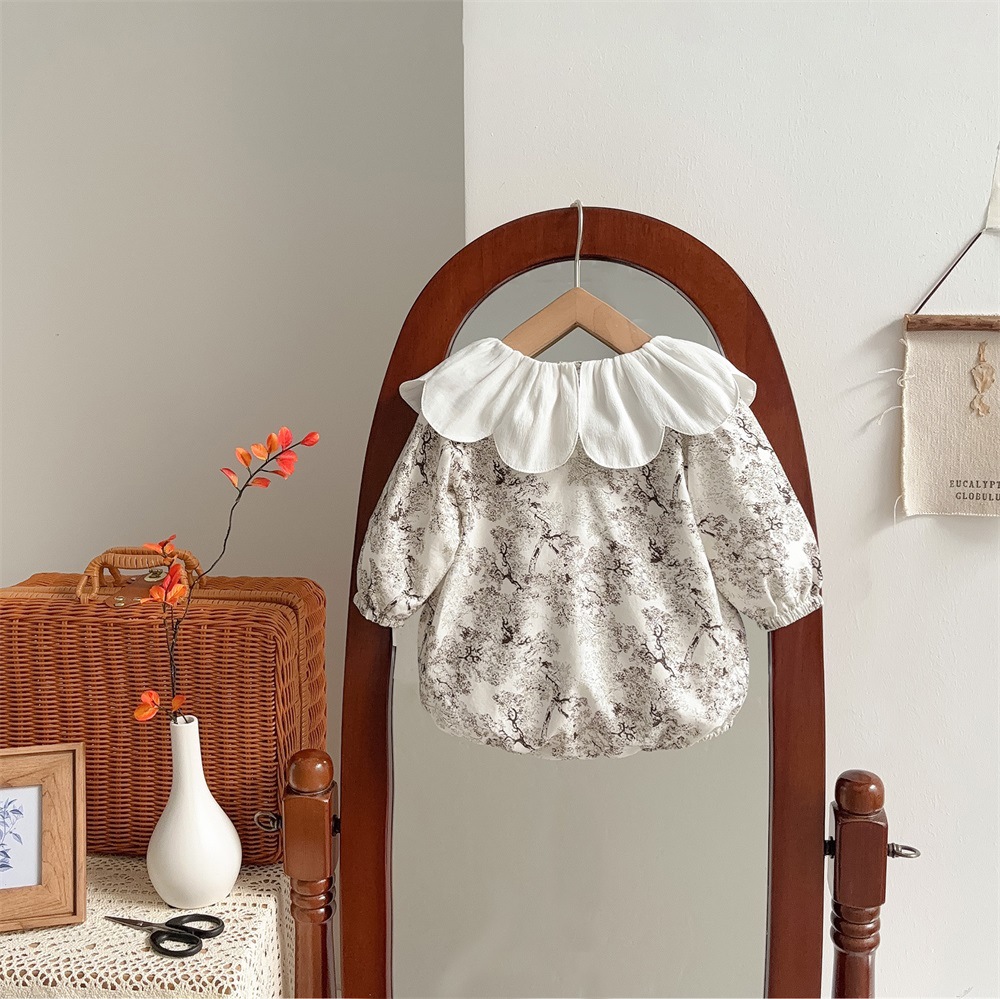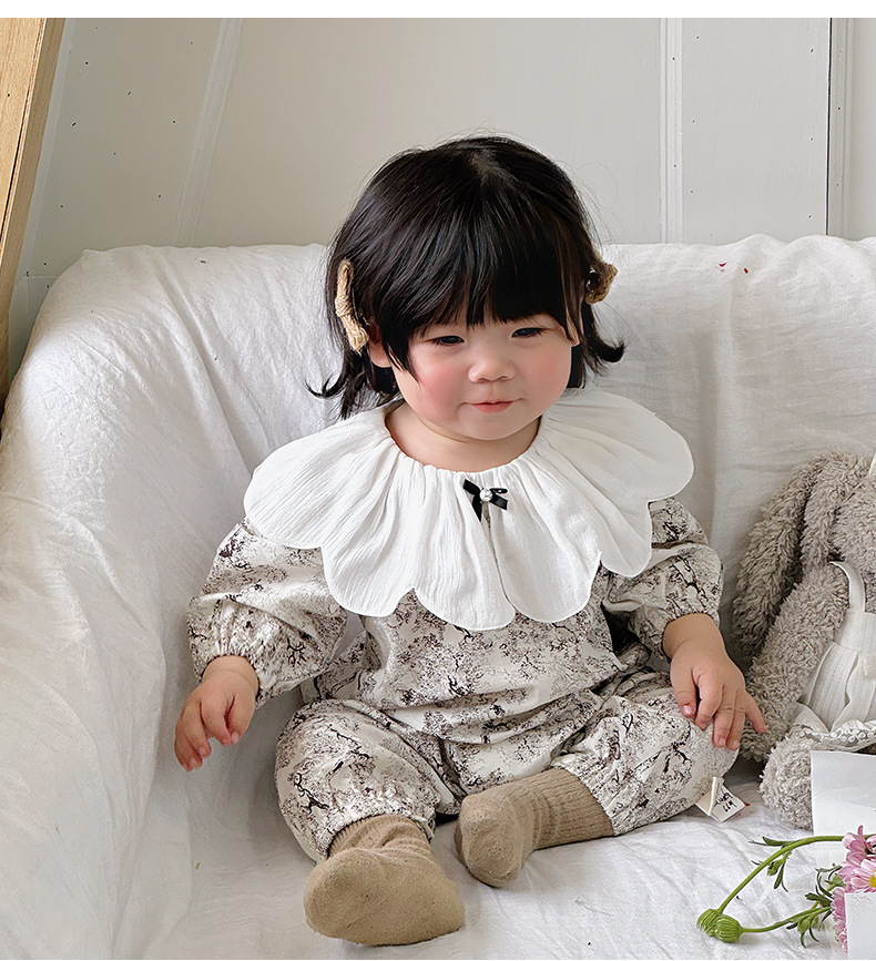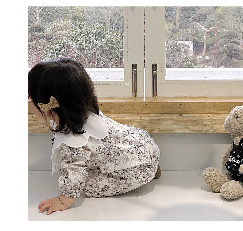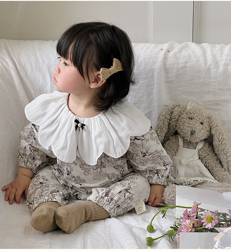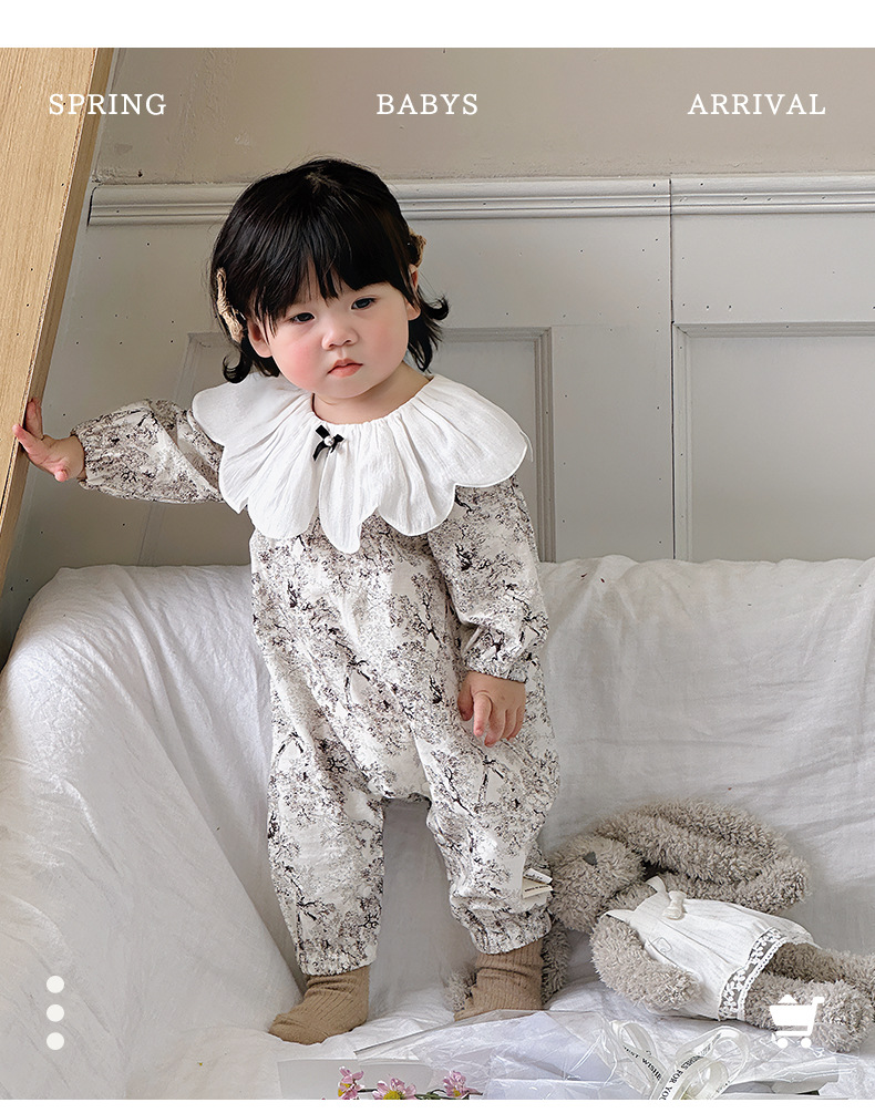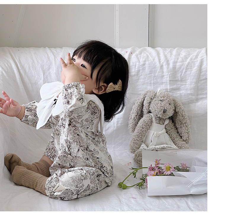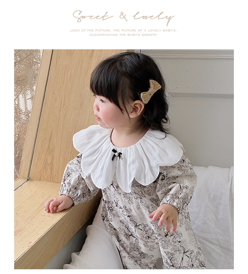 Primavera y otoño bebé mono bebé pétalo solapa mameluco fuera traje de escalada recién nacido ropa de primavera tesoro femenino ropa de primavera