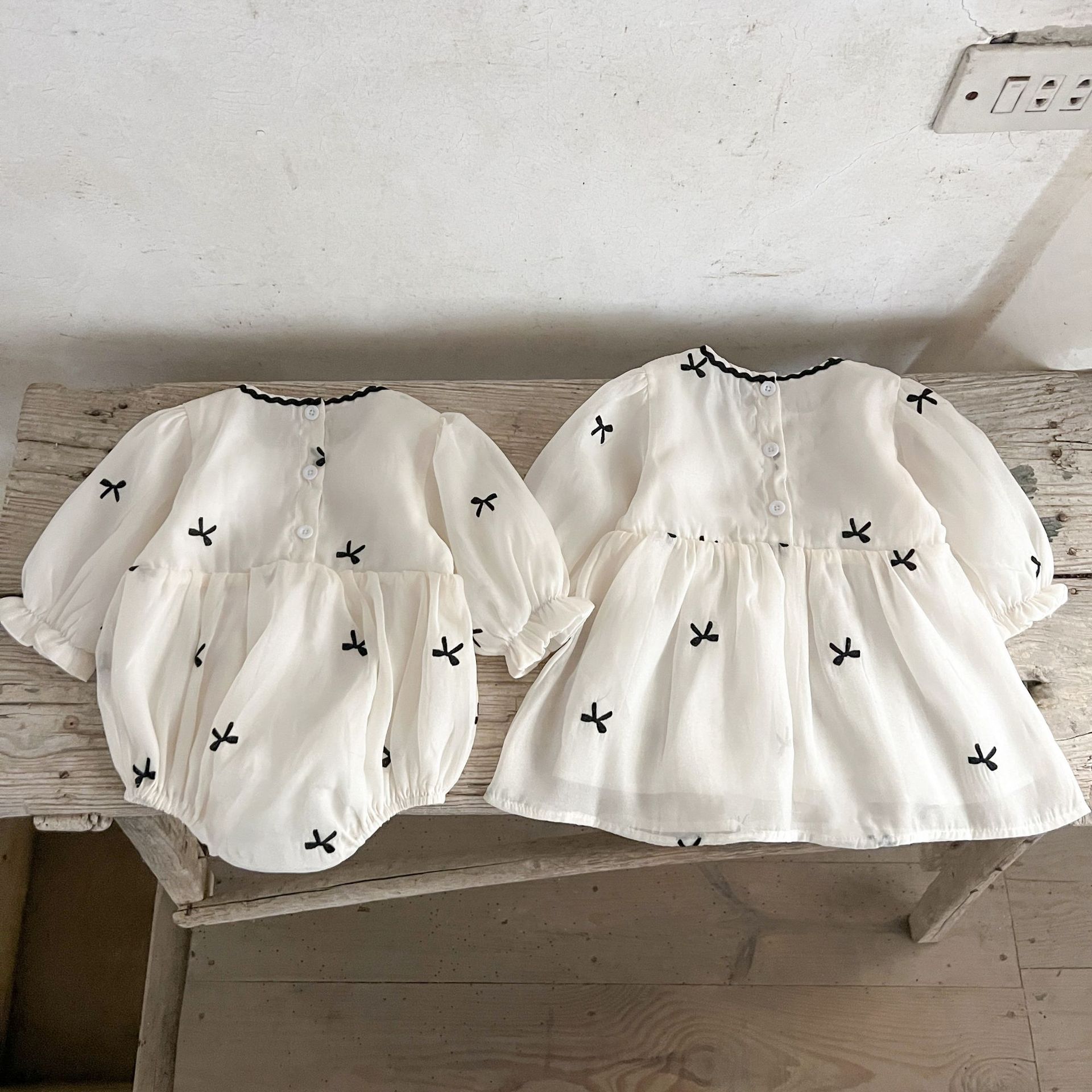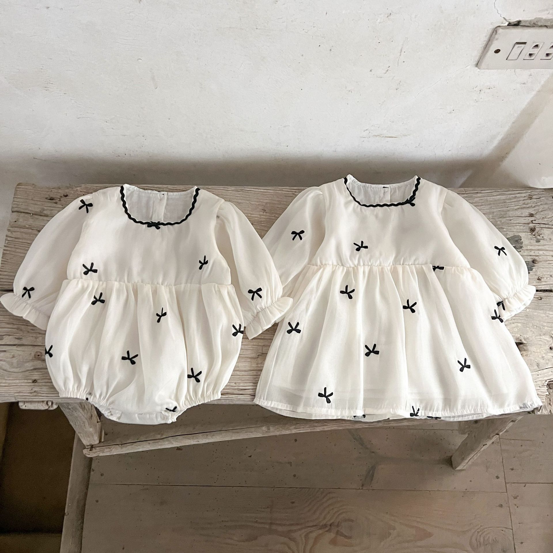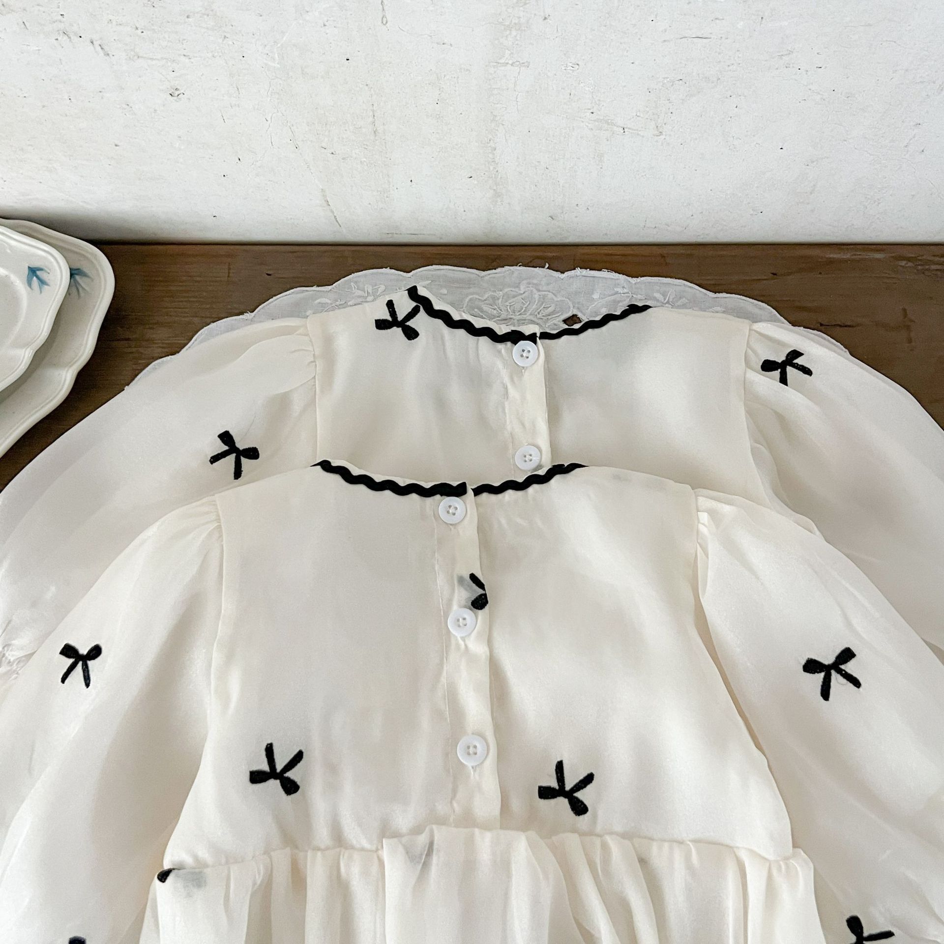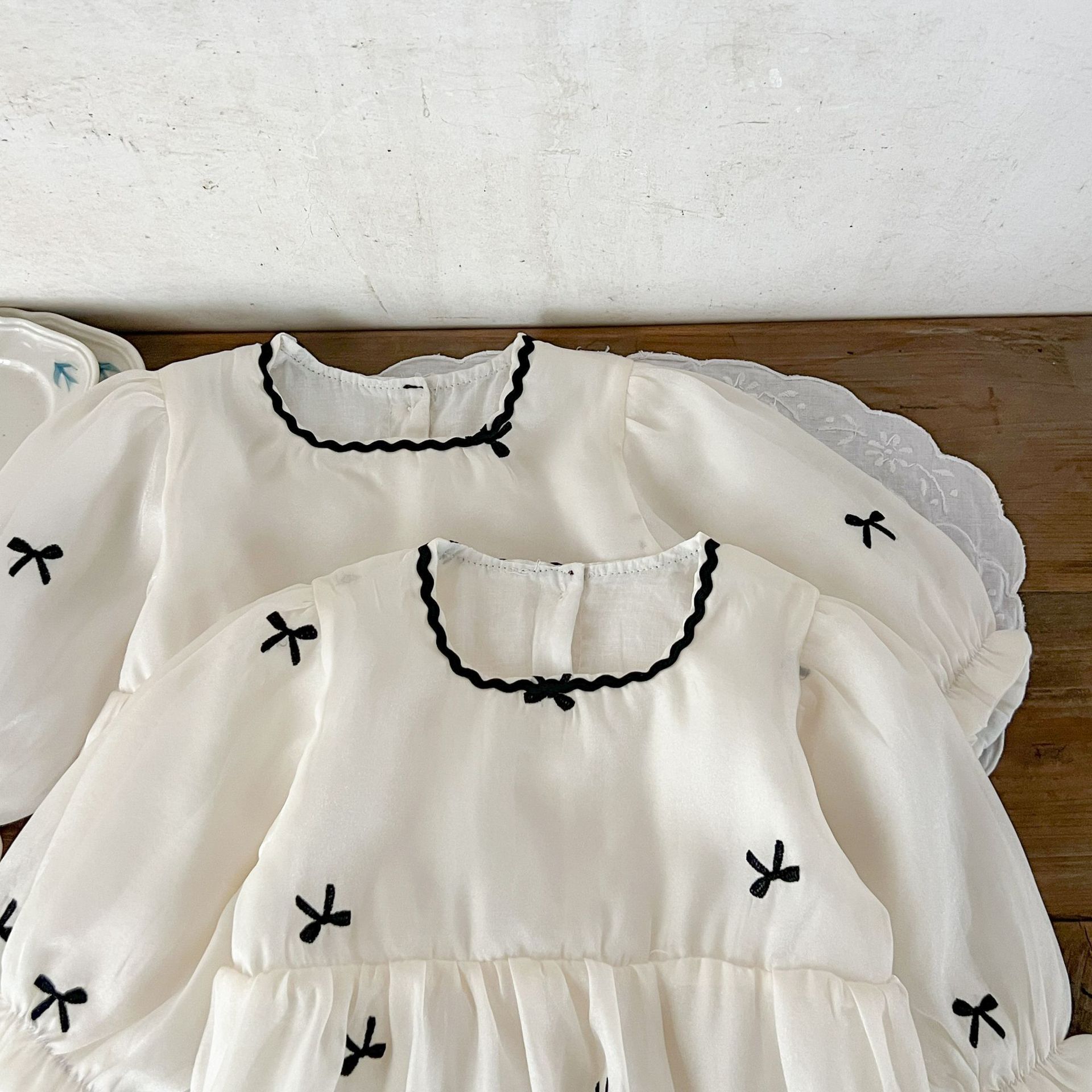 Ins versión coreana del nuevo vestido de otoño para niñas, vestido de malla de princesa de estilo extranjero, vestido de pedo con lazo recién nacido