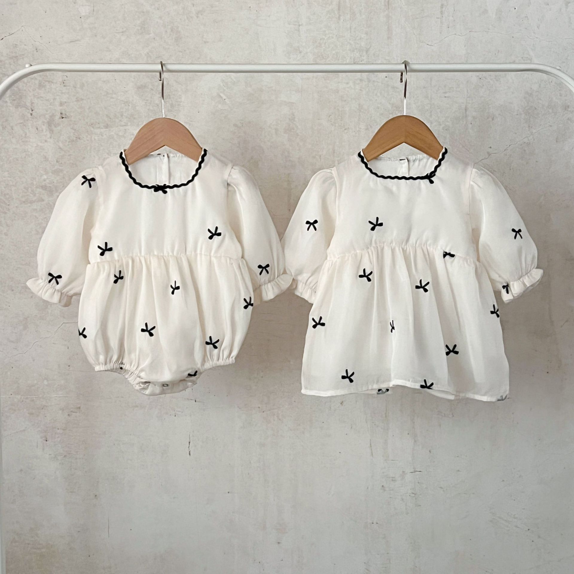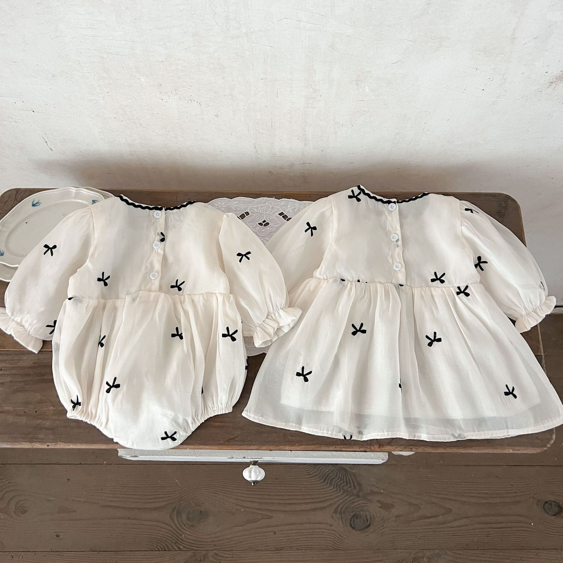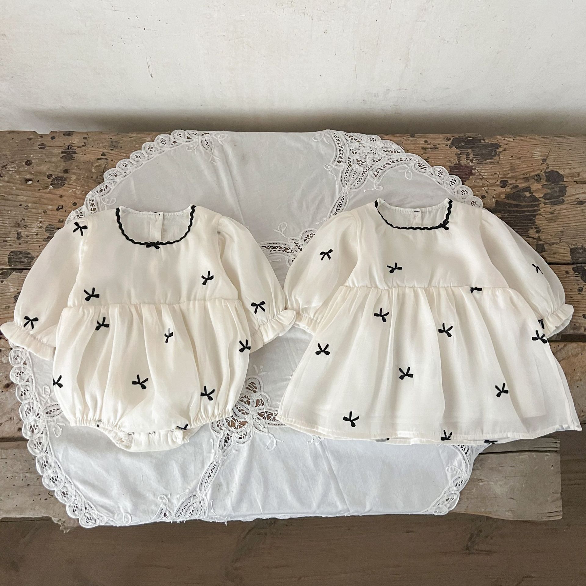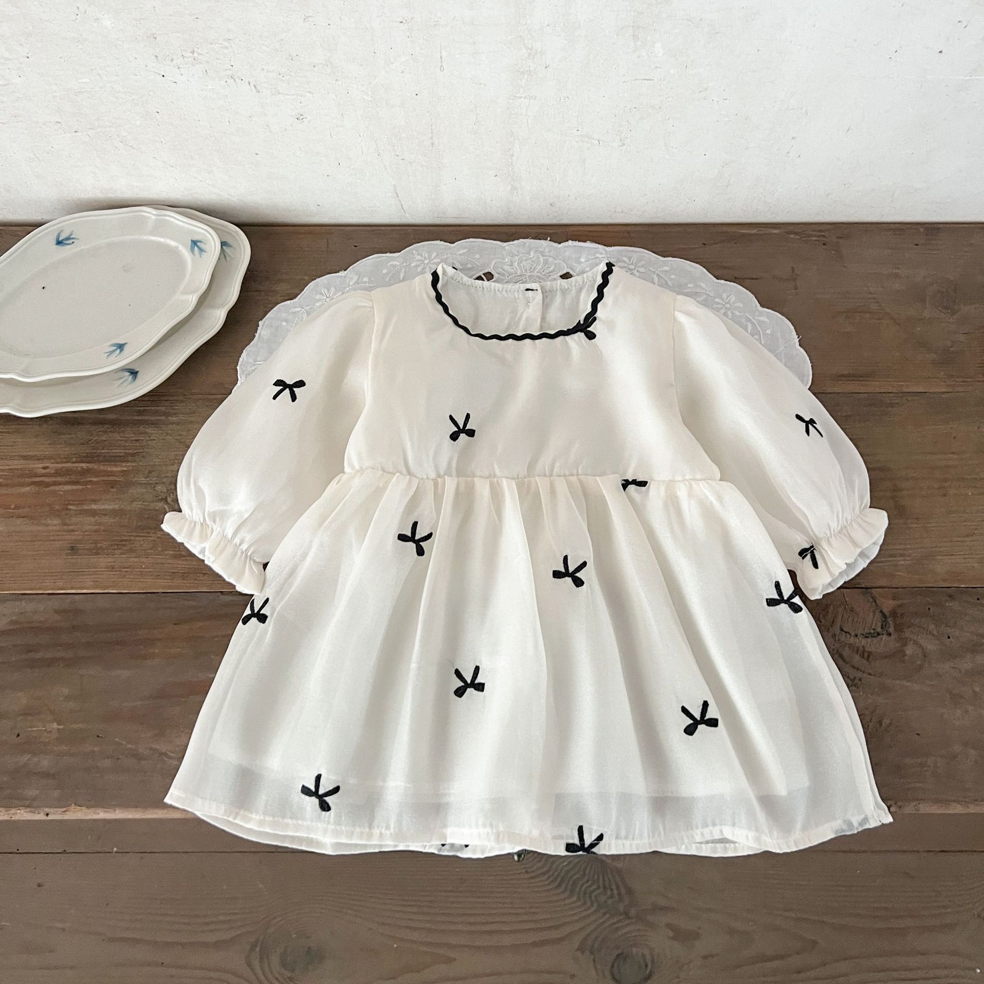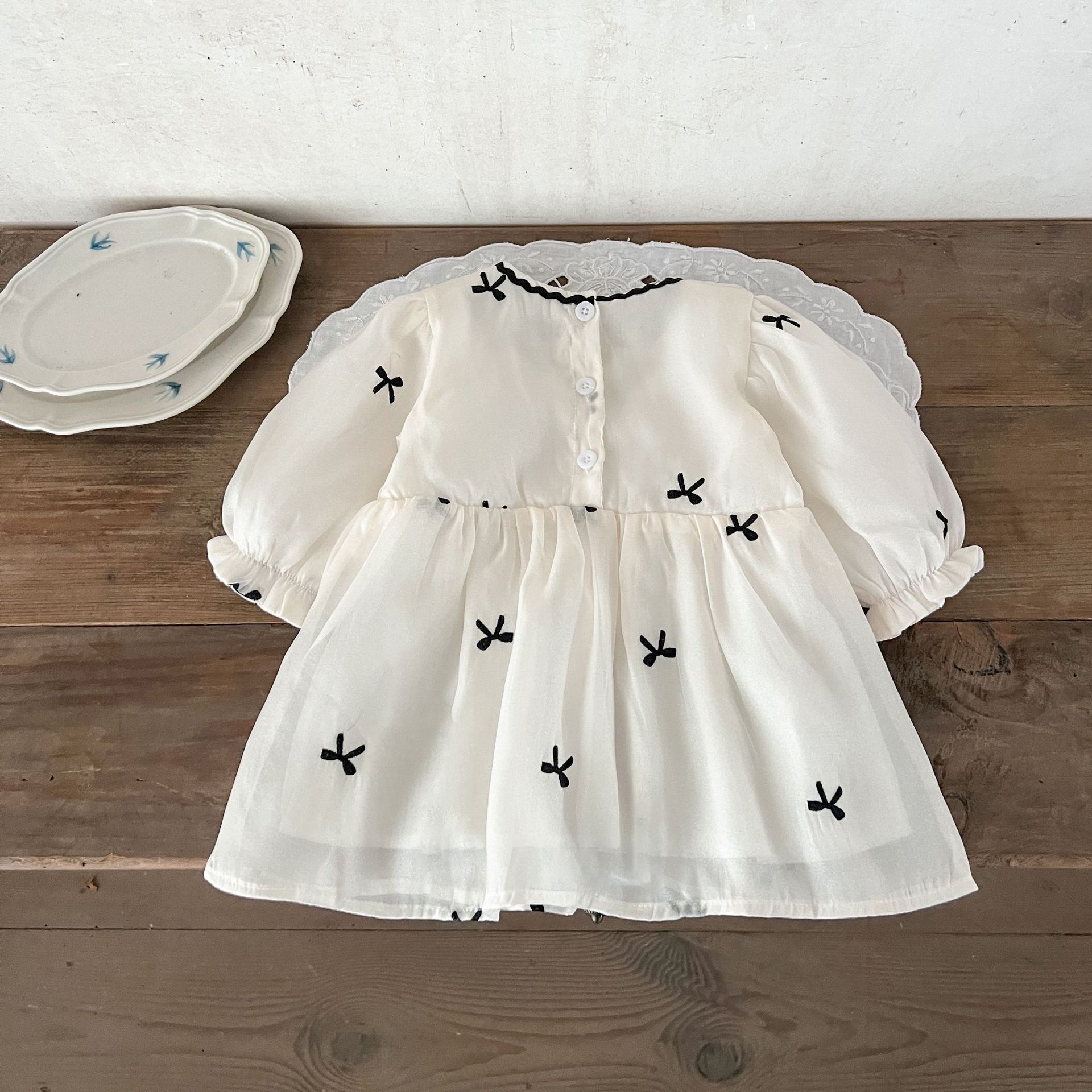 Ins versión coreana del nuevo vestido de otoño para niñas, vestido de malla de princesa de estilo extranjero, vestido de pedo con lazo recién nacido