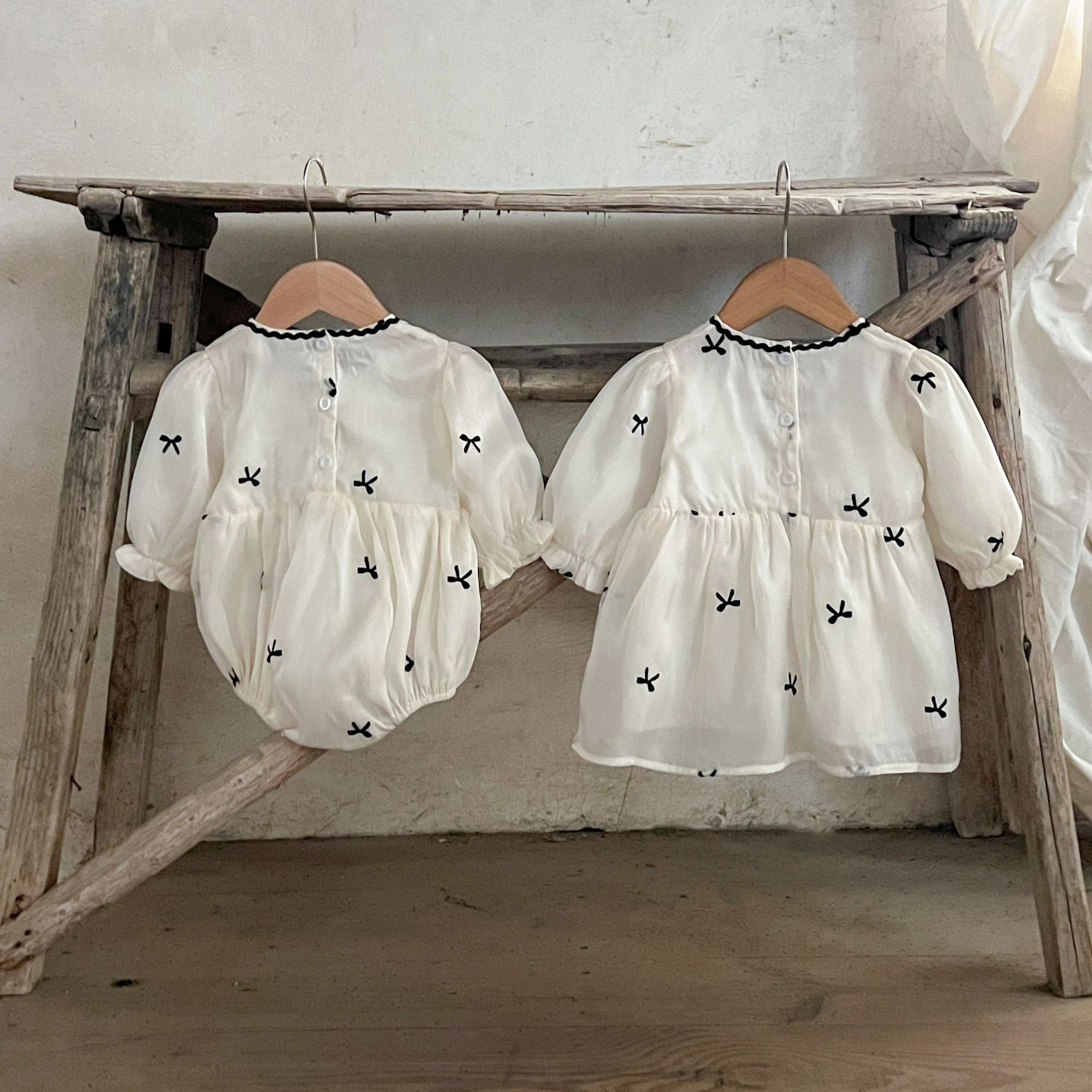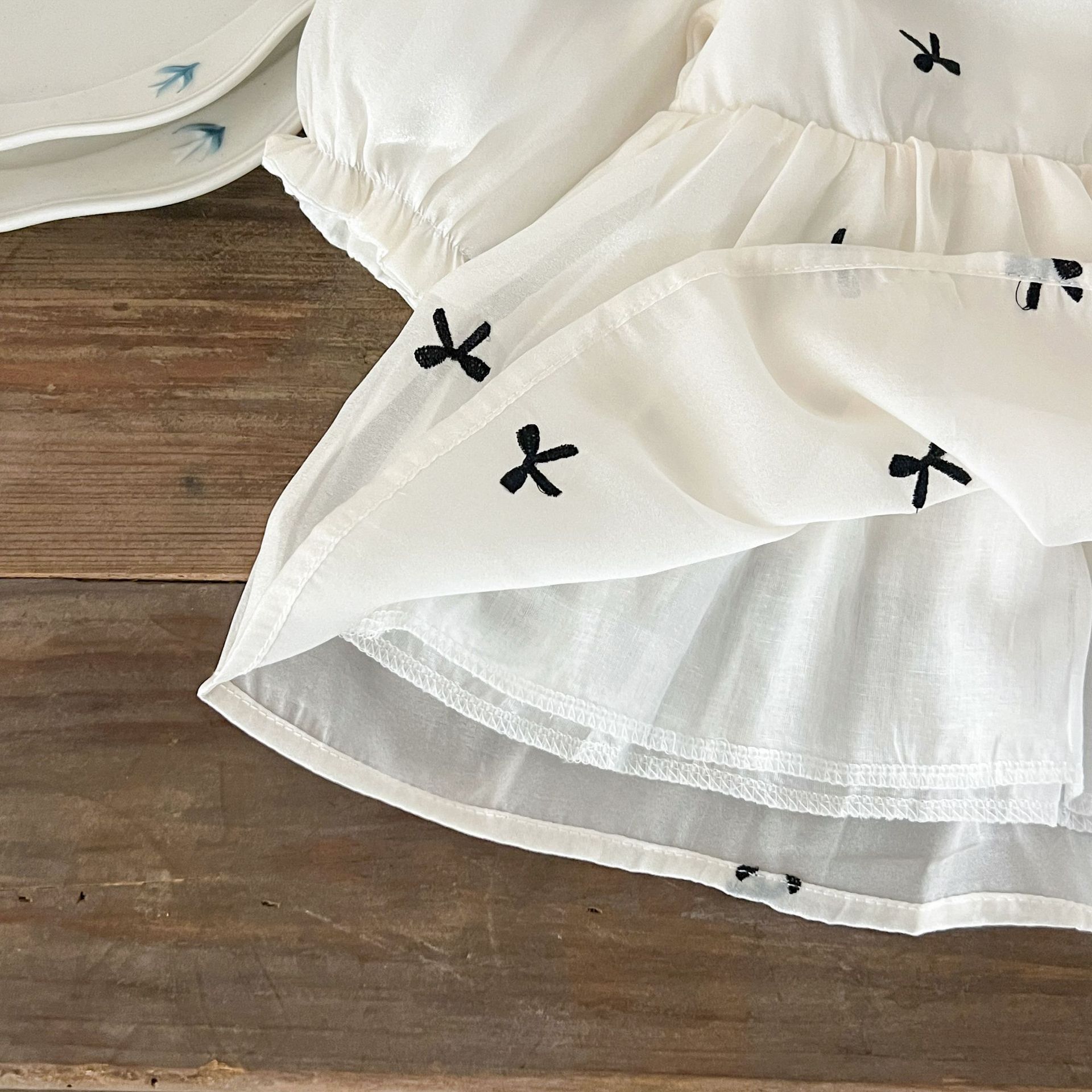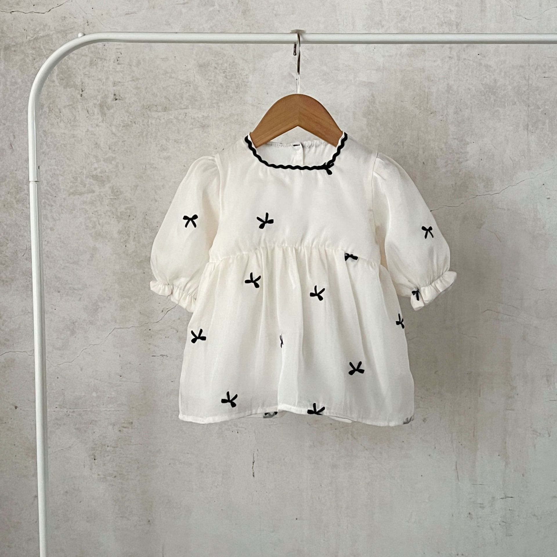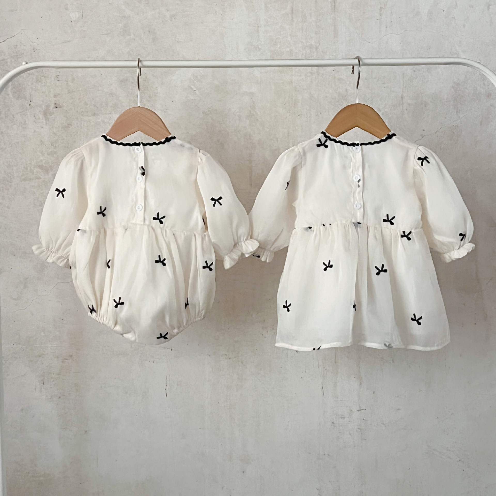 Ins versión coreana del nuevo vestido de otoño para niñas, vestido de malla de princesa de estilo extranjero, vestido de pedo con lazo recién nacido