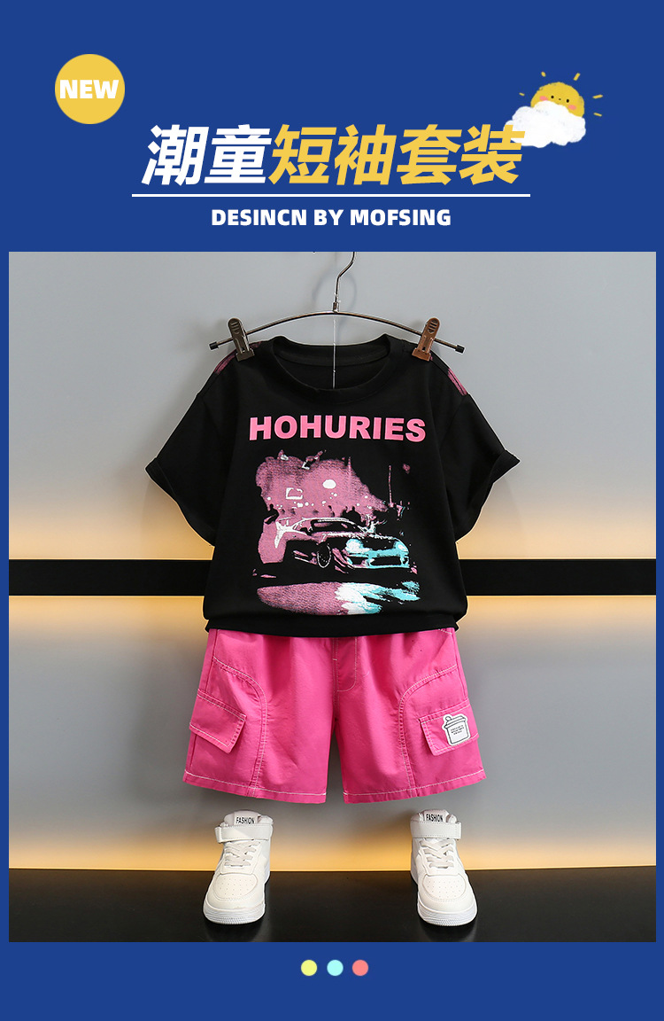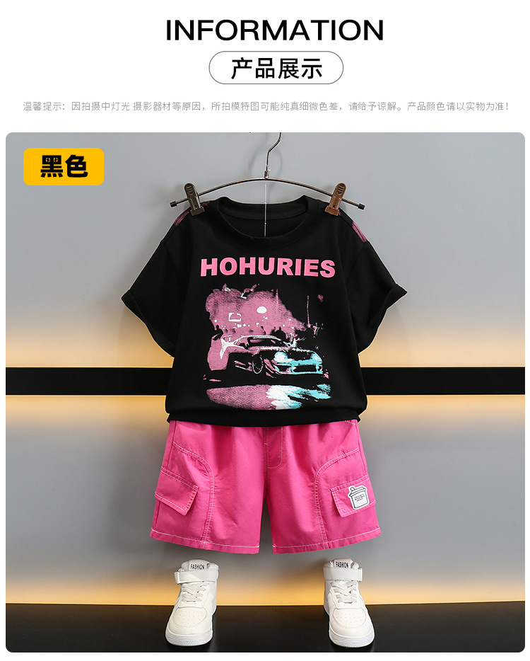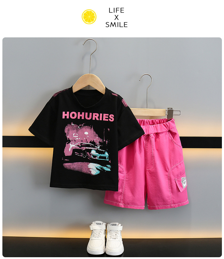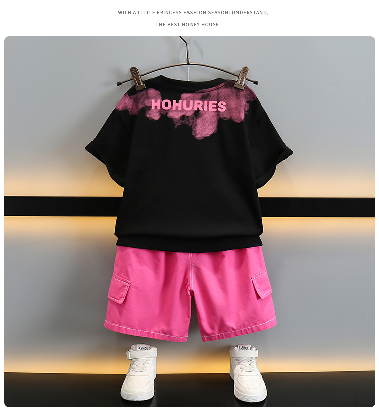 5714 Traje de camiseta con letras para niños 2025 Nuevo estilo Ropa de verano para niños Traje de dos piezas de manga corta de verano para bebés