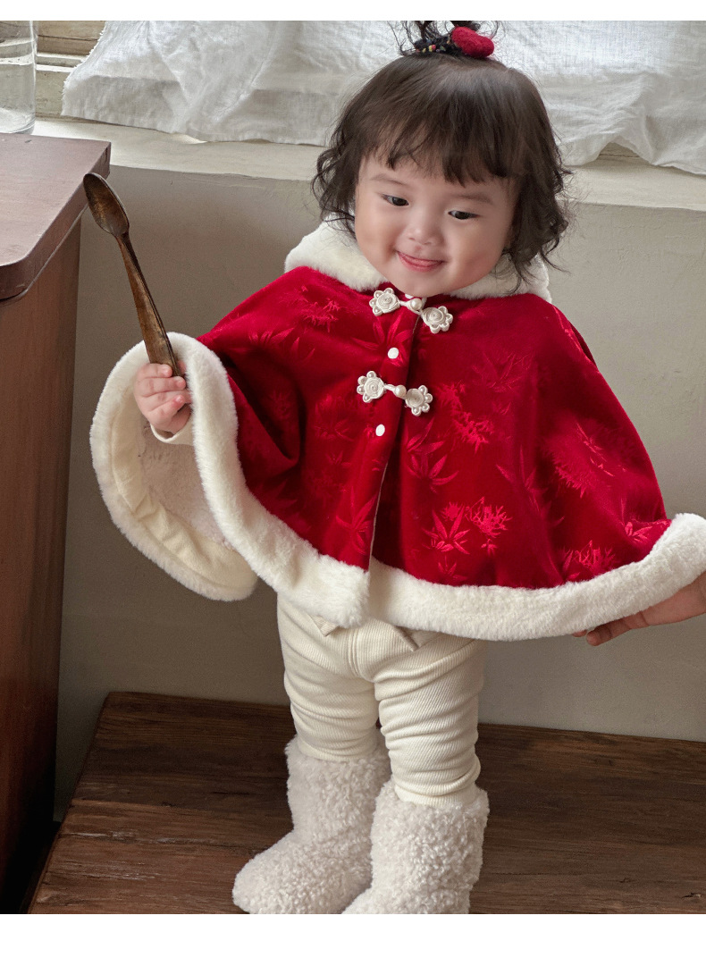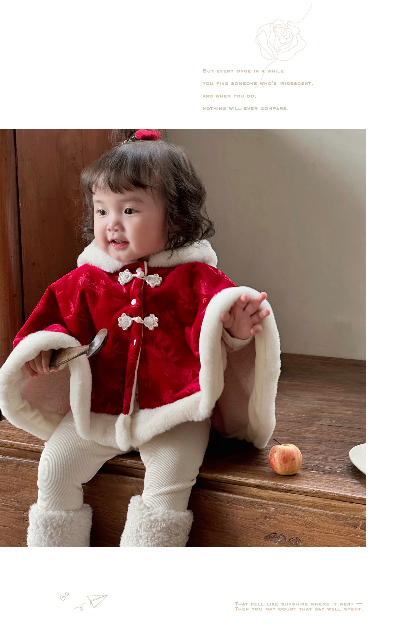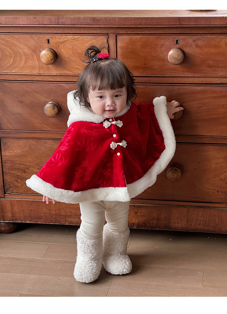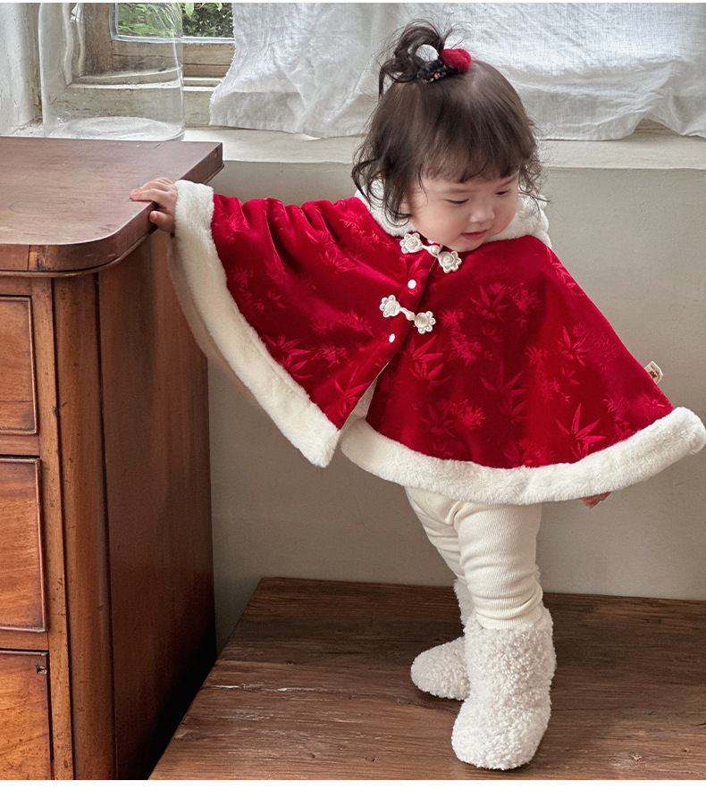 Nueva capa de bebé de estilo chino más terciopelo cálido 0-2 años bebé chaqueta a prueba de viento estilo chino lindo chal 1