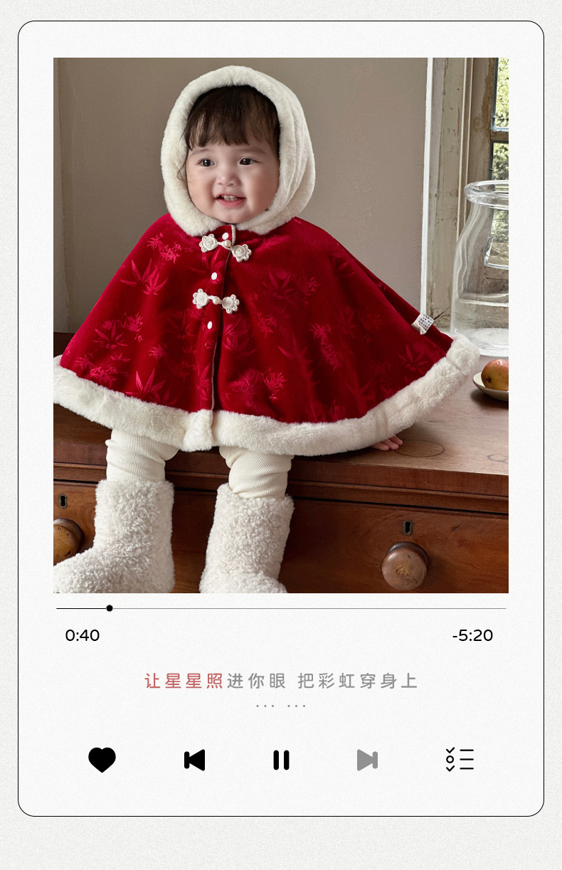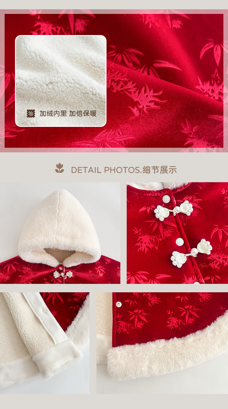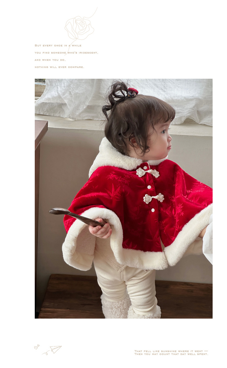 Nueva capa de bebé de estilo chino más terciopelo cálido 0-2 años bebé chaqueta a prueba de viento estilo chino lindo chal 1