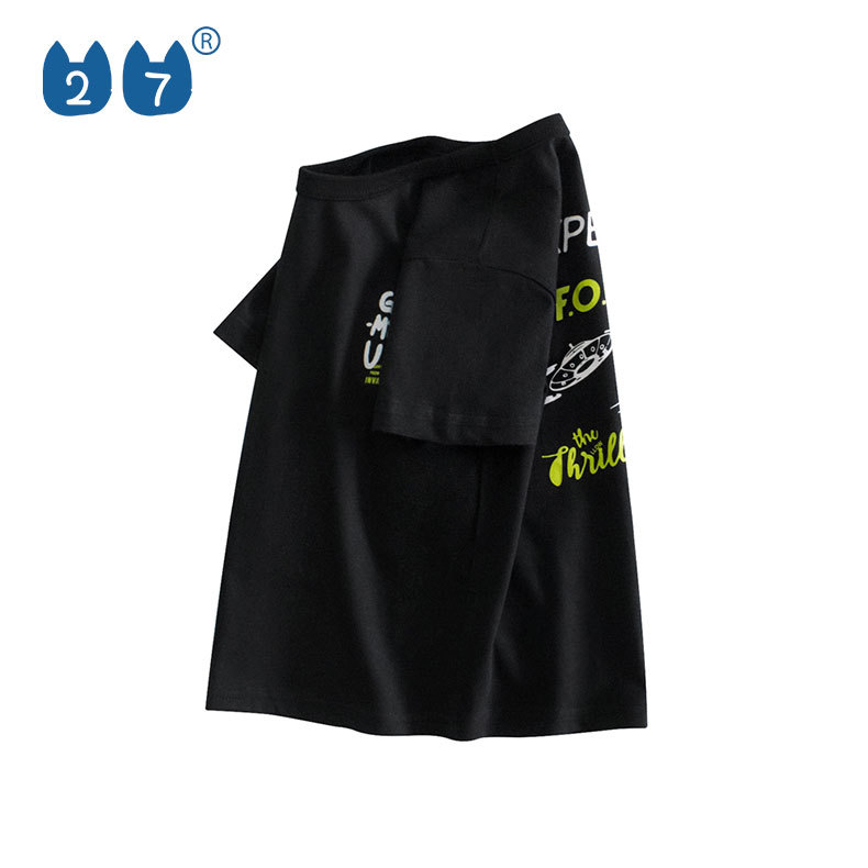 27kids ropa para niños coreanos cuello redondo media manga ropa para niños transfronteriza al por mayor camiseta de manga corta para niños ropa de verano para niños