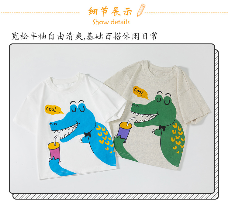 Transfronterizos ropa infantil camiseta de manga corta para niños 2025 verano nuevo cocodrilo chaqueta de dibujos animados para hombres ropa de bebé un cabello