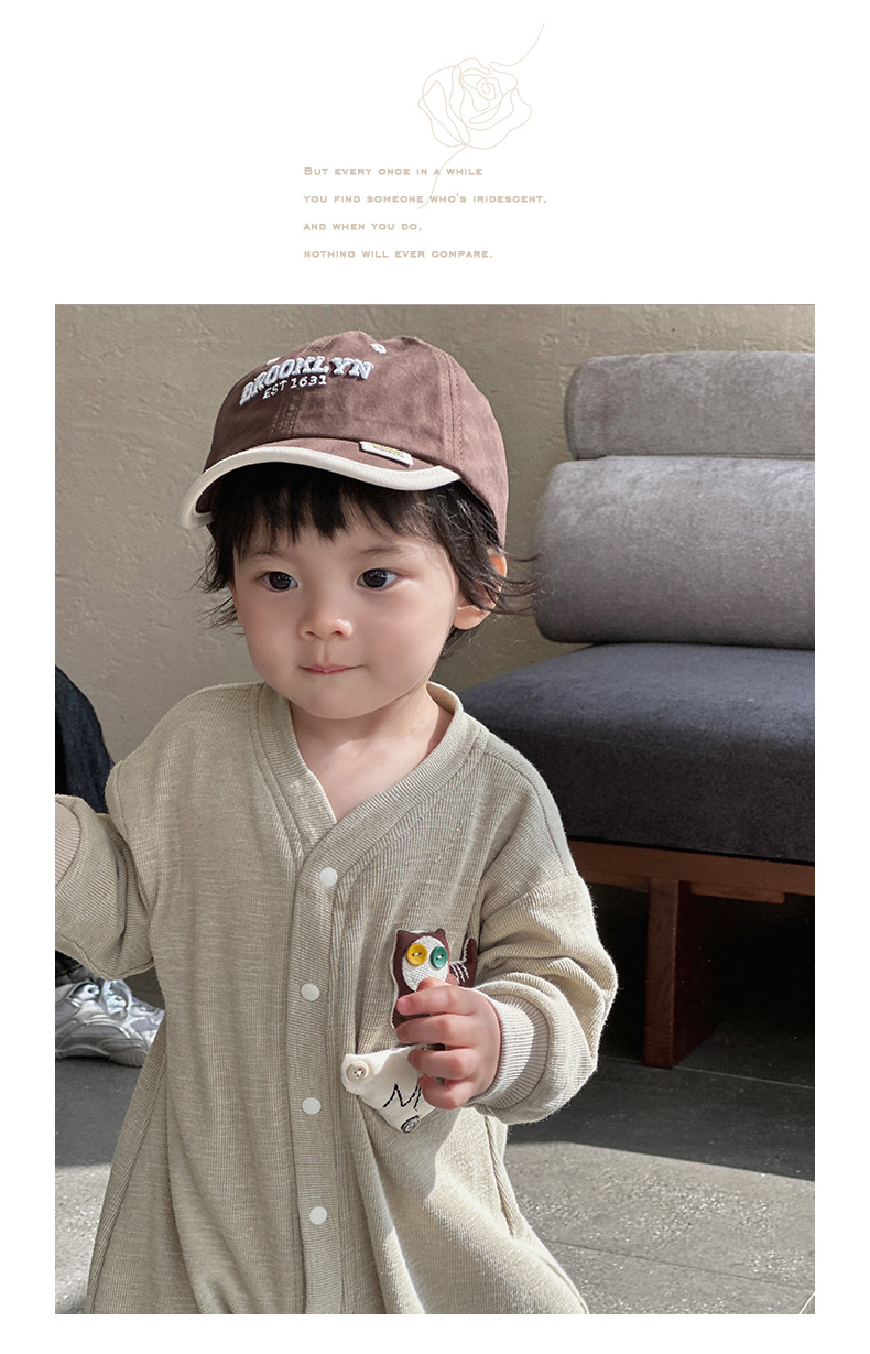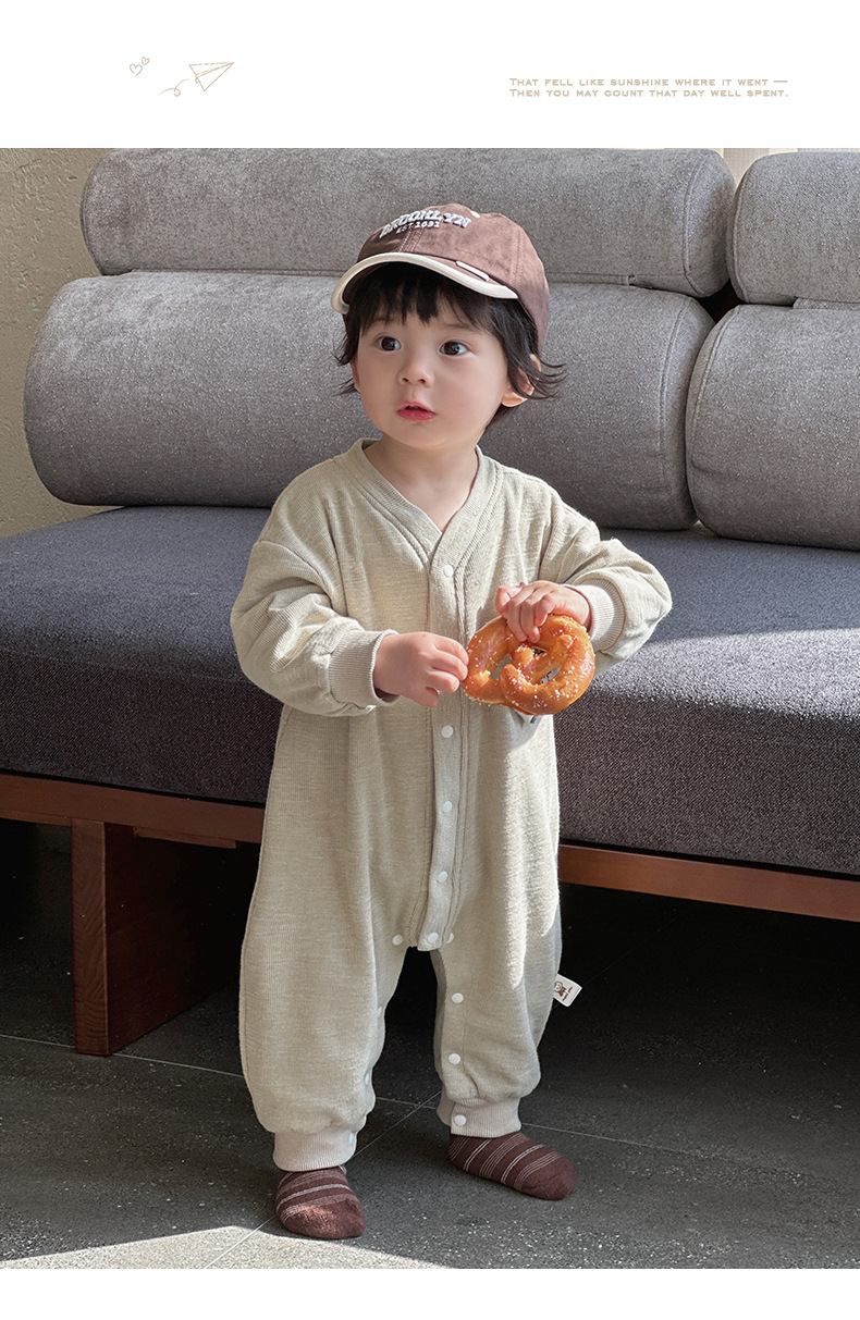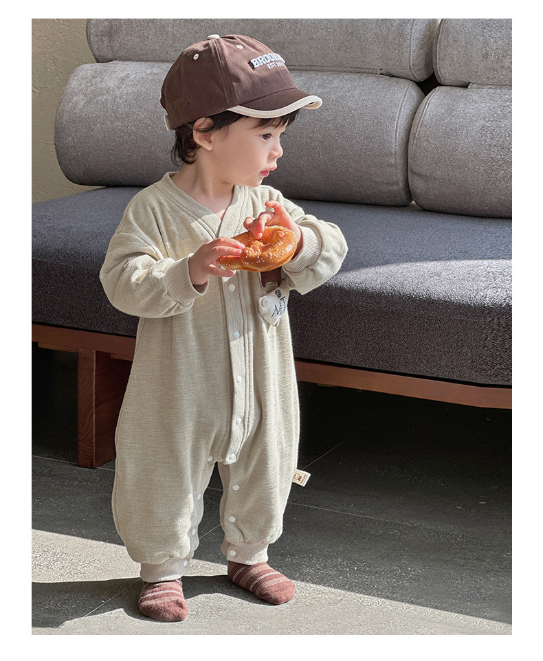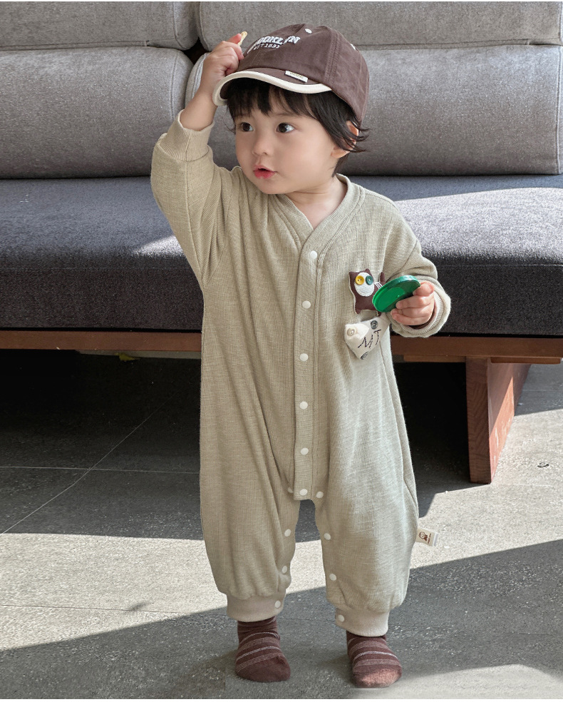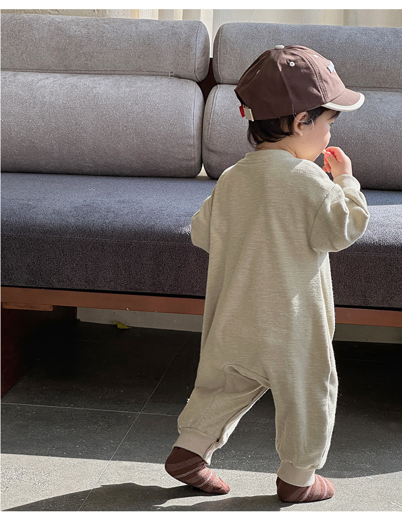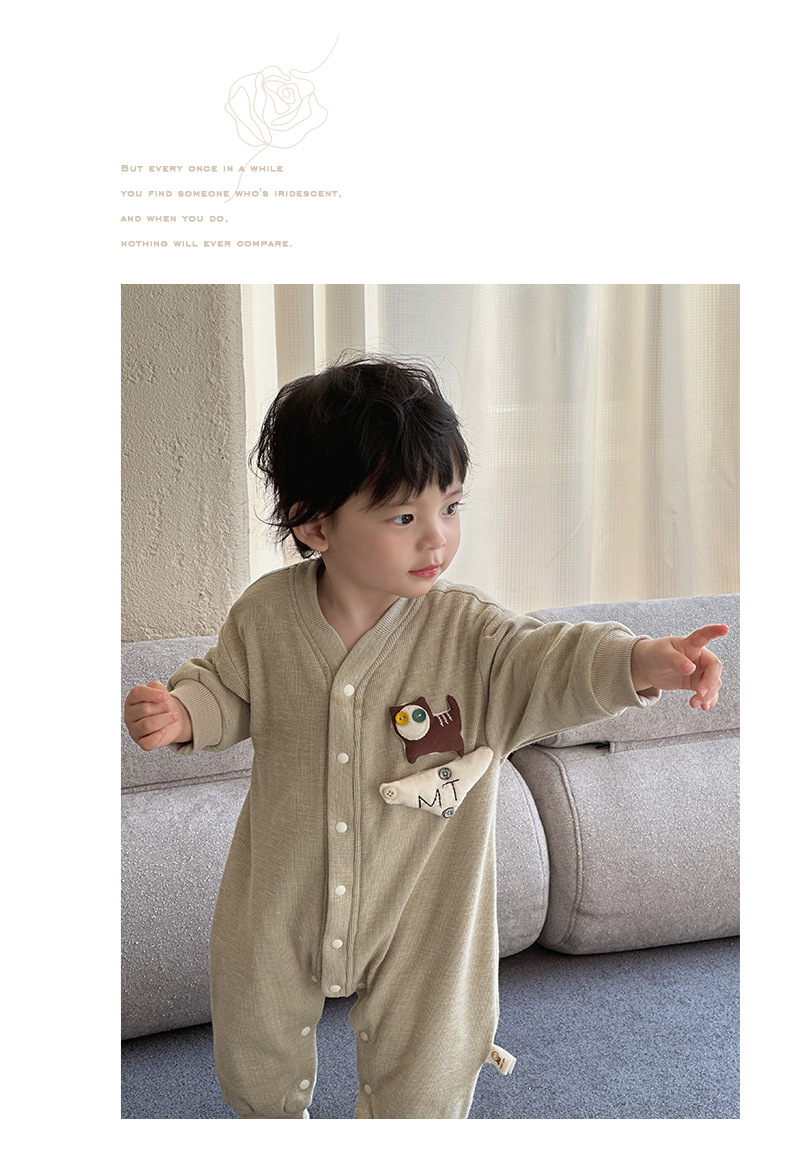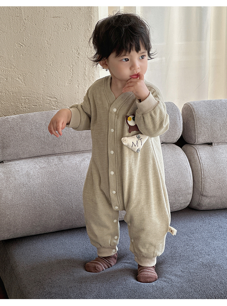 Nuevos productos en la primavera de 2025, mono para bebés, mameluco de manga larga para bebés masculinos coreanos, cachorro de dibujos animados, gateo