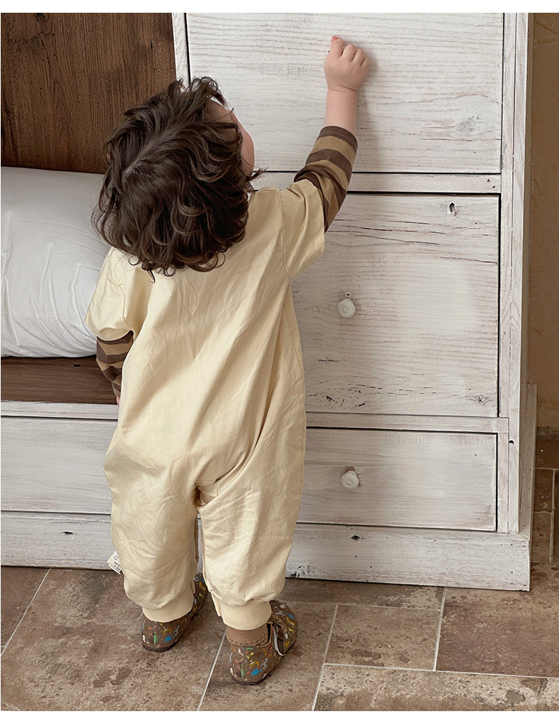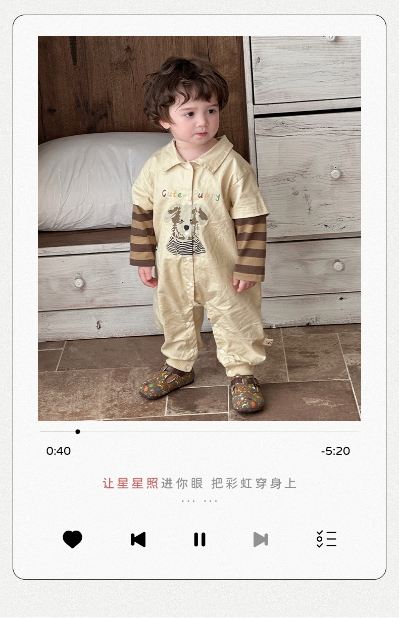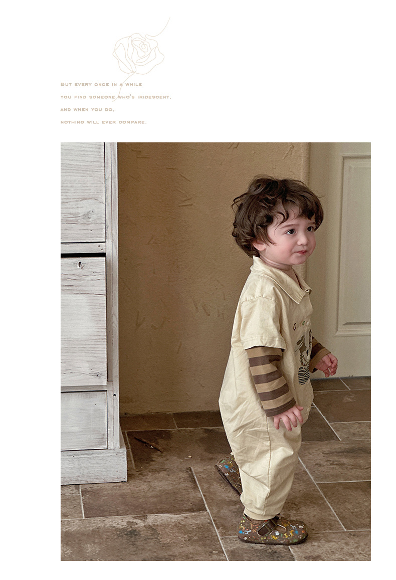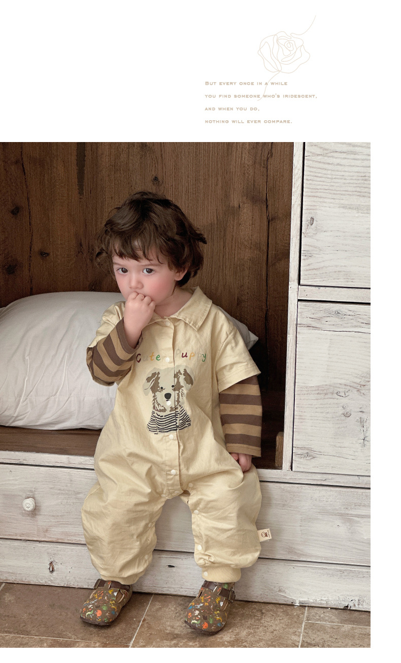 Primavera nuevo bebé mono hombre bebé estilo occidental solapa casual falso dos dibujos animados cachorro salir gateando