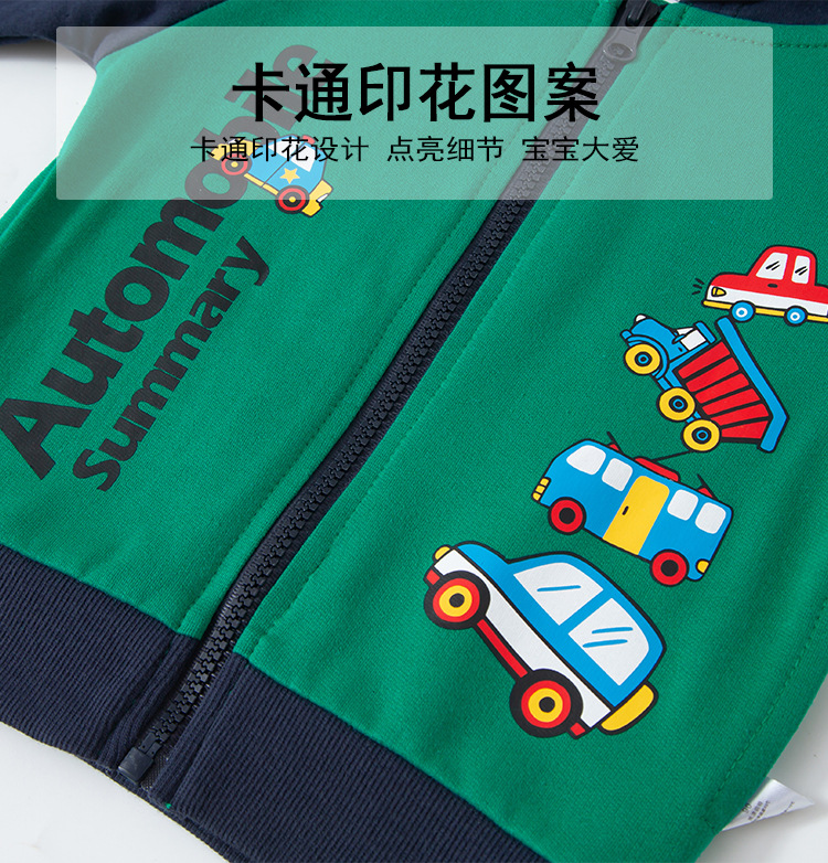 Nueva ropa para niños otoño estilo coreano suéter para niños coche de dibujos animados chaqueta deportiva con capucha para niños entrega de una sola pieza de algodón puro