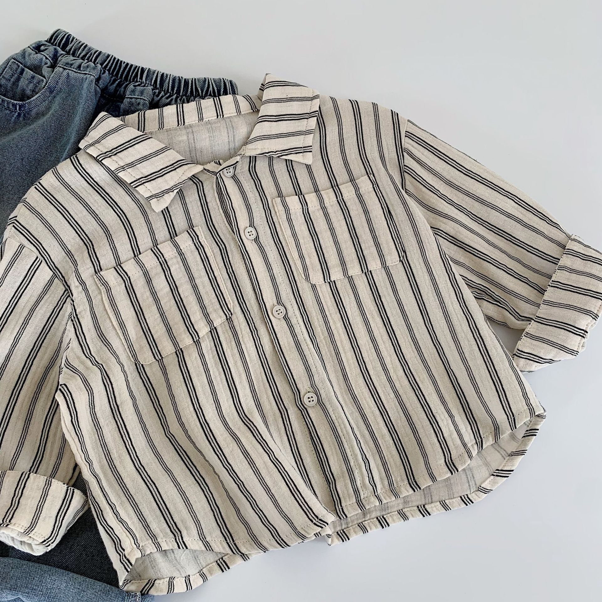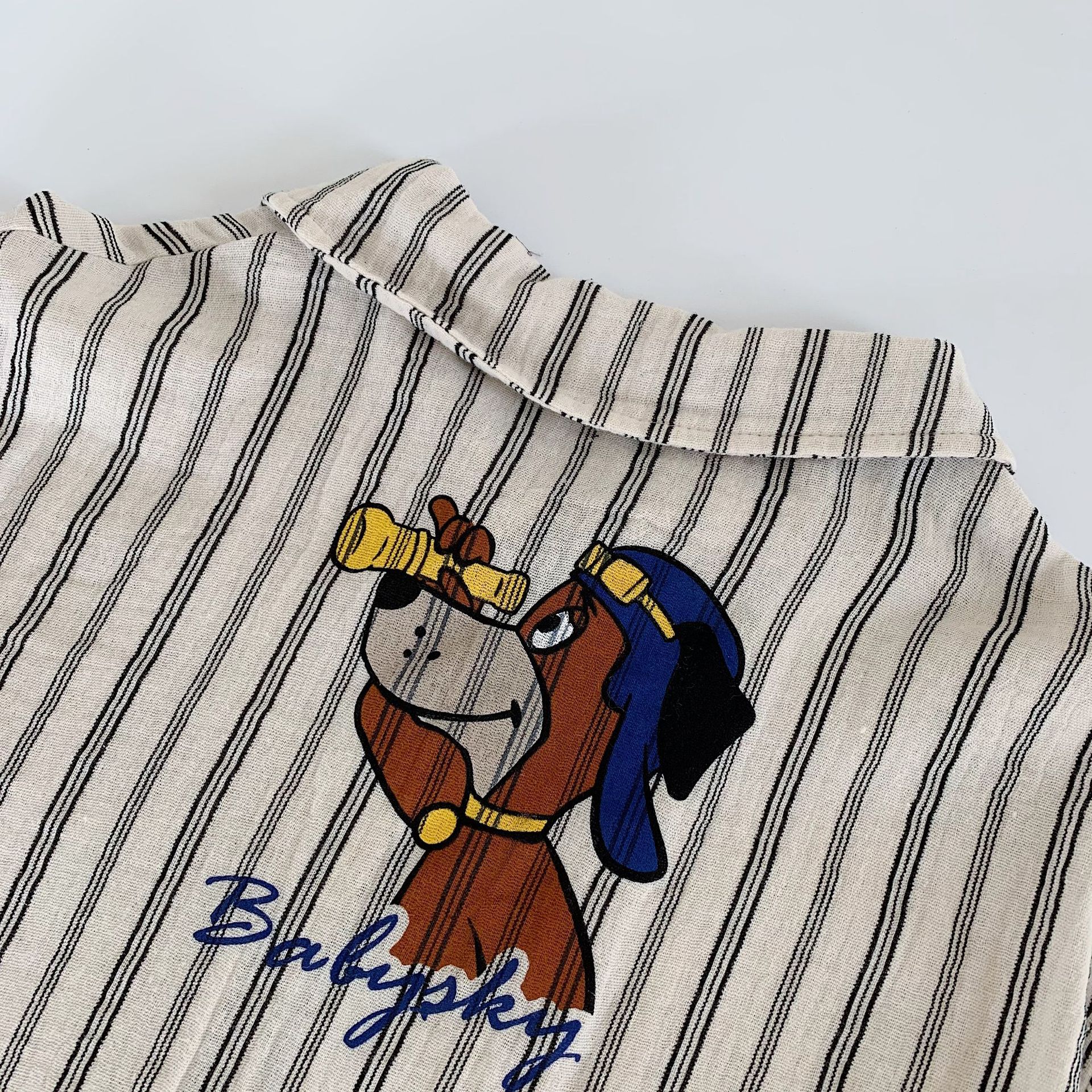 Camisas infantiles Mai Bao 2025 primavera nueva estilo coreano de dibujos animados a rayas para niños fabricantes de ropa infantil al por mayor