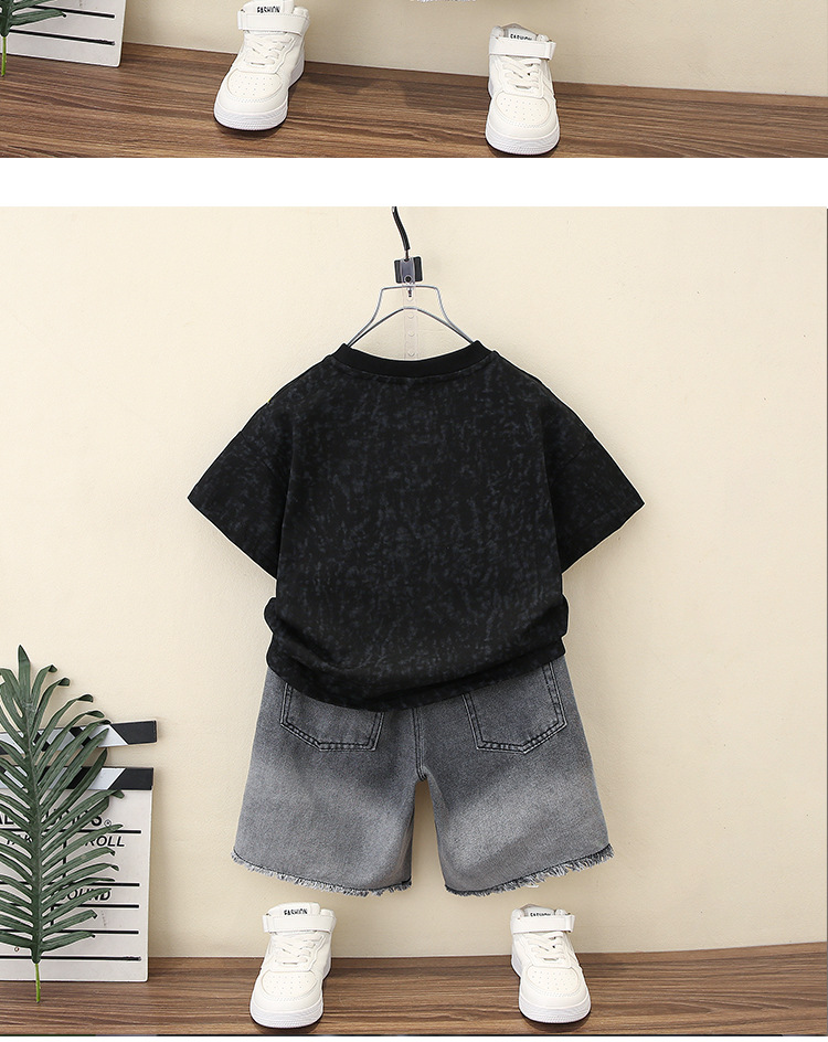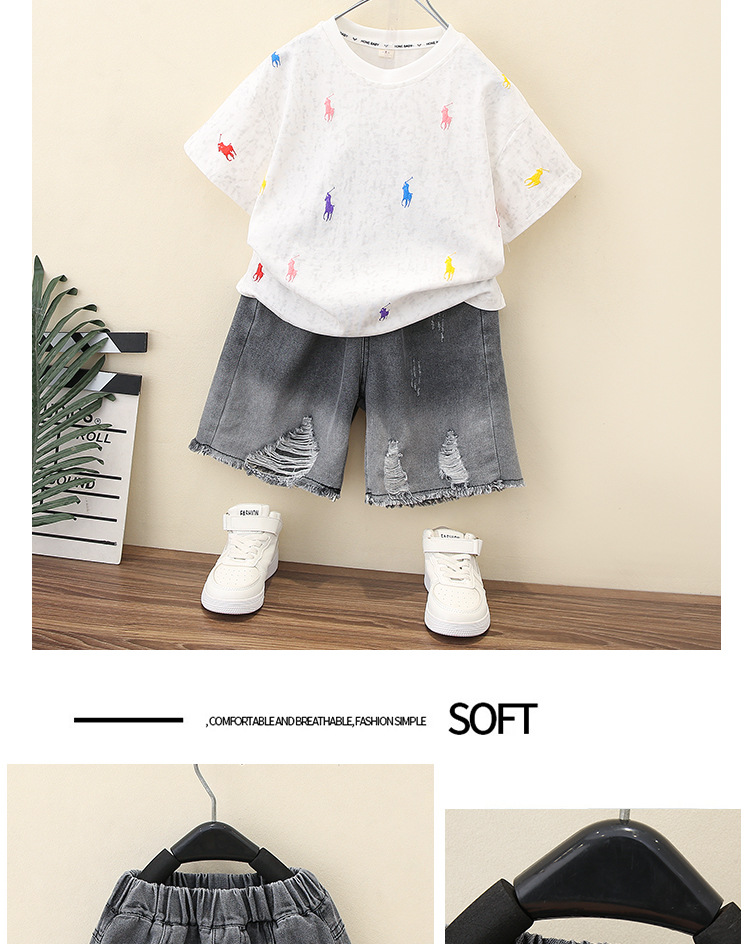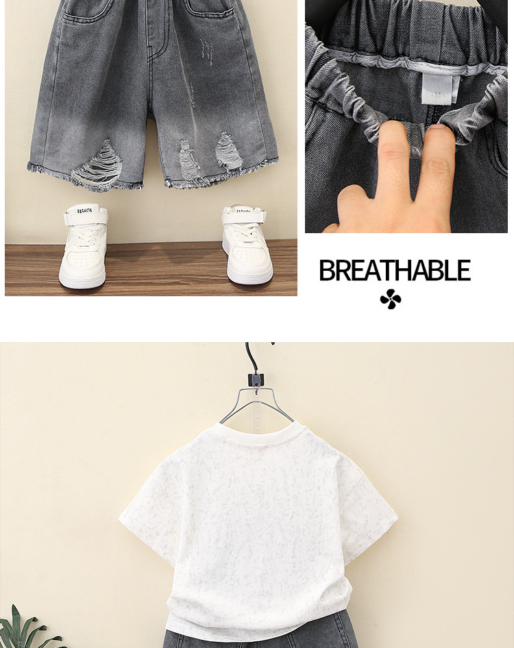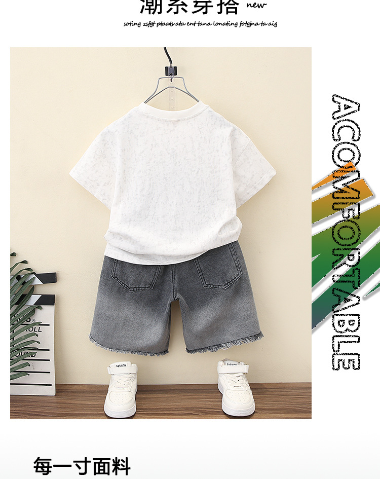 7378 Traje de verano para niños Camiseta de manga corta de dibujos animados para niños coreanos Pantalones vaqueros para bebés Pantalones cortos de verano Ropa delgada 3