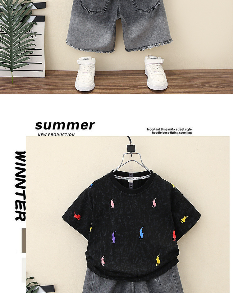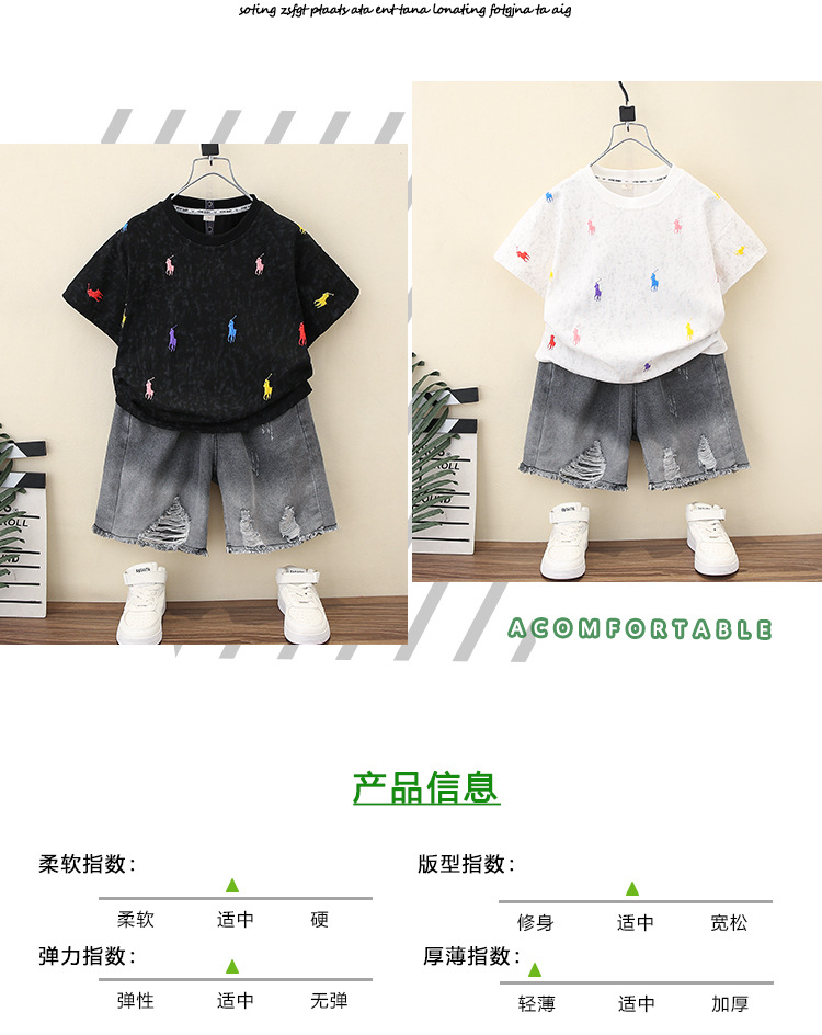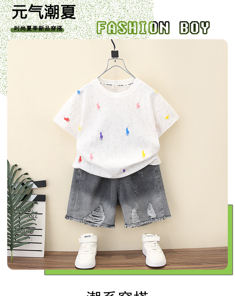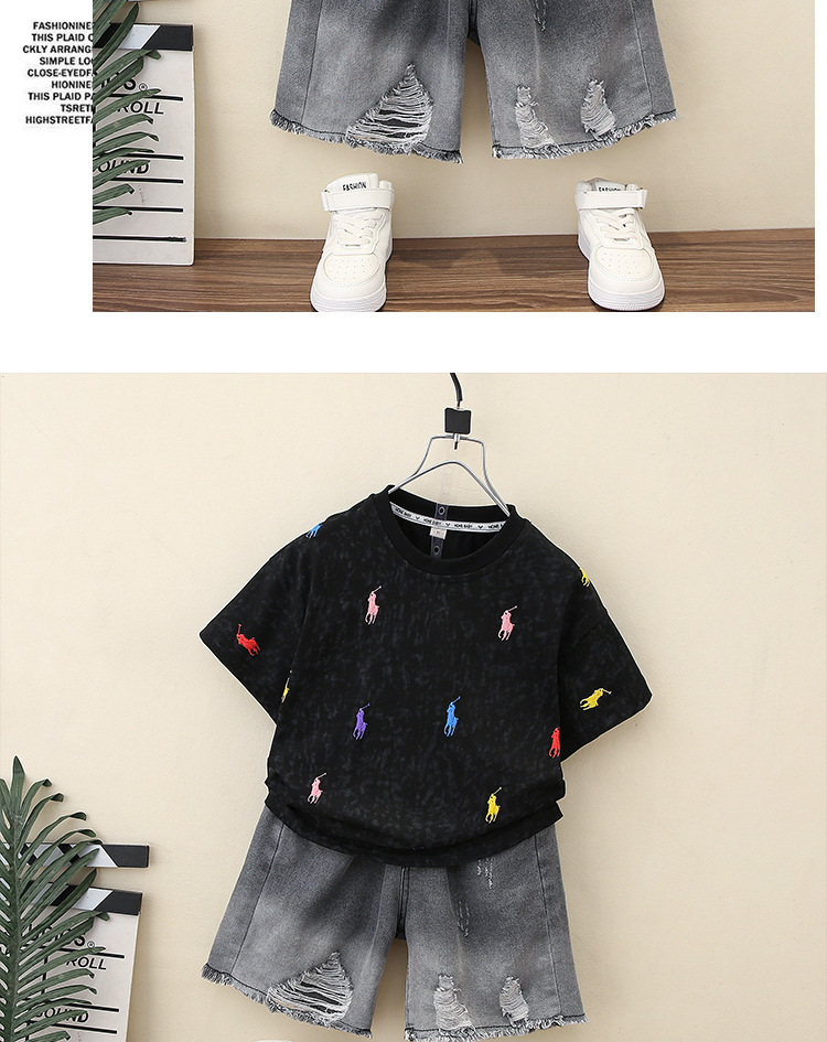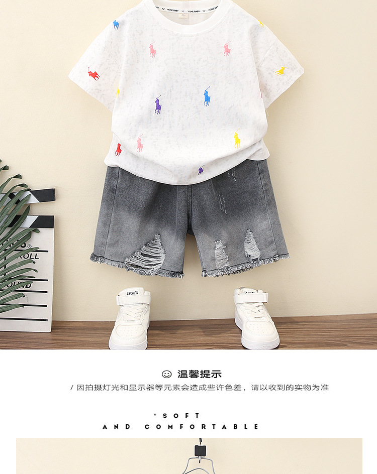 7378 Traje de verano para niños Camiseta de manga corta de dibujos animados para niños coreanos Pantalones vaqueros para bebés Pantalones cortos de verano Ropa delgada 3