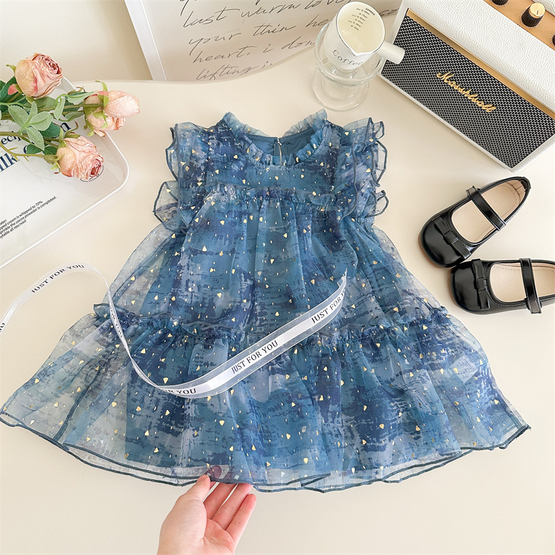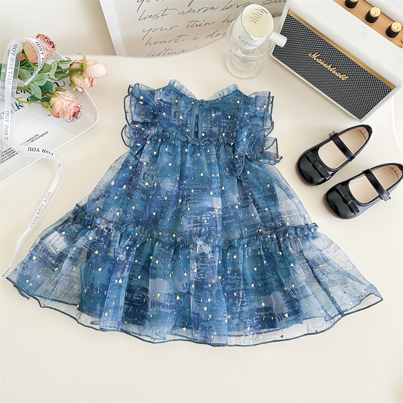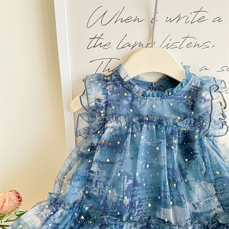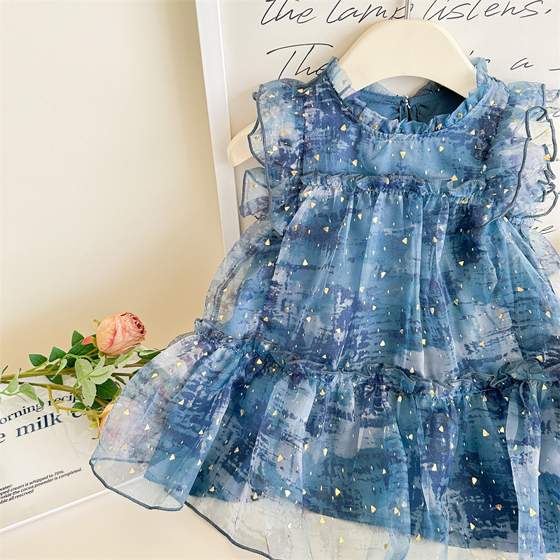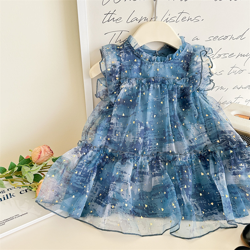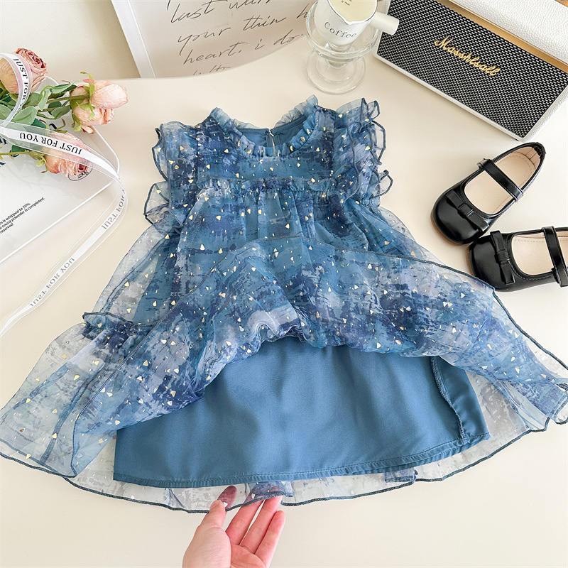 Vesta de niña 2025 verano nuevo vestido de niños de estilo extranjero mangas pequeñas falda de princesa de bebé de verano pantalón de malla