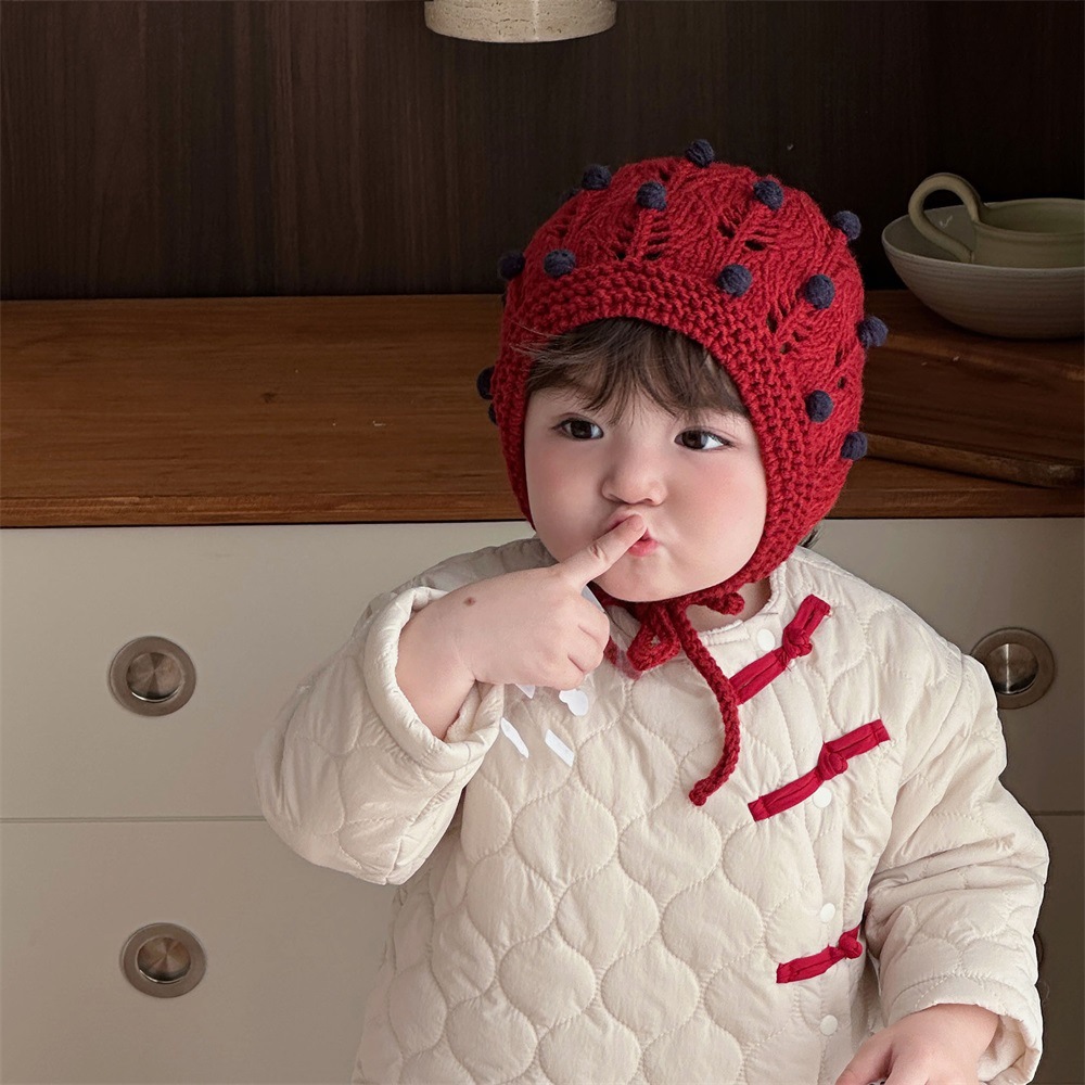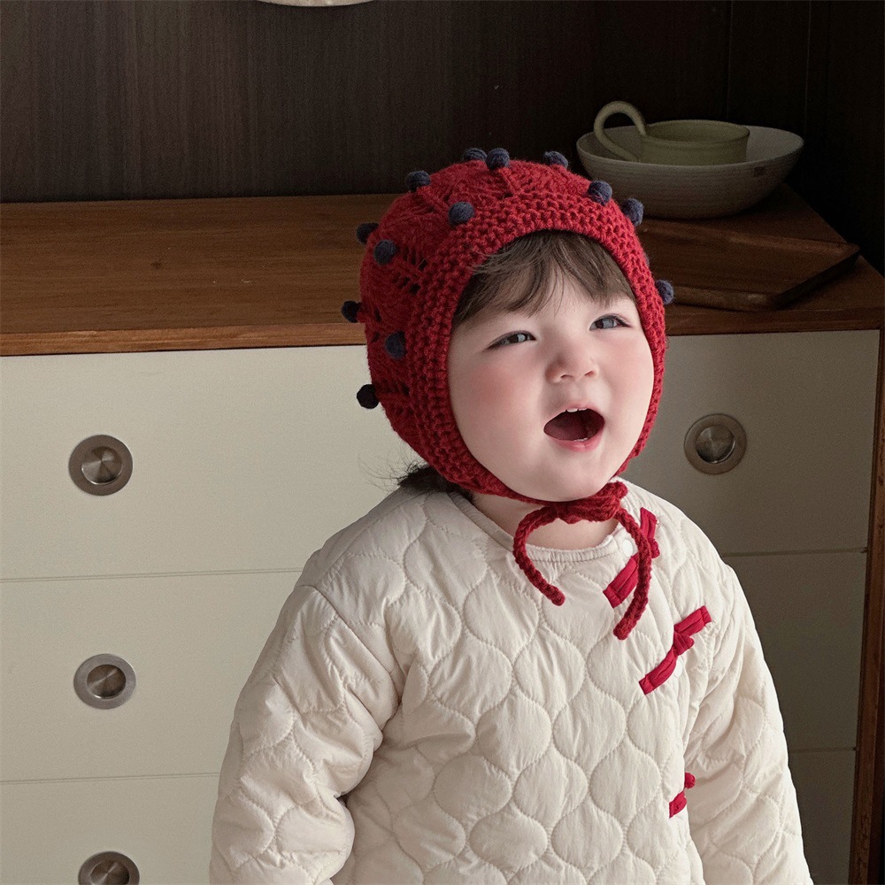 Sombrero de punto con forma de grano de uva dulce para bebé de invierno, gorro de lana para bebé, cinturón de otoño e invierno, gorro de cabeza de bolso hecho a mano